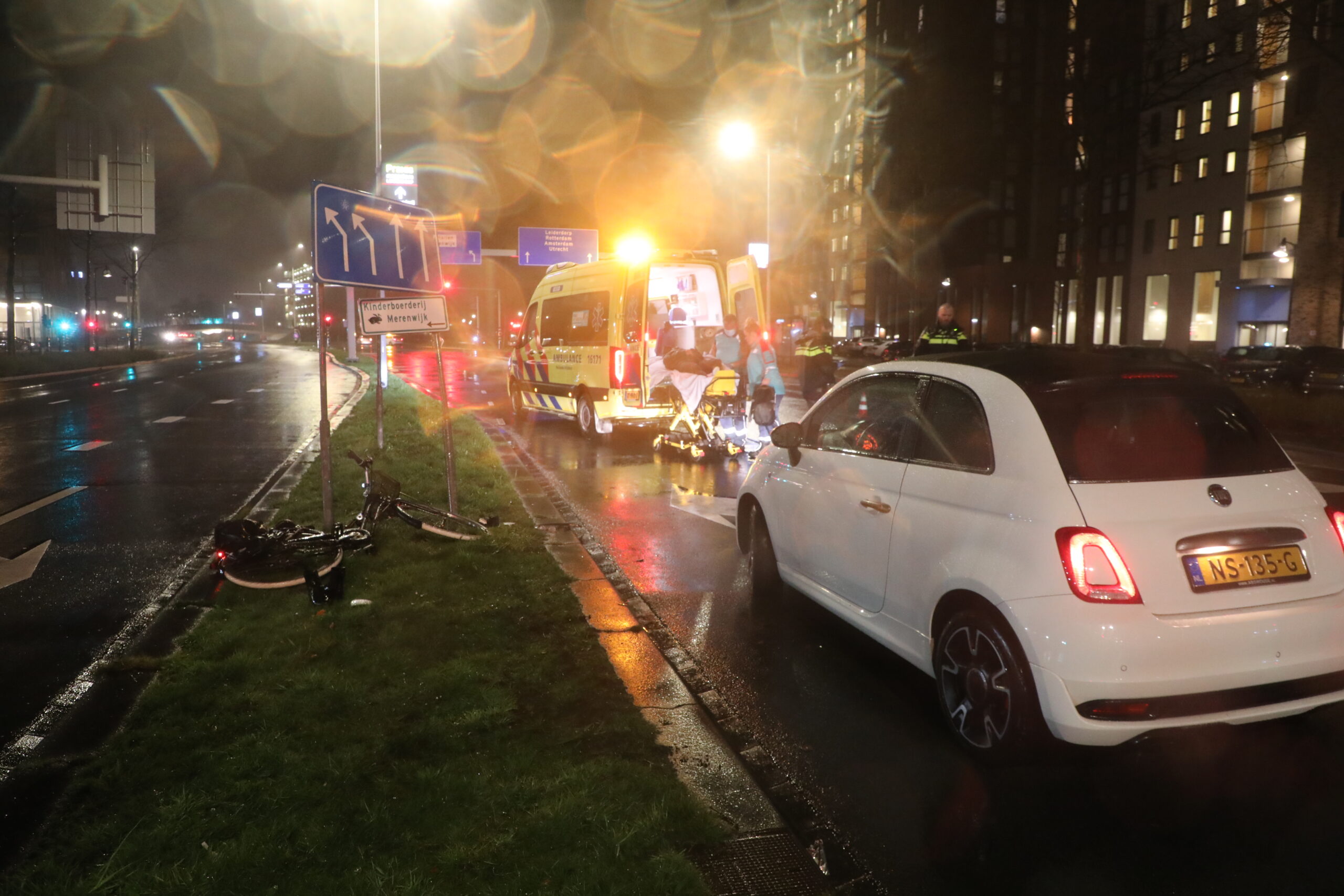 Een automobilist is er maandagavond laat te voet vandoor gegaan na een aanrijding met een fietser. Daarbij liet hij of zij de auto enkele honderden meters verderop achter op de busbaan. De fietser is per ambulance naar het ziekenhuis overgebracht.