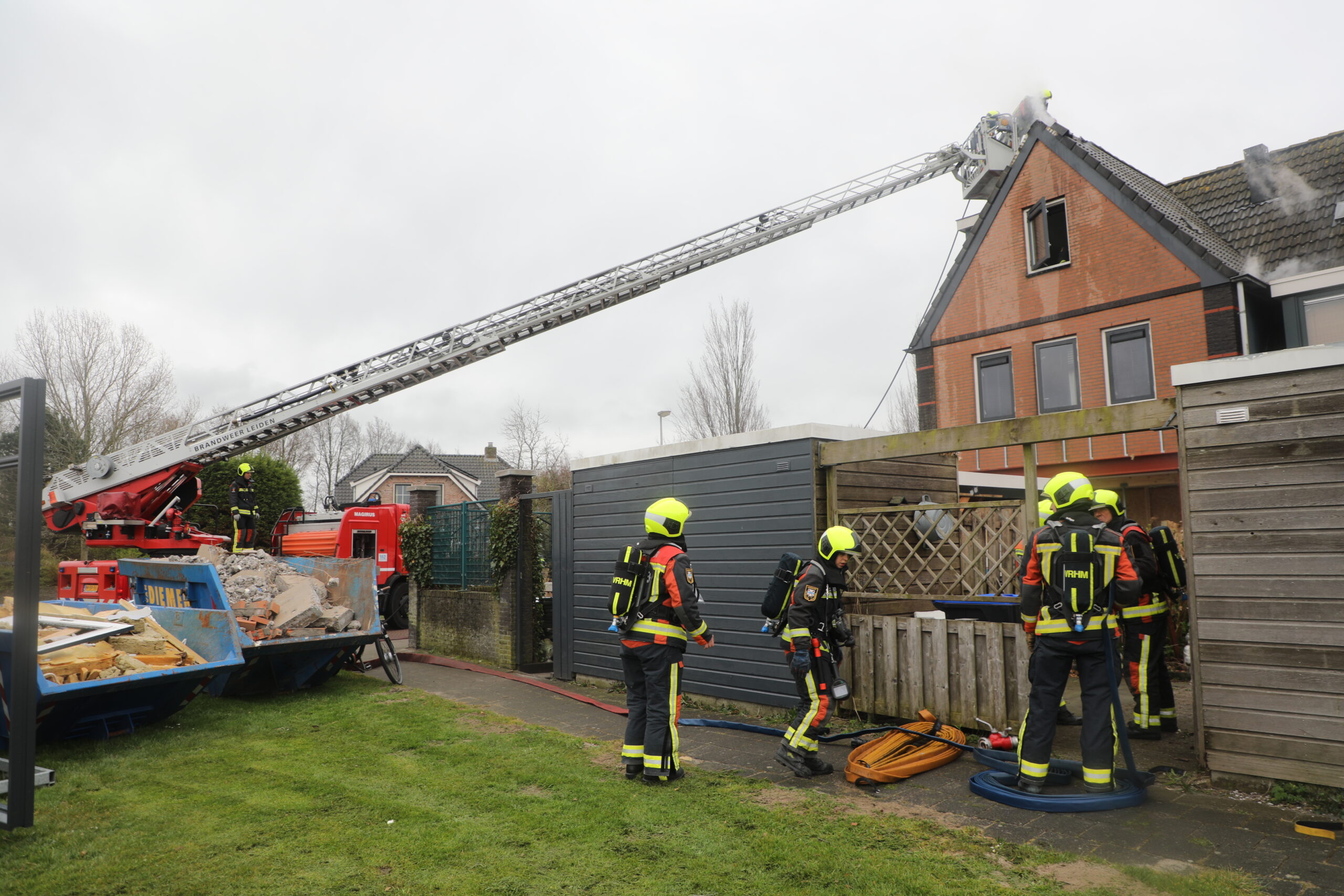 De brand is ontstaan bij laswerkzaamheden. Om het vuur te kunnen doven heeft de brandweer een deel van het dak open moeten breken.