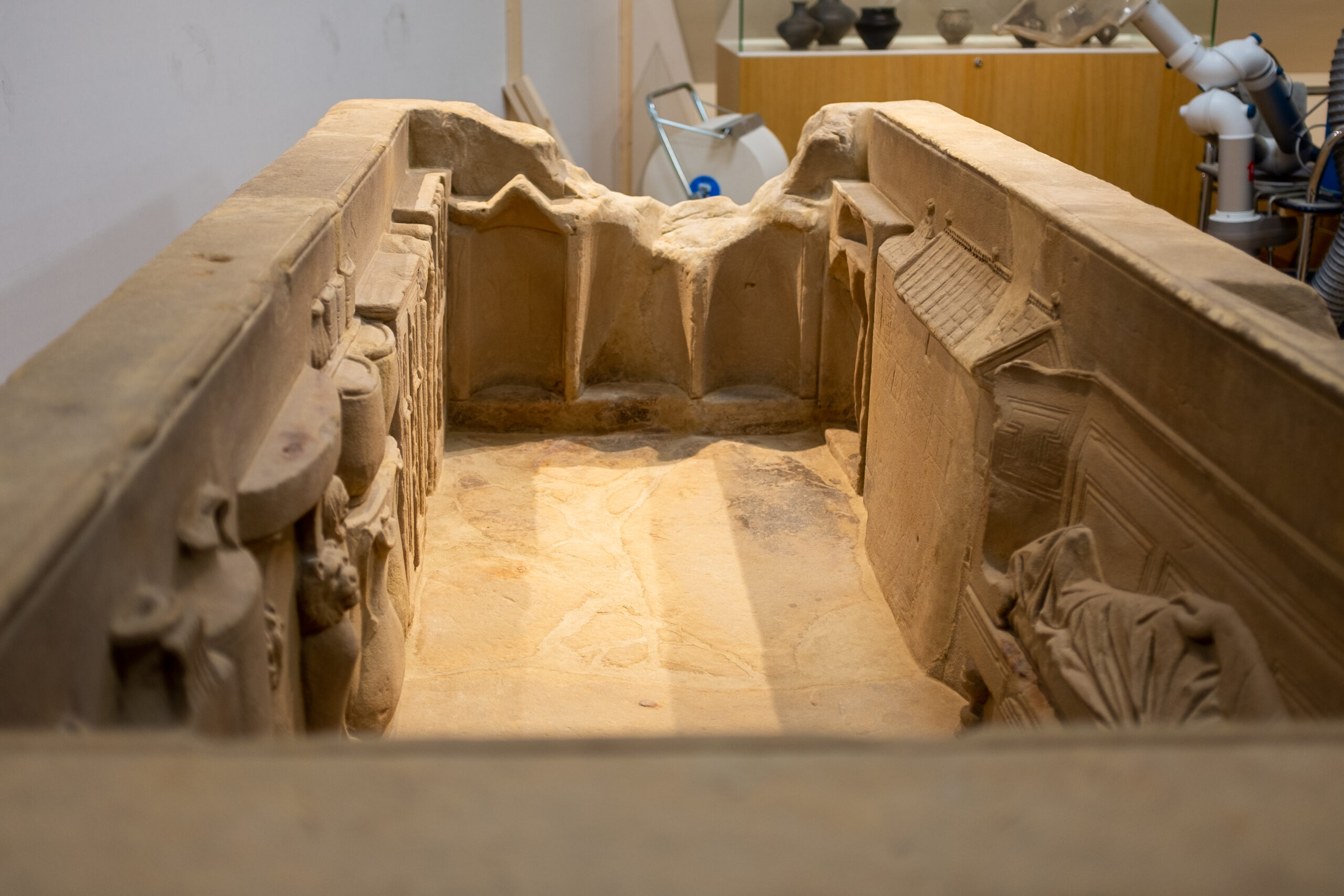 De restaurateur van het stuk, Renske Dooijes, omschrijft de Romeinse sarcofaag als de Rembrandt van het museum. “Sarcofagen van dit soort zijn er eigenlijk verder niet. De details aan de versiering aan de binnenkant zie je nooit.”