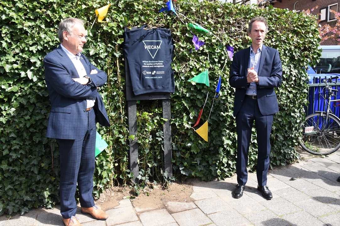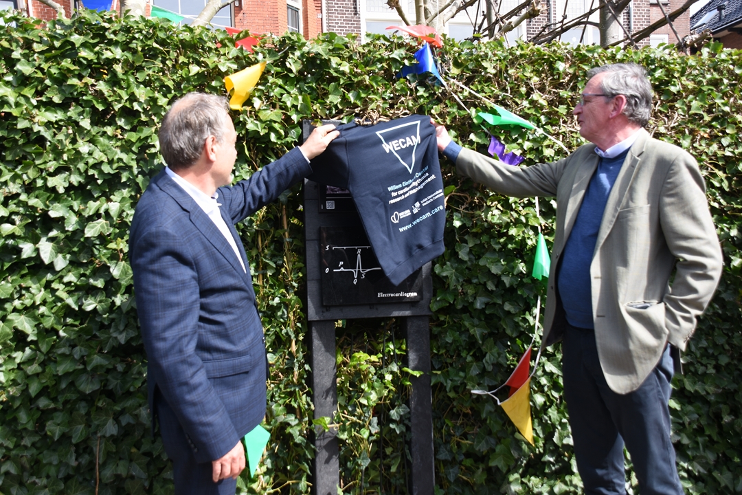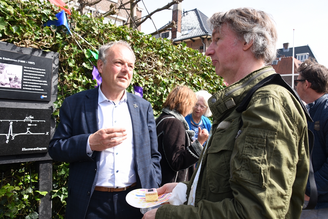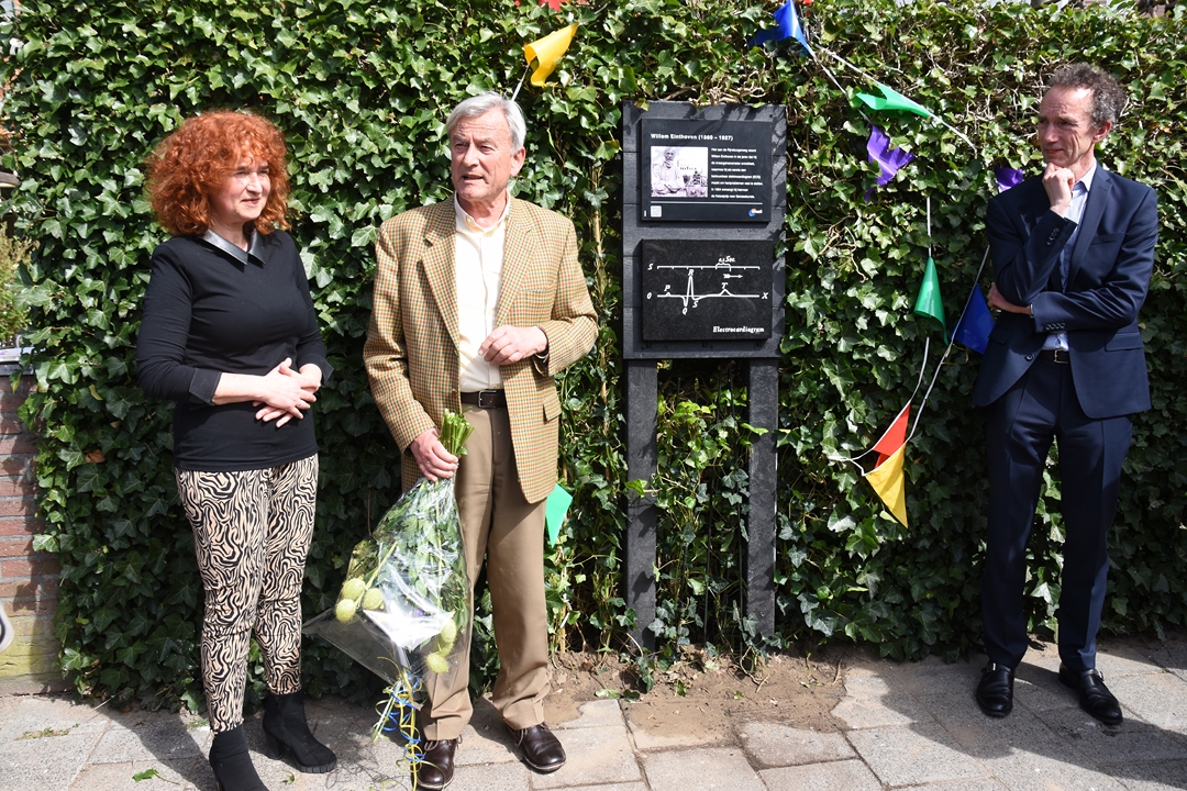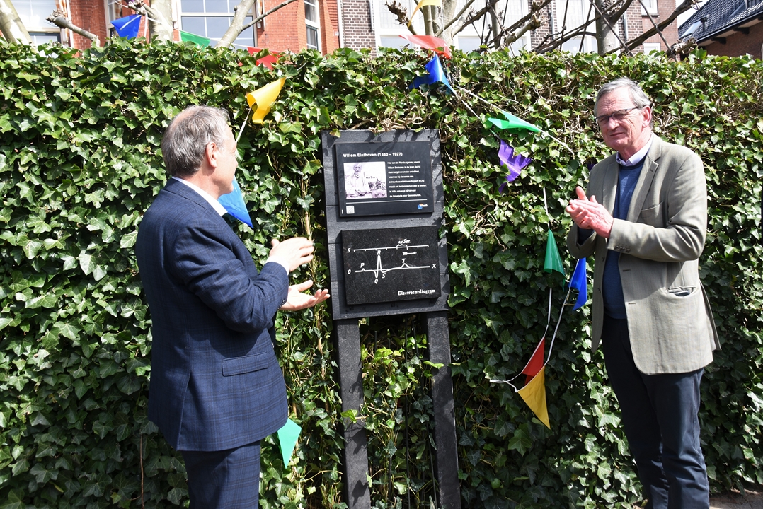 Naast korte informatie over Willem Einthoven staat er op de plaquette staat een afbeelding van een elektrocardiogram, in volkstaal een hartfilmpje genoemd. Einthoven heeft zo’n tien jaar op deze locatie gewoond. “Hij verdient de plaquette niet omdat hij zo’n bekende naam is, maar omdat hij iets heeft uitgevonden waar we vandaag de dag wereldwijd profijt van hebben”, zegt Van der Geer.