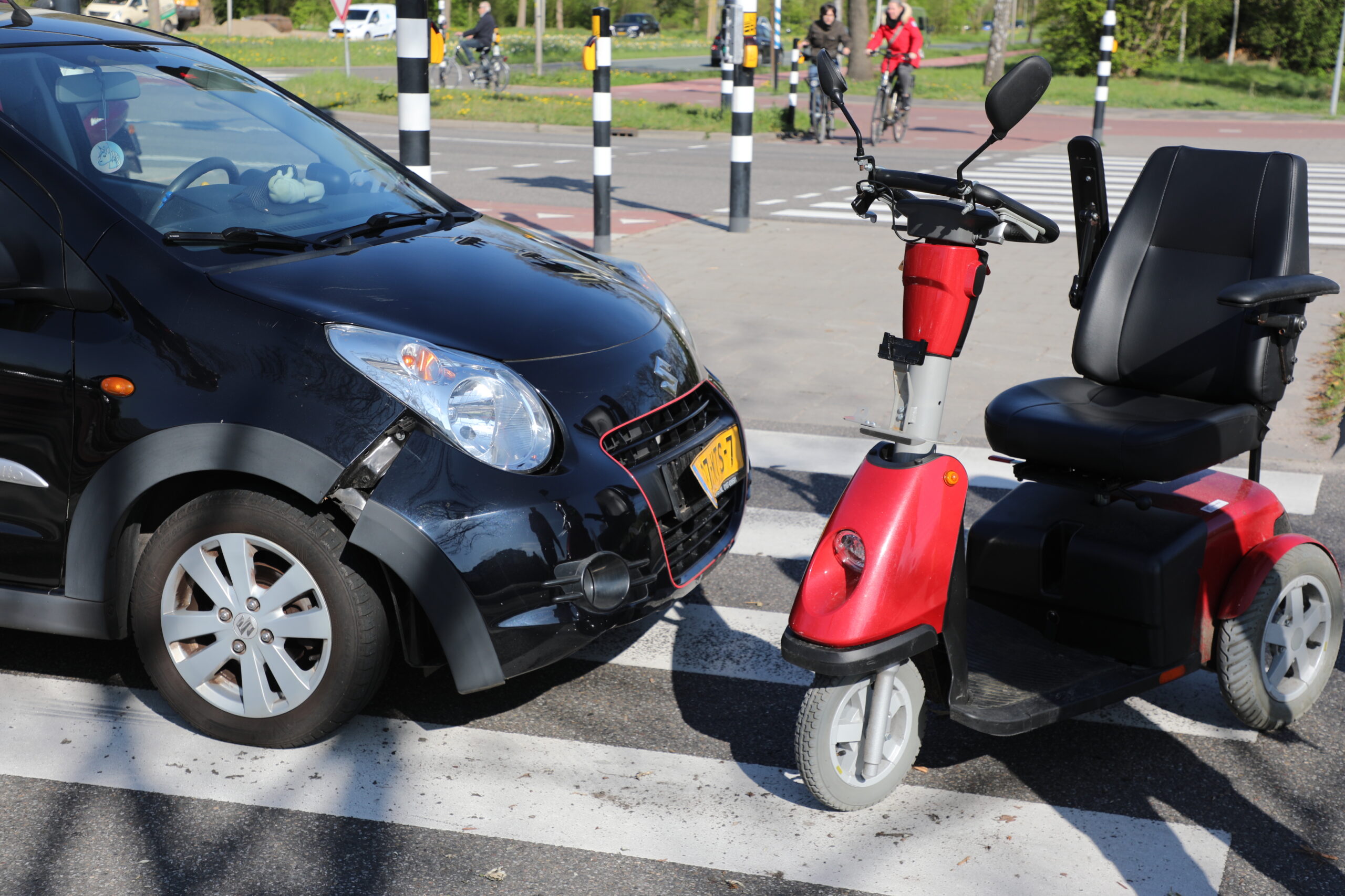 Een vrouw op leeftijd is donderdagochtend in Leiderdorp op haar scootmobiel aangereden door een auto. Het ongeval gebeurde op de Persant Snoepweg bij het kruispunt met het Engelendaal.