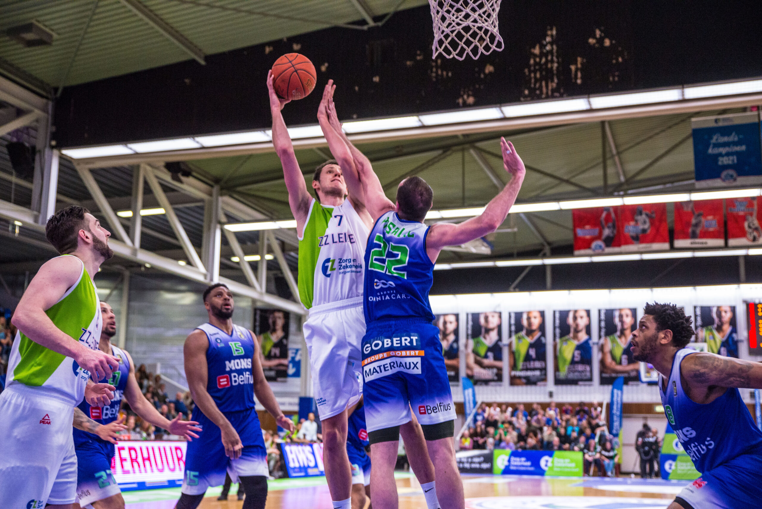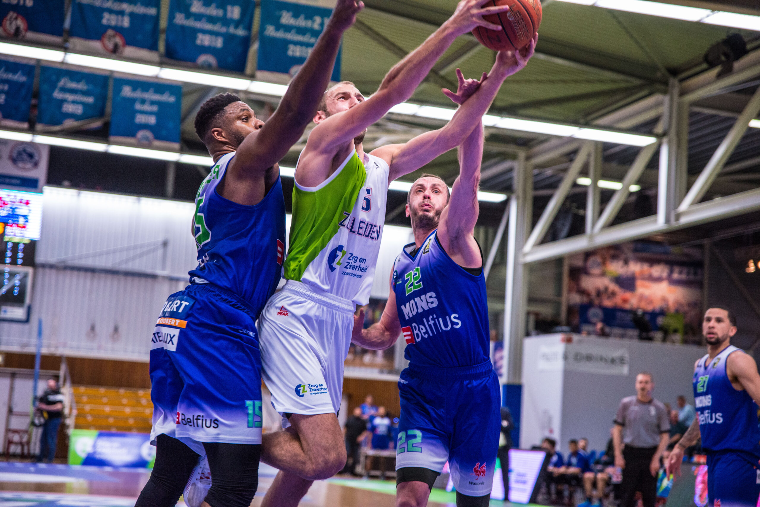 ZZ Leiden toonde in de derde wedstrijd tegen Belfius Mons-Hainaut twee gezichten. In de eerste helft lukte er vrij weinig en werd de Leidse ploeg opeen 31-46 achterstand gezet. In de tweede helft speelde ZZ Leiden veel agressiever en werd de ring ook meer aangevallen. Via een 26-0 run kwam ZZ Leiden op een 58-52 voorsprong om de wedstrijd in veilige haven te loodsen: 74-66