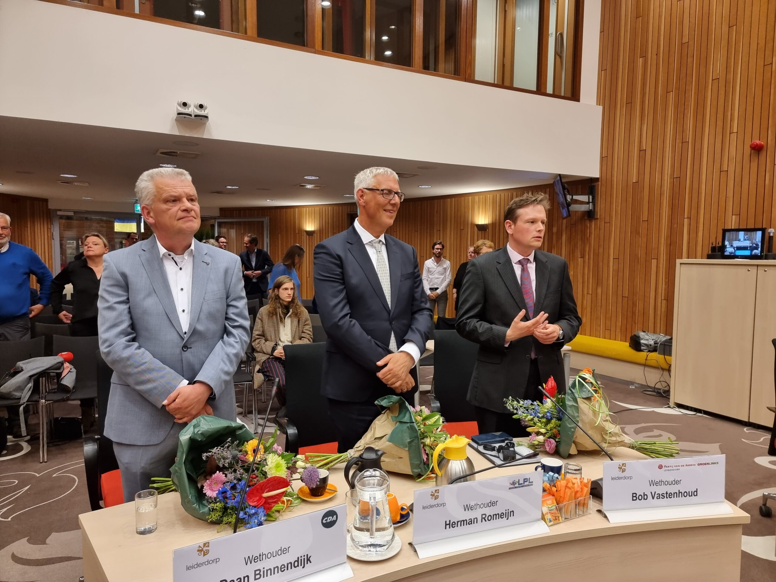 In de raadsvergadering gingen de partijen in debat over het coalitieakkoord, maar vooraf ondertekenden fractievoorzitters Hugo Langenberg (LPL), Olaf McDaniel (PvdA-GroenLinks) en Medea Hempen (CDA) het coalitieakkoord. De coalitie heeft gekozen voor een kort coalitieakkoord van zes pagina’s. Hiermee breekt de coalitie, naar eigen zeggen, met de Leiderdorpse traditie van uitgebreide coalitieakkoorden die leiden tot ‘verschraling van het politieke debat en beperking van het oplossend vermogen.’ Het korte akkoord biedt volgens de coalitie ruimte voor transparantie, flexibiliteit en samenwerking met de oppositie.