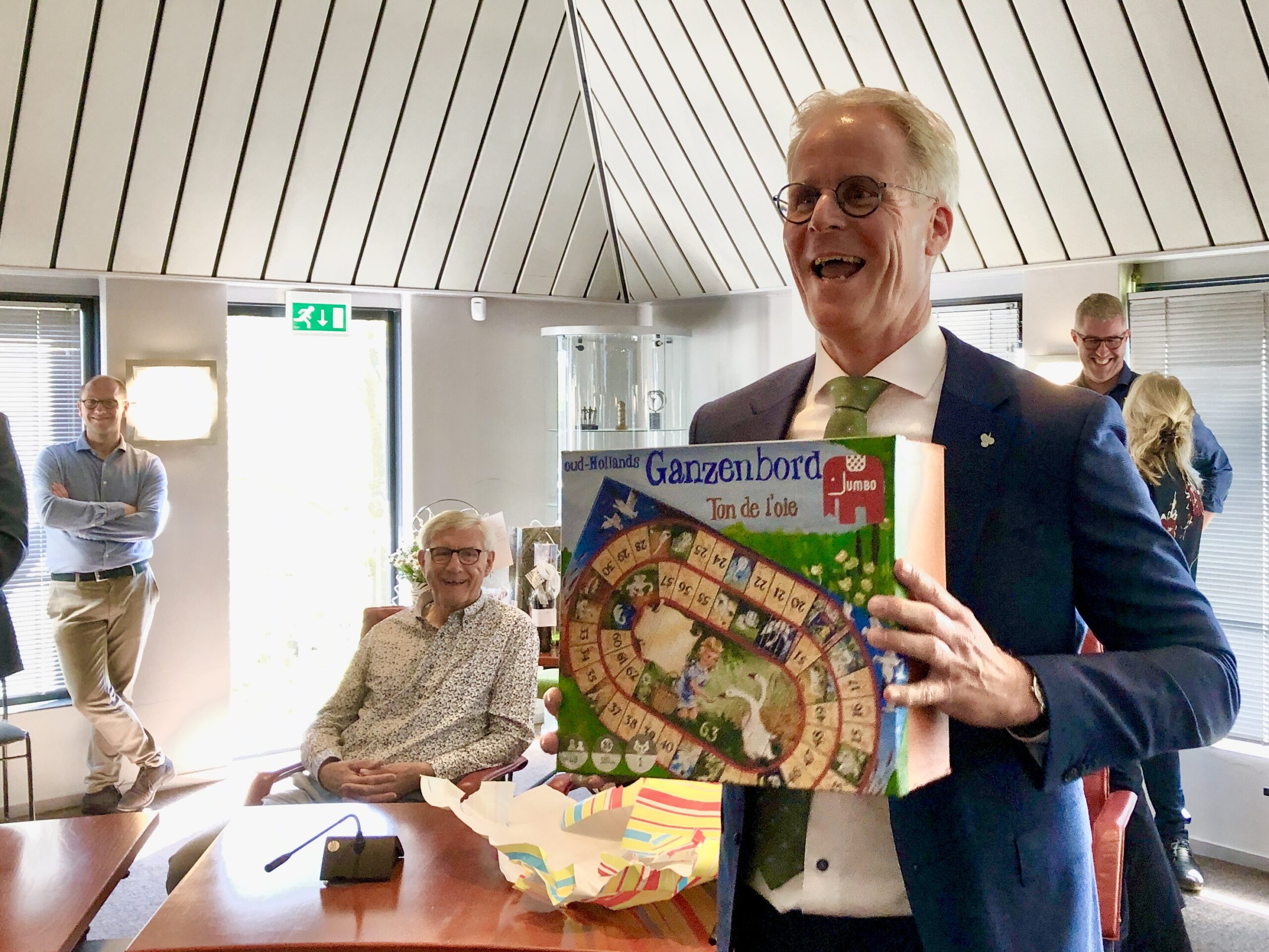 Voorafgaand aan de receptie maakten de scheidend wethouder en zijn collega’s een bijzondere fietstocht door Zoeterwoude. “Met een ‘Ton de Ganzenbord’ in de hand gingen we op de fiets langs bij de projecten waar ik mij voor heb ingezet. Erg leuk”, vindt De Gans. De wethouder legde de tocht niet op zijn eigen fiets maar per ‘participatiebakfiets’ af. “Voorzien van een Gans natuurlijk.”