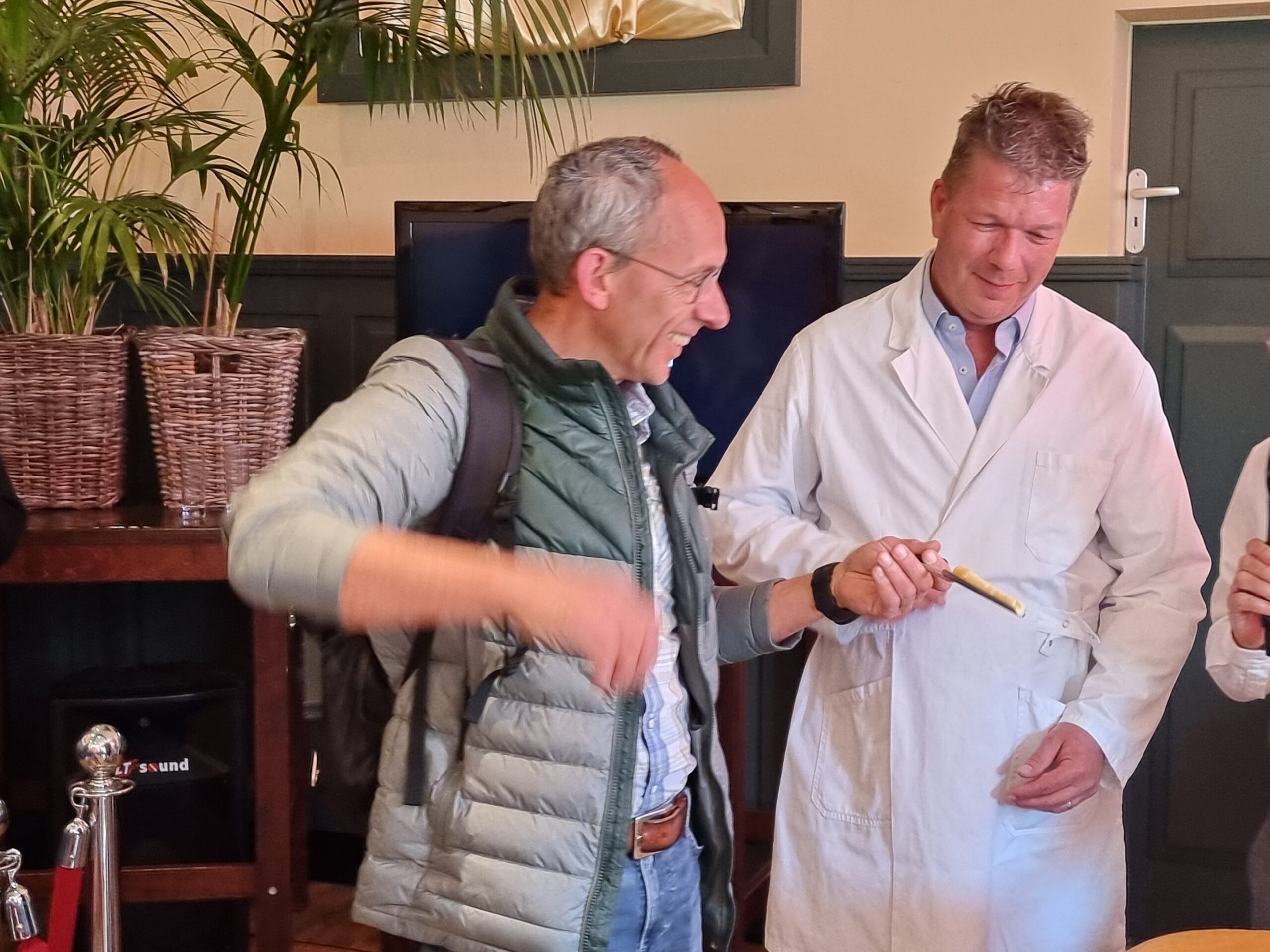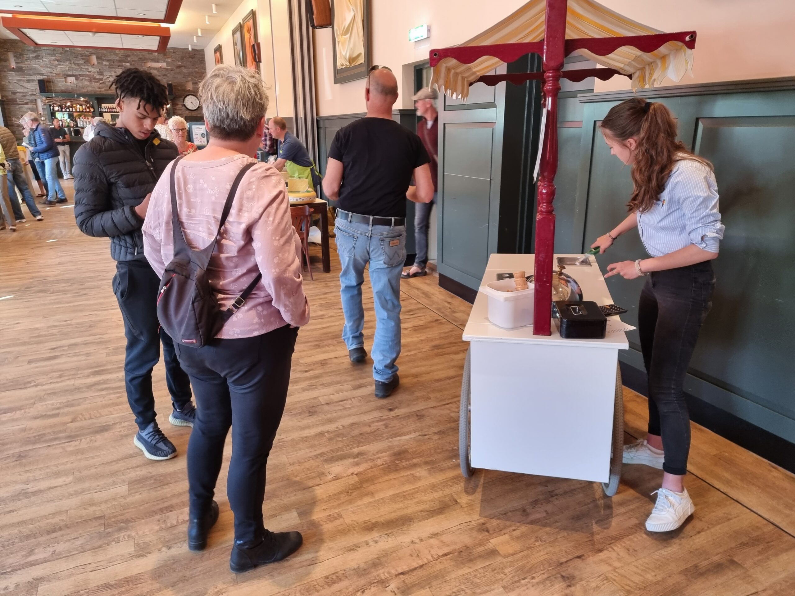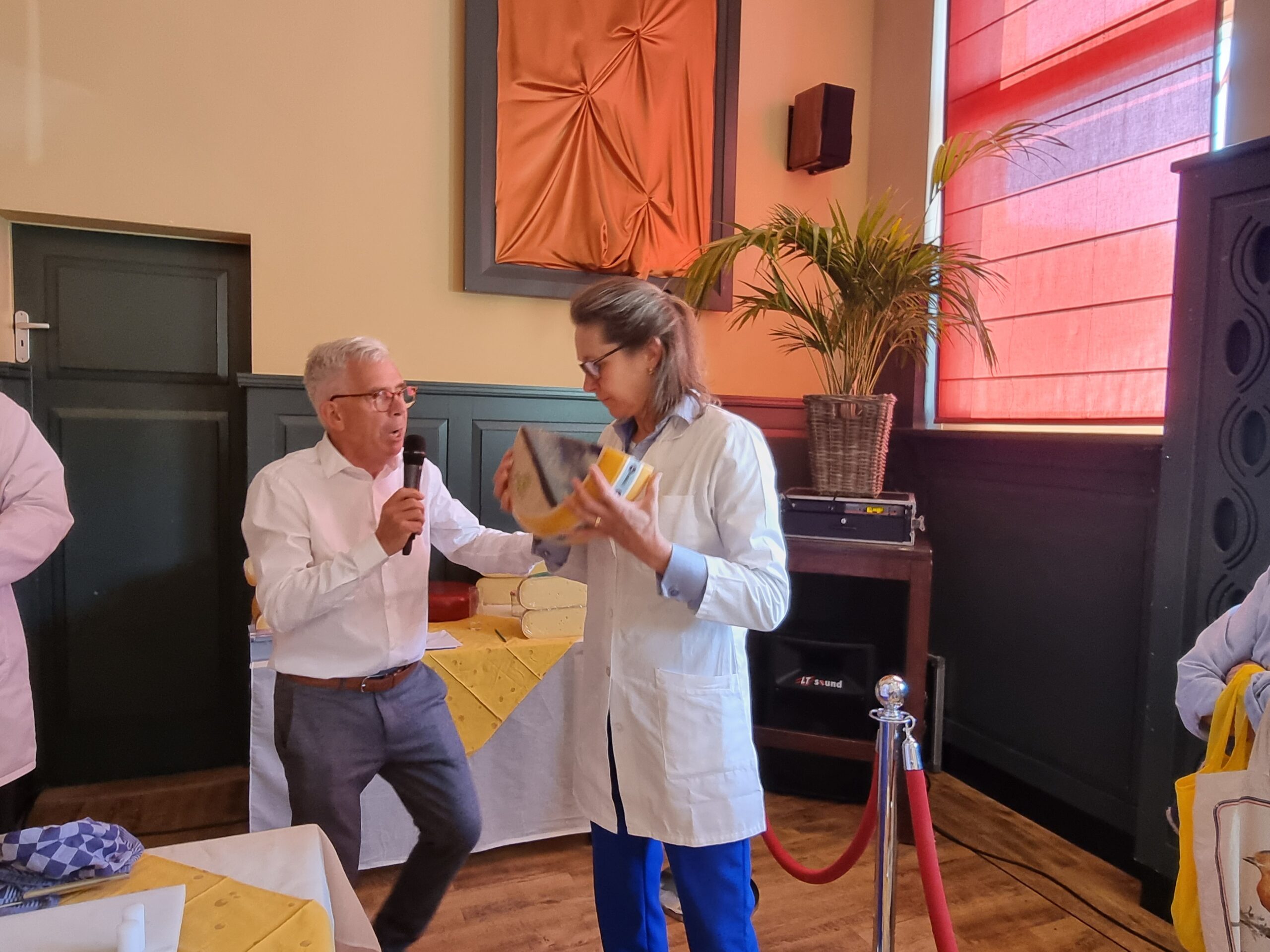 Naast proeven, kon er ook meegedaan worden aan een quiz. Alle deelnemers hadden een jampotje met onbekende inhoud staan. Een wittige vloeistof (zou het pekel zijn?), of witte bolletjes (boerenboter?). Wie de inhoud van de meeste potjes goed heeft geraden en bovendien het gewicht het meest benaderde van de stapel kazen op de laatste foto, won een prijs.