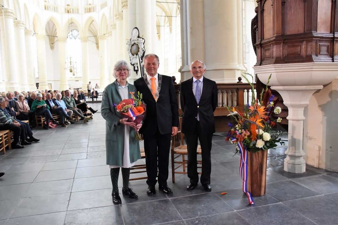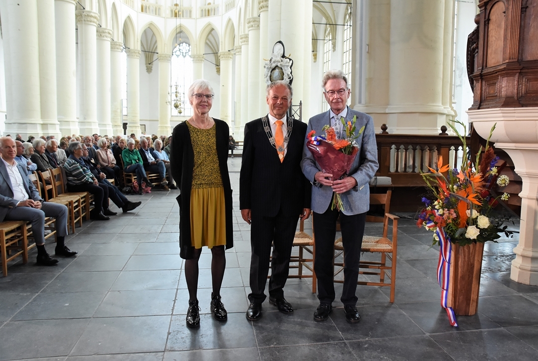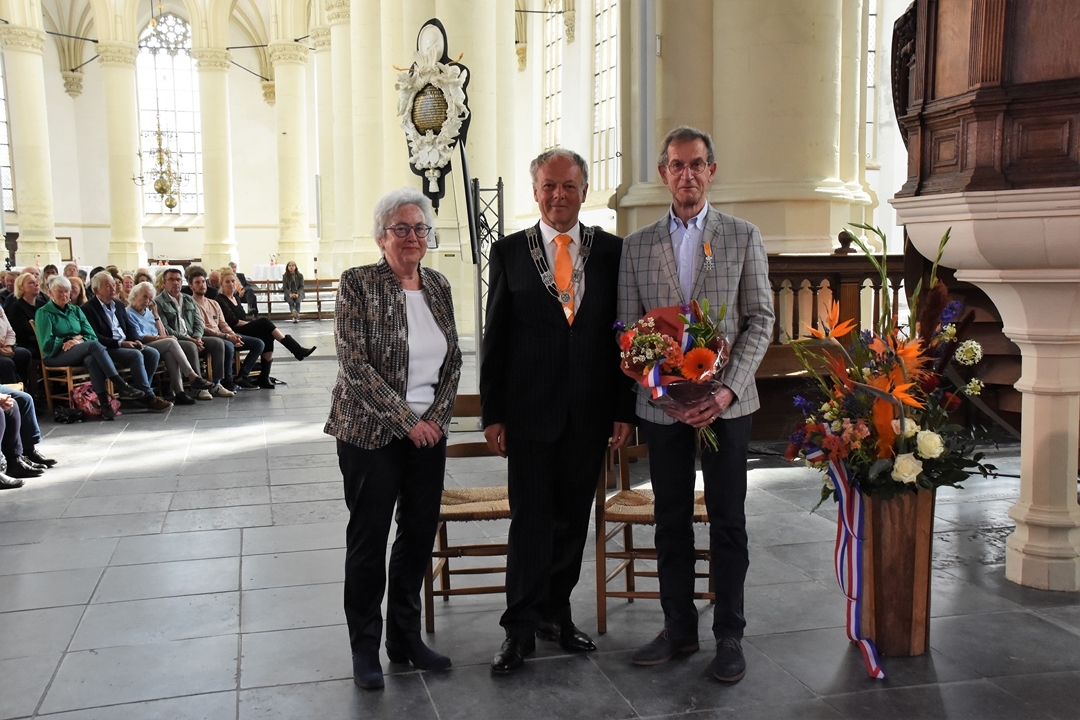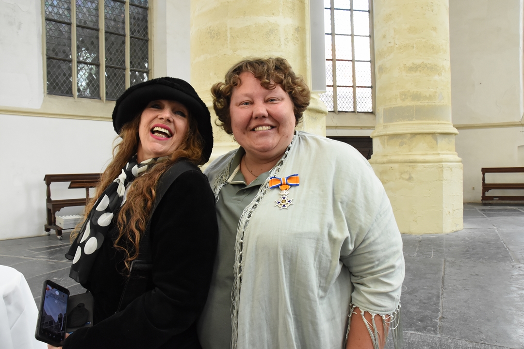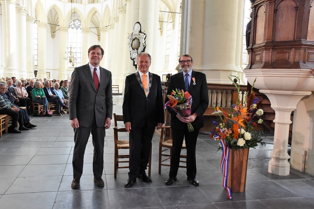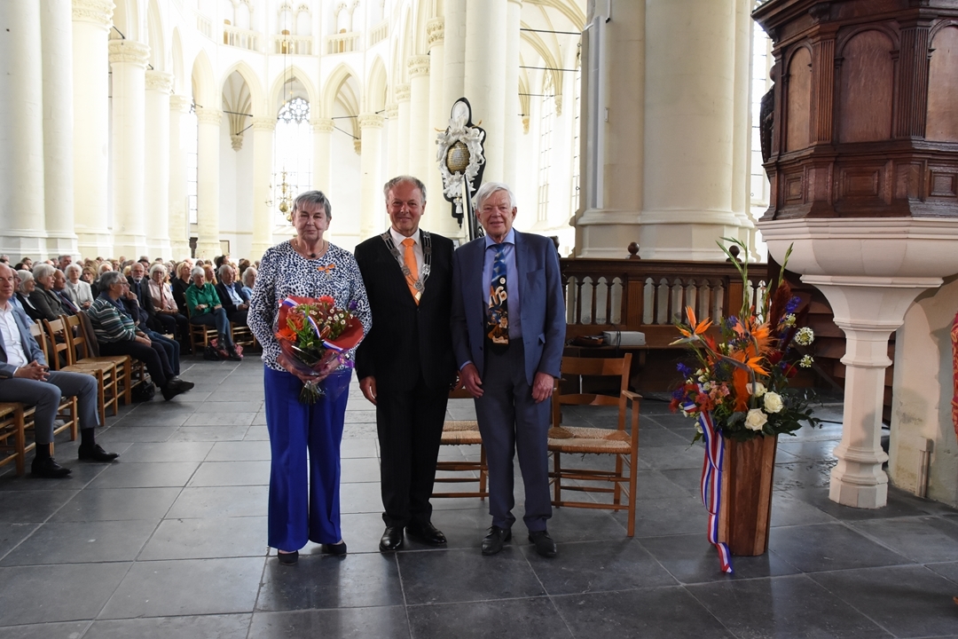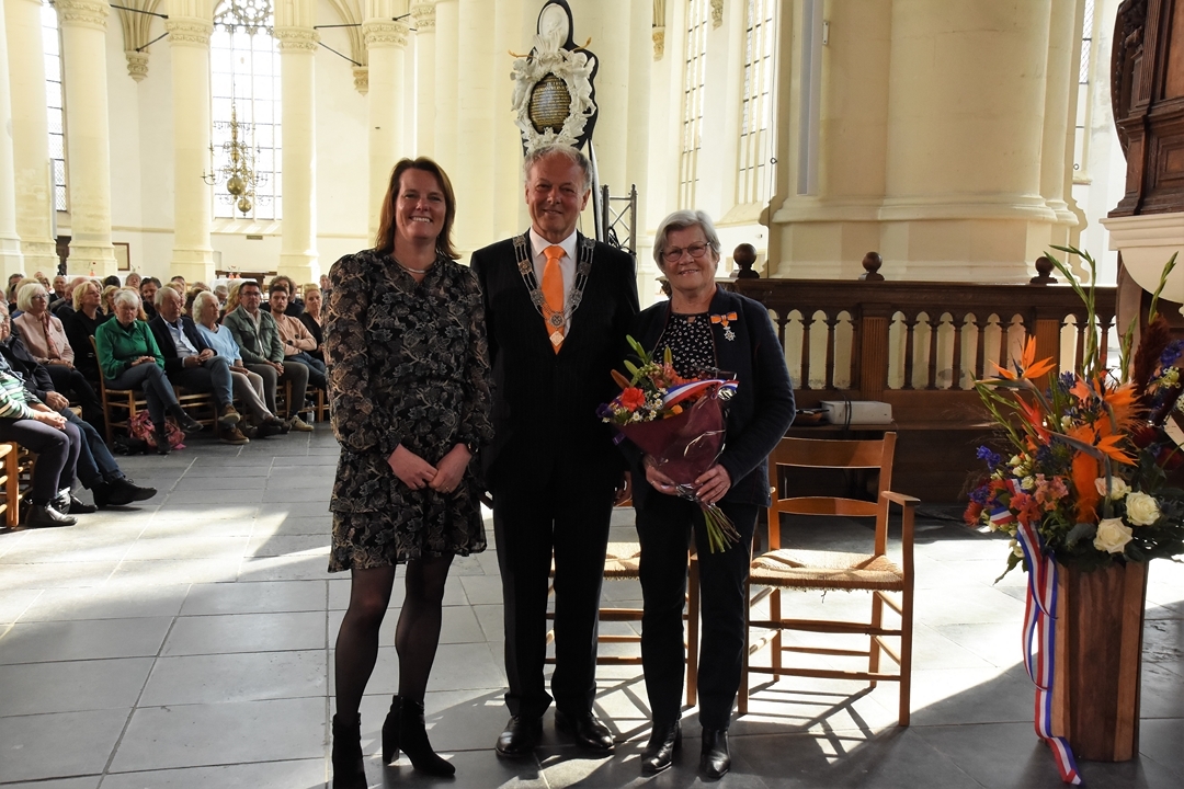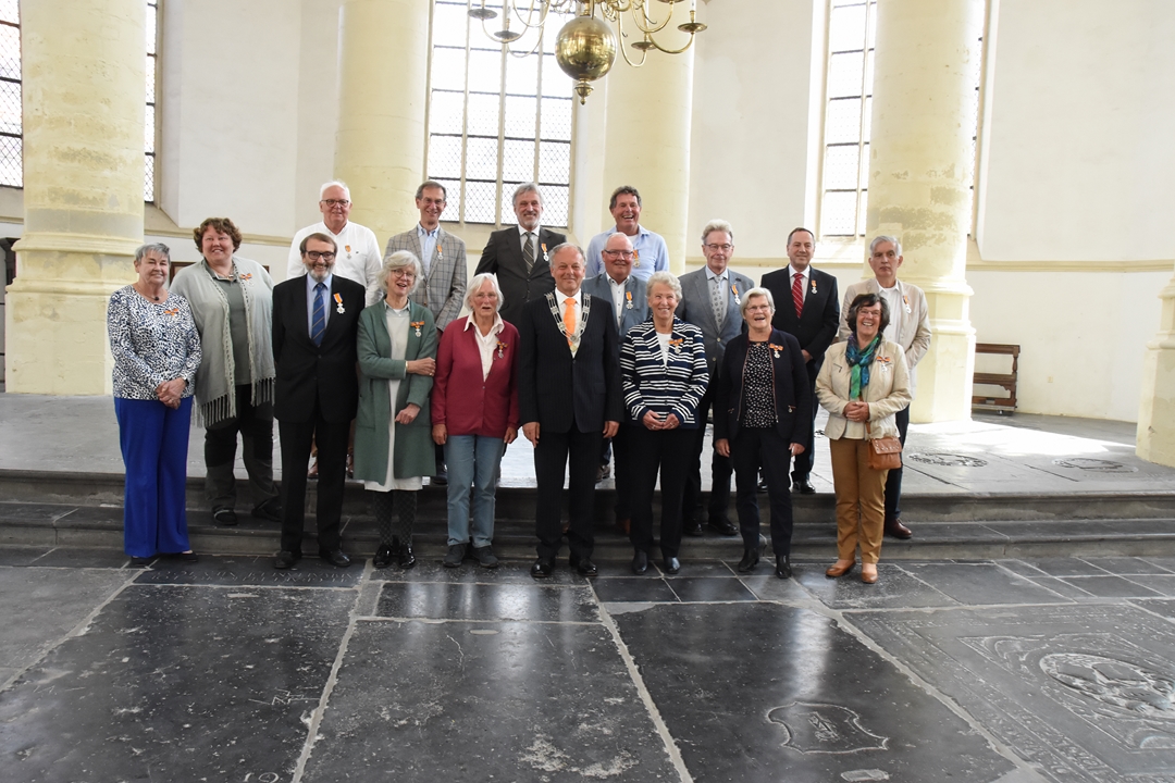 In de Hooglandse Kerk in Leiden zijn dinsdagochtend zestien stadsgenoten Koninklijk onderscheiden. Nog eens twee Leidenaren kregen hun lintje elders opgespeld. Dat gebeurde in Urk en in Groningen. De lintjes waren mooi verdeeld. Negen waren er voor een vrouw en negen voor een man.