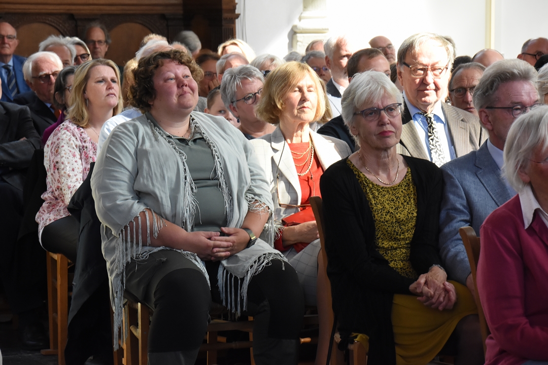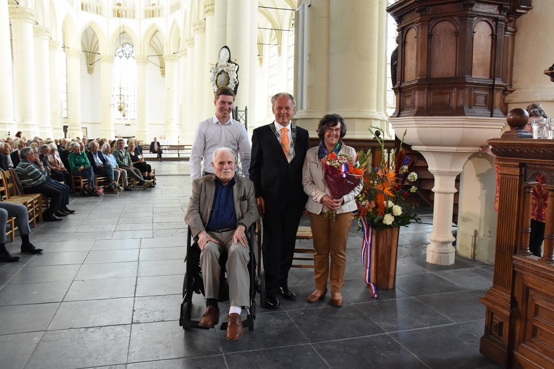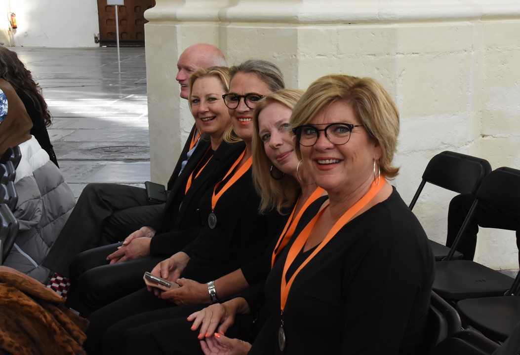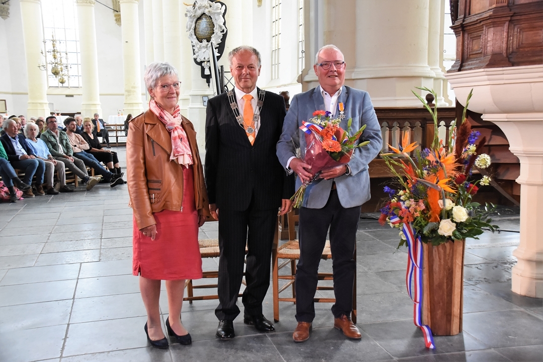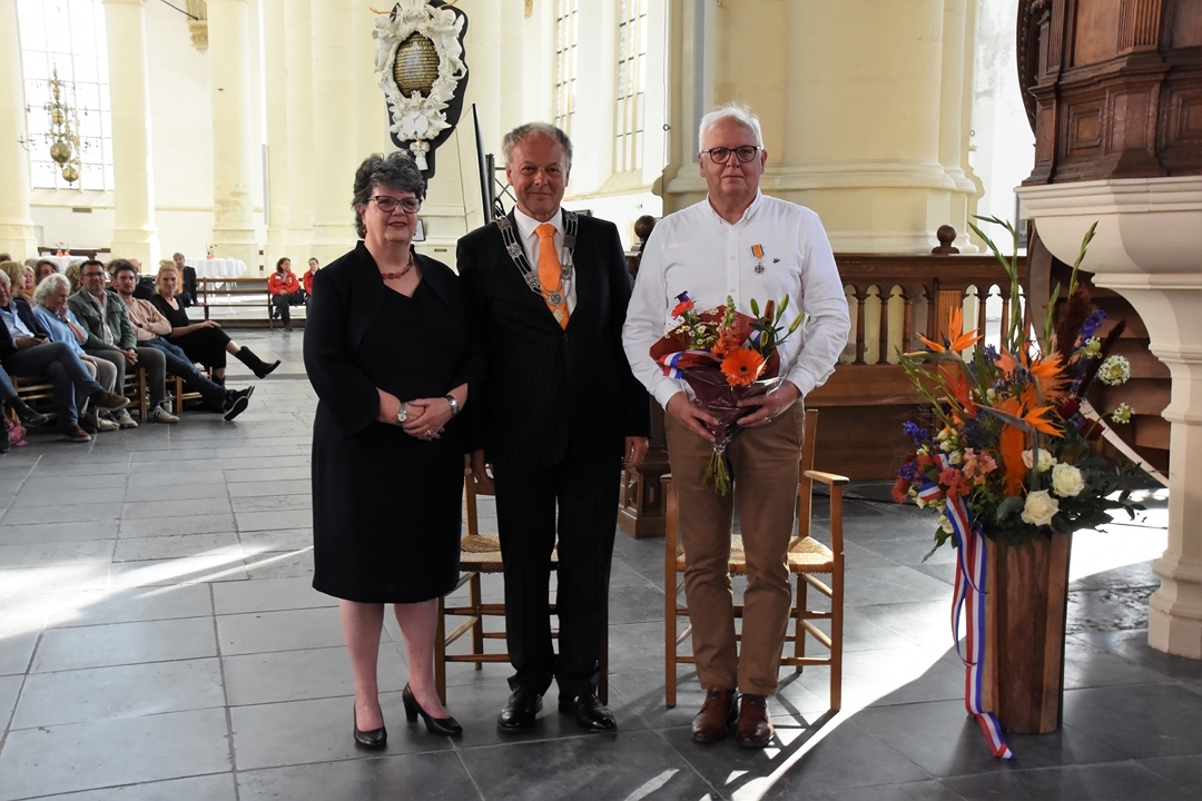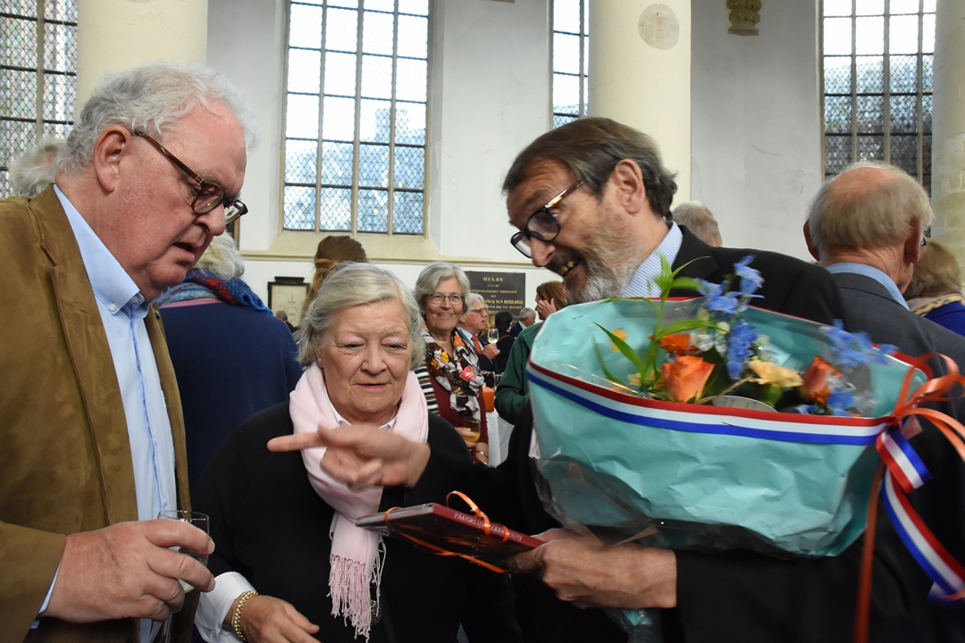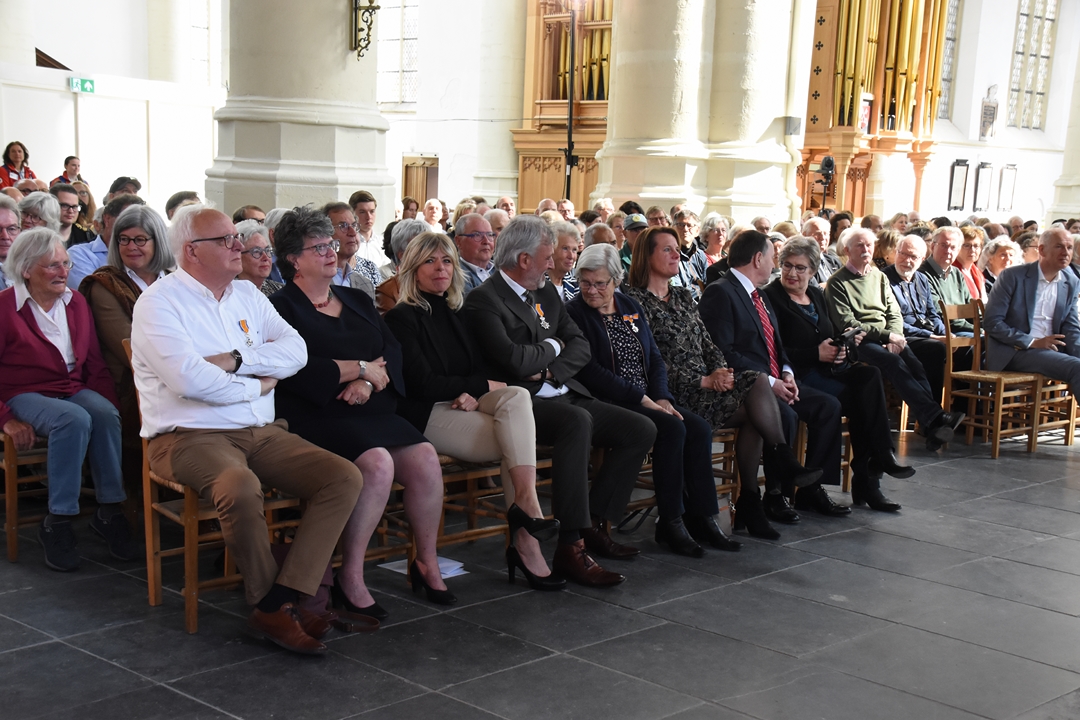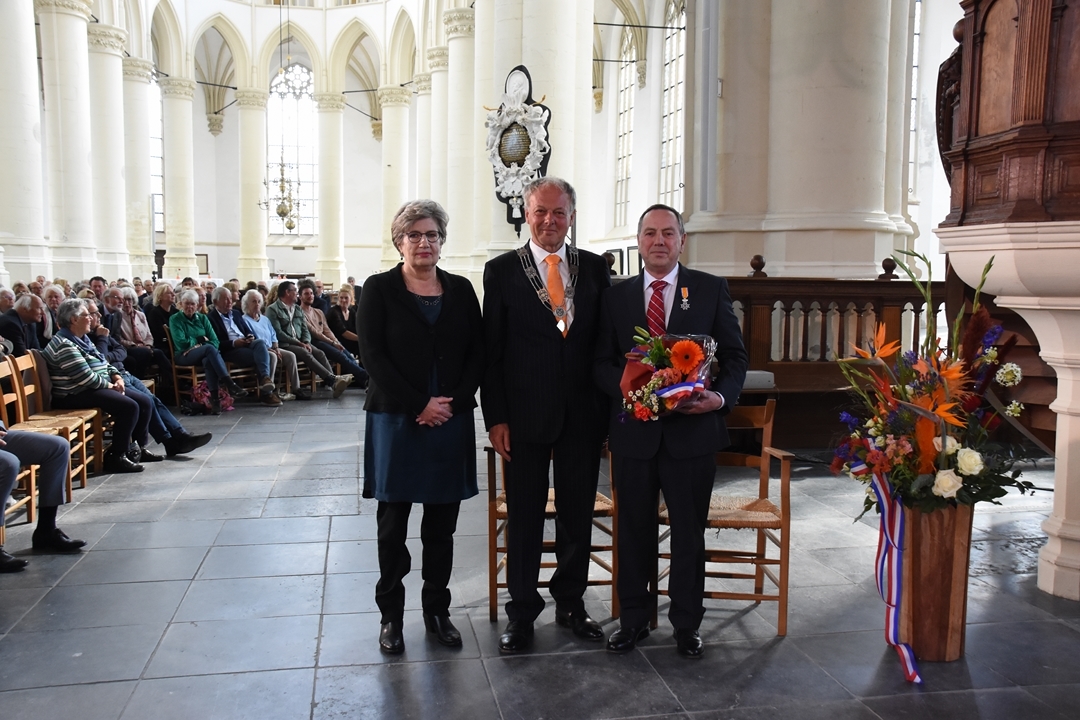 In de Hooglandse Kerk in Leiden zijn dinsdagochtend zestien stadsgenoten Koninklijk onderscheiden. Nog eens twee Leidenaren kregen hun lintje elders opgespeld. Dat gebeurde in Urk en in Groningen. De lintjes waren mooi verdeeld. Negen waren er voor een vrouw en negen voor een man.