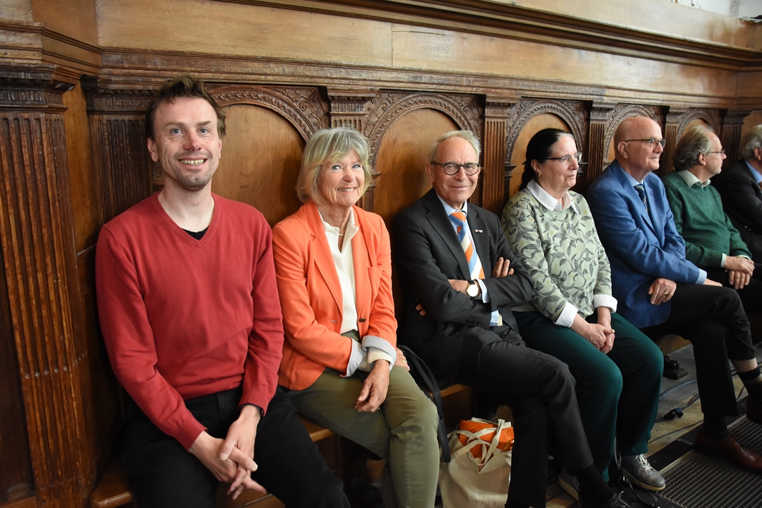 Het meest bijzondere lintje was dit keer voor Henricus Ernestus Gerardus Maria van Woerden. De gepensioneerde kabinetschef van de gemeente Leiden was van 1982 tot 2014 onder meer zelf verantwoordelijk voor het regelen van de Koninklijke onderscheidingen voor anderen. Zijn opvolger, kabinetschef Michael Juffermans, had hem naar de kerk gelokt met de smoes dat hij het allemaal niet alleen afkon. Of Hein wilde bijspringen.