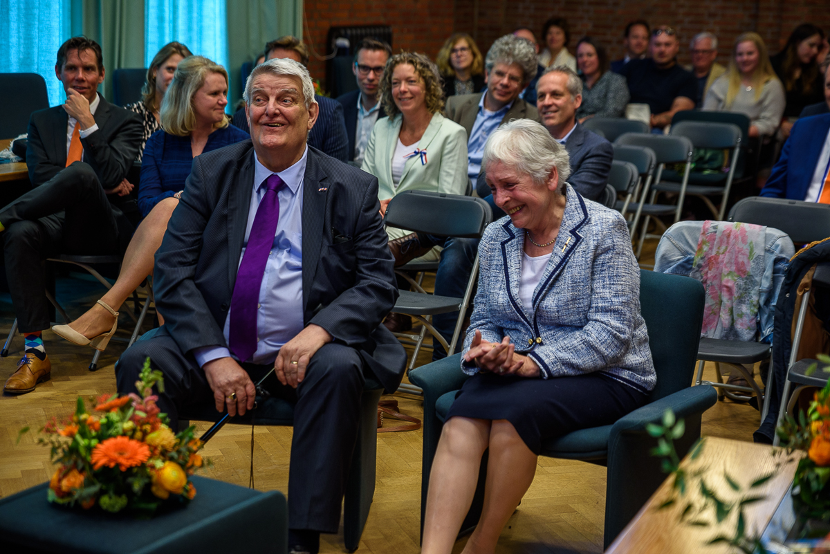 De heer Zweers luistert aandachtig naar burgemeester Stemerdink