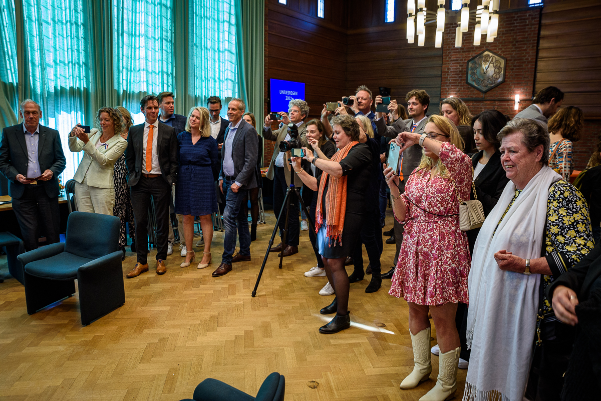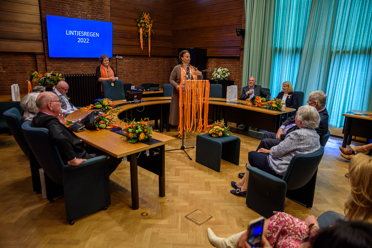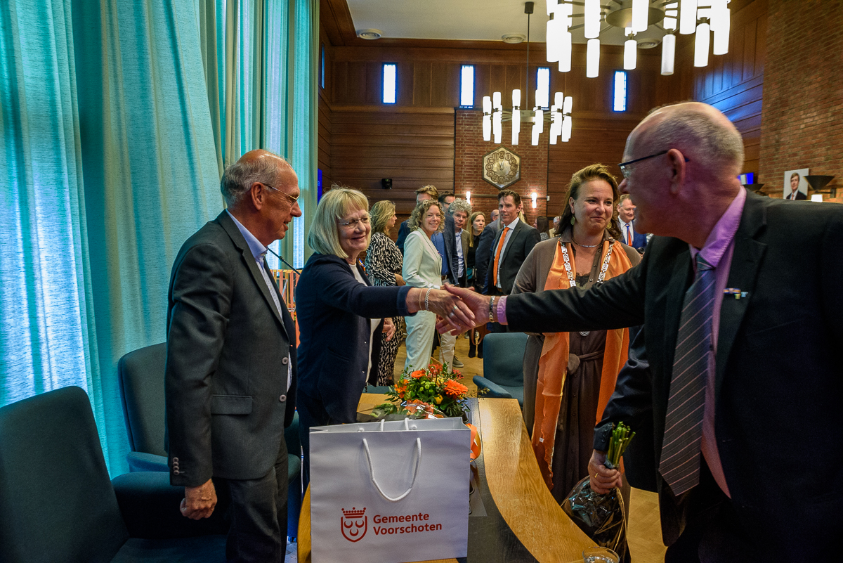 Dit jaar ging het weer als vanouds. In de goedgevulde raadszaal van het Voorschotense gemeentehuis aan de Leidseweg werden vijf lintjes uitgereikt. Een zesde lintje wordt later op dinsdag uitgereikt.