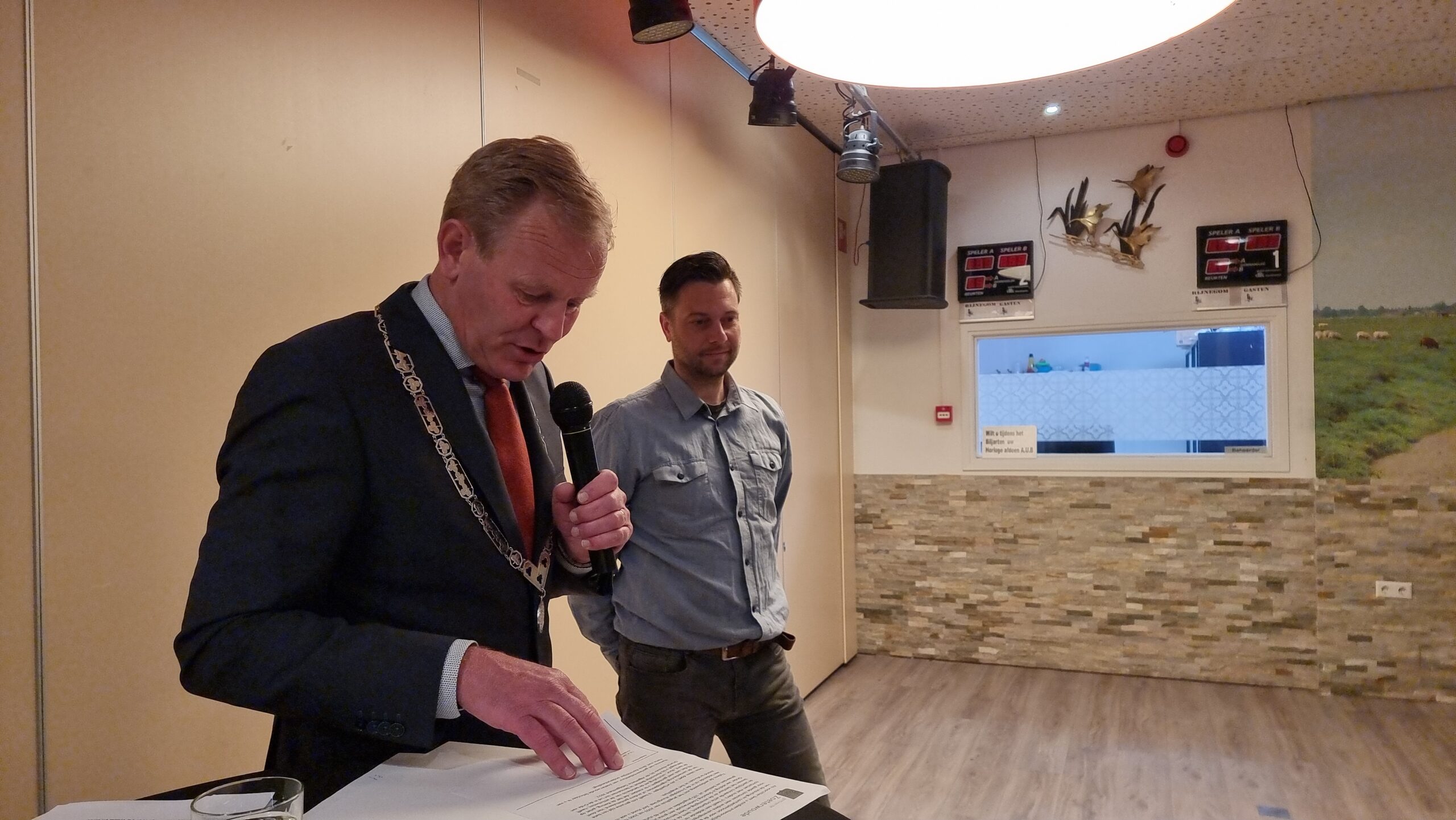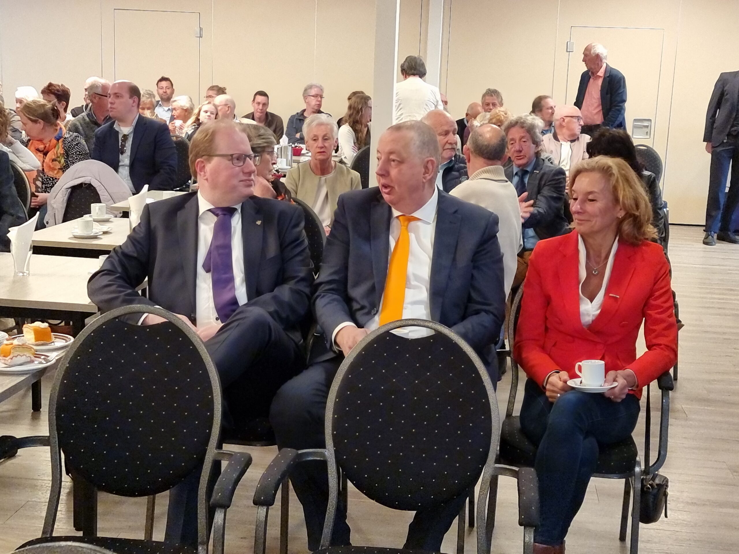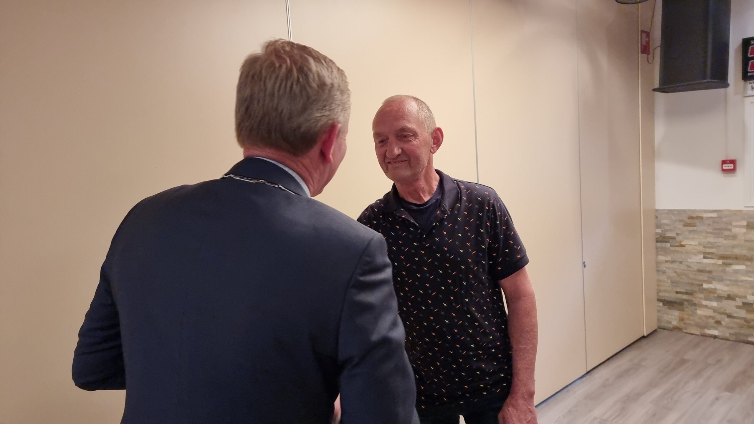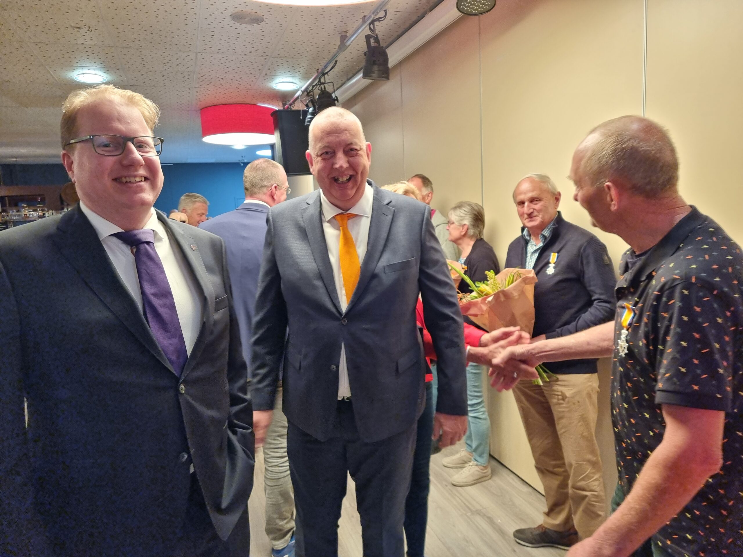 Chris de Waard was bij de Zoeterwoudse lintjesregen en sprak achtereenvolgens met de vorige en de huidige burgemeester, Lydia en Theo van Leeuwen, de heer van der Werf, het echtpaar Van den Akker en Koen van der Hoeven.