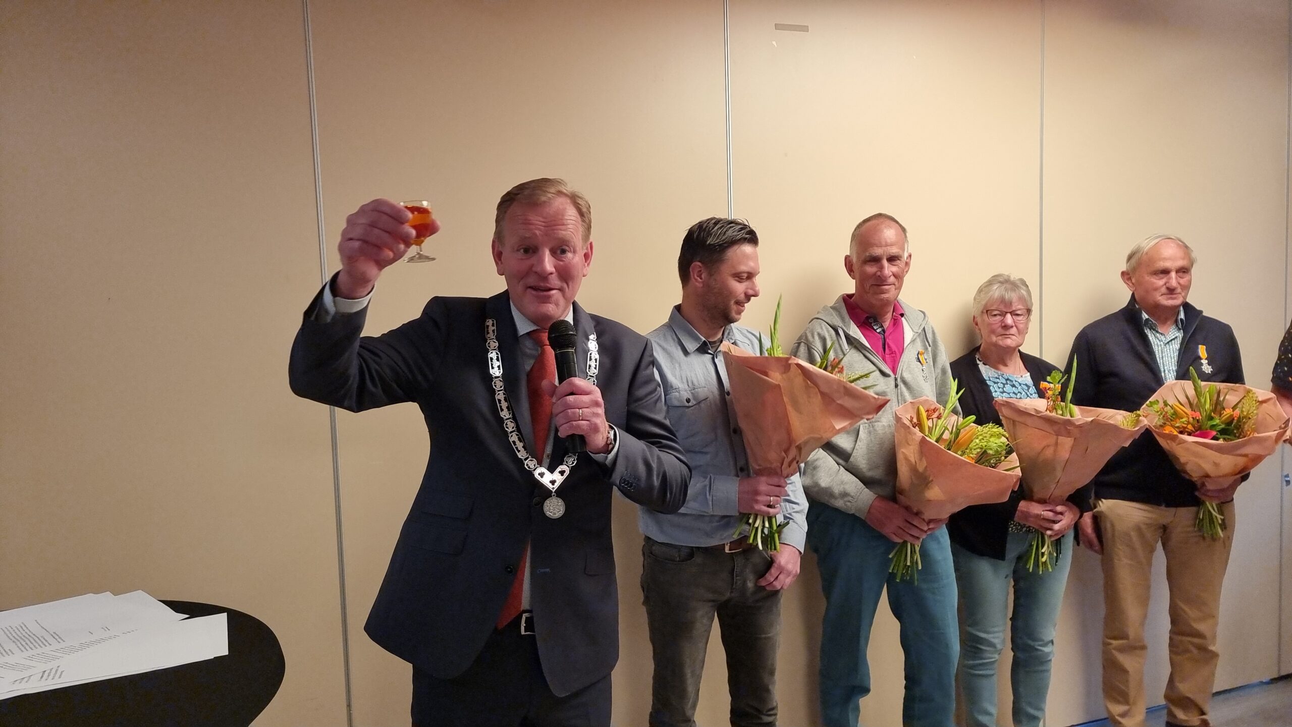 Vijf van de zes inwoners die dit jaar zijn geëerd met een Koninklijke onderscheiding namen deze dinsdag ook in ontvangst. In één geval wordt het lintje later uitgereikt door burgemeester Fred van Trigt. Het gaat daarbij om oud-raadslid Corrie Rietdijk die niet aanwezig kon zijn. Ze zat twaalf jaar onafgebroken in de gemeenteraad.