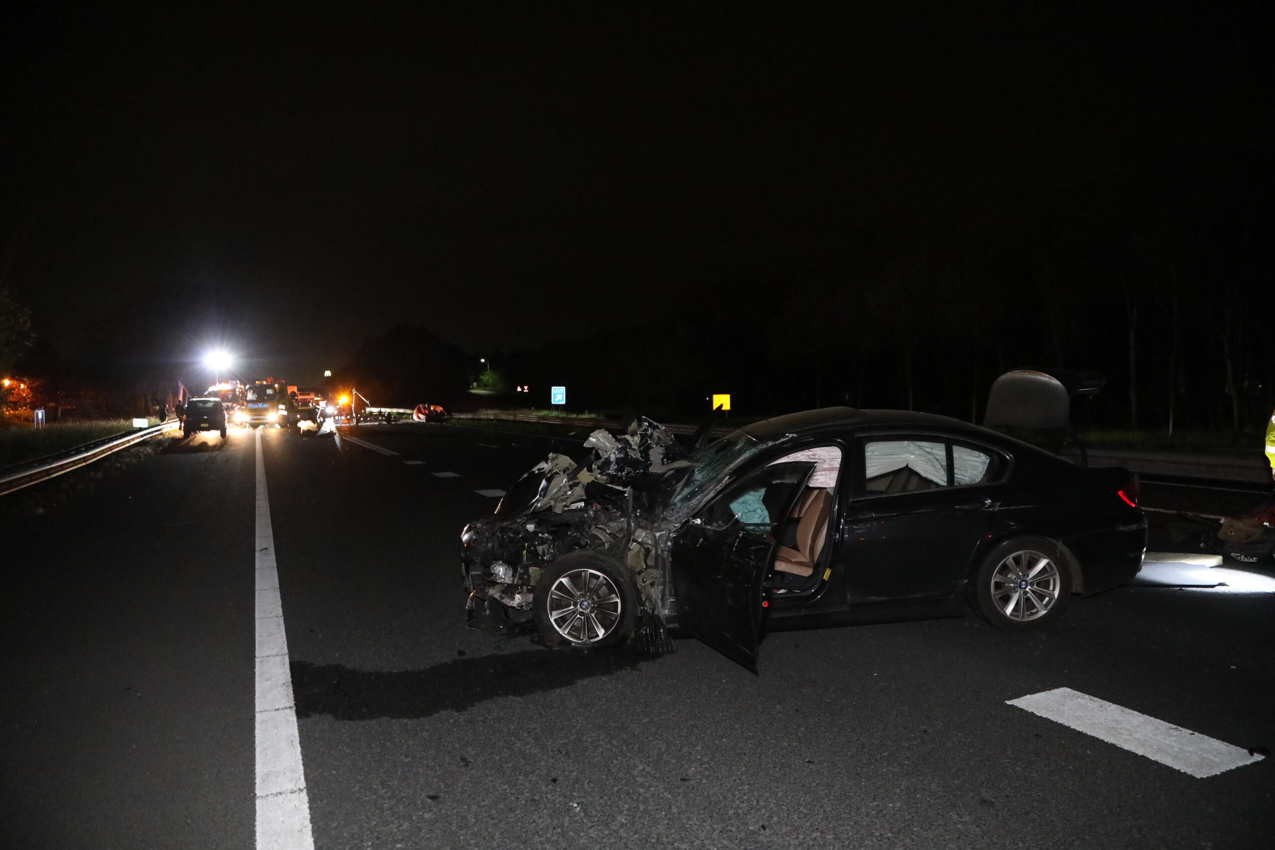 Omdat de brokstukken verspreid over de snelweg lagen, werd de A44 richting Oegstgeest afgesloten voor al het verkeer totdat de weg weer vrij was. Een inzittende uit de achterliggende auto is voor controle overgebracht naar het ziekenhuis.