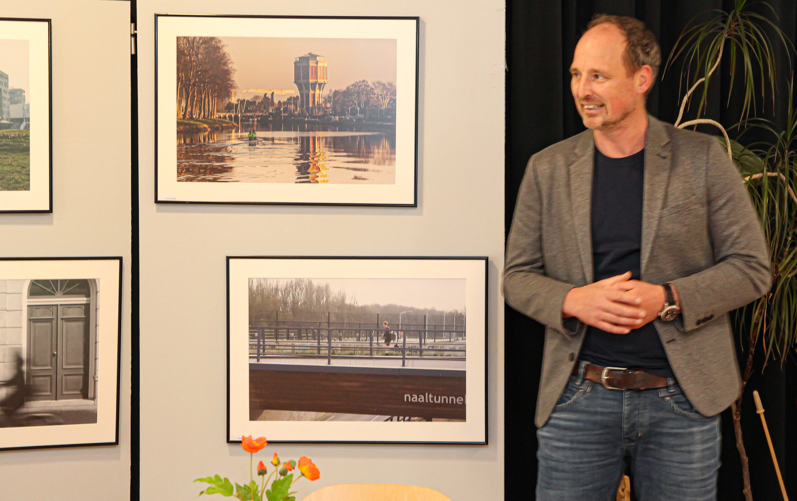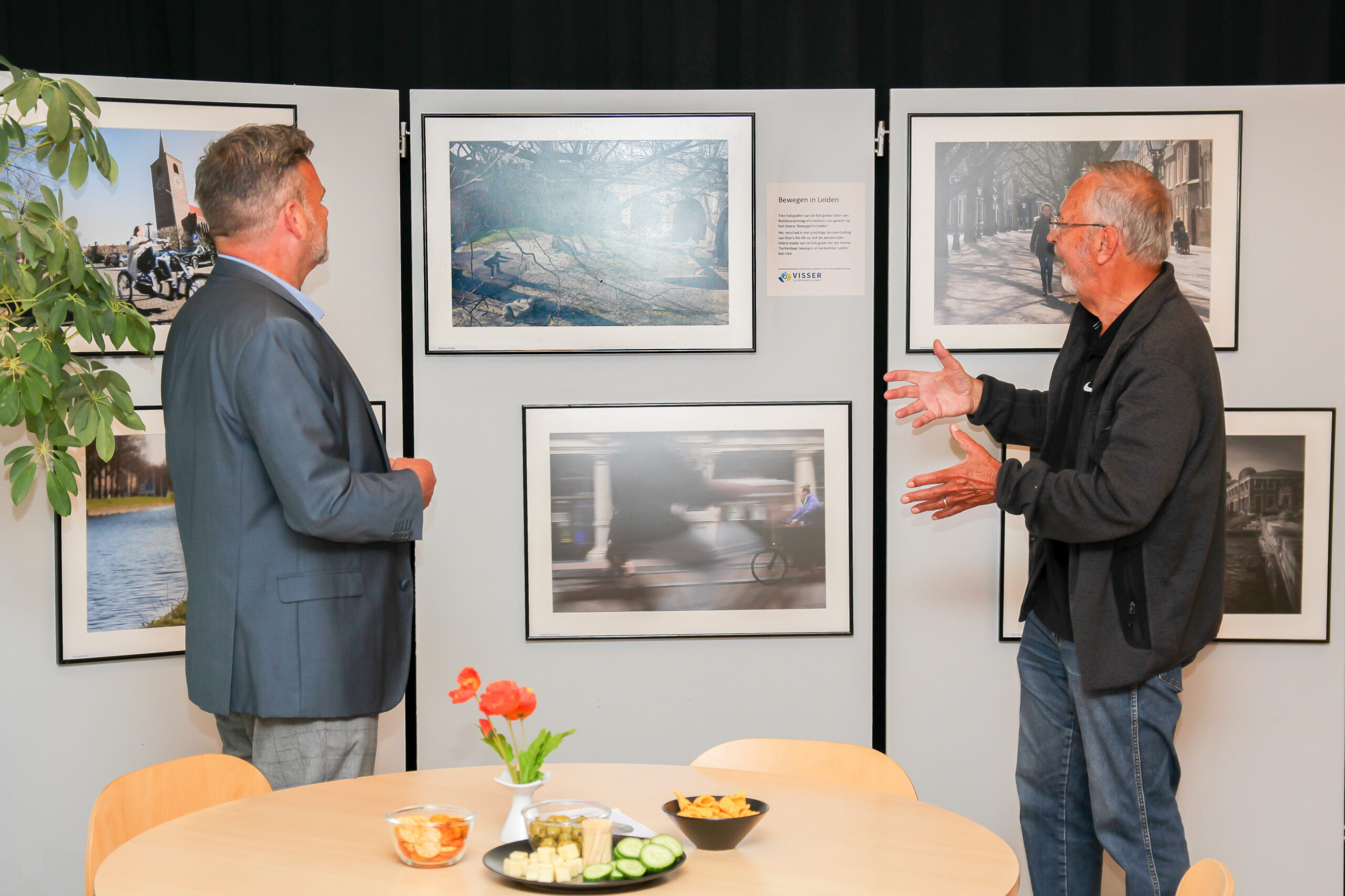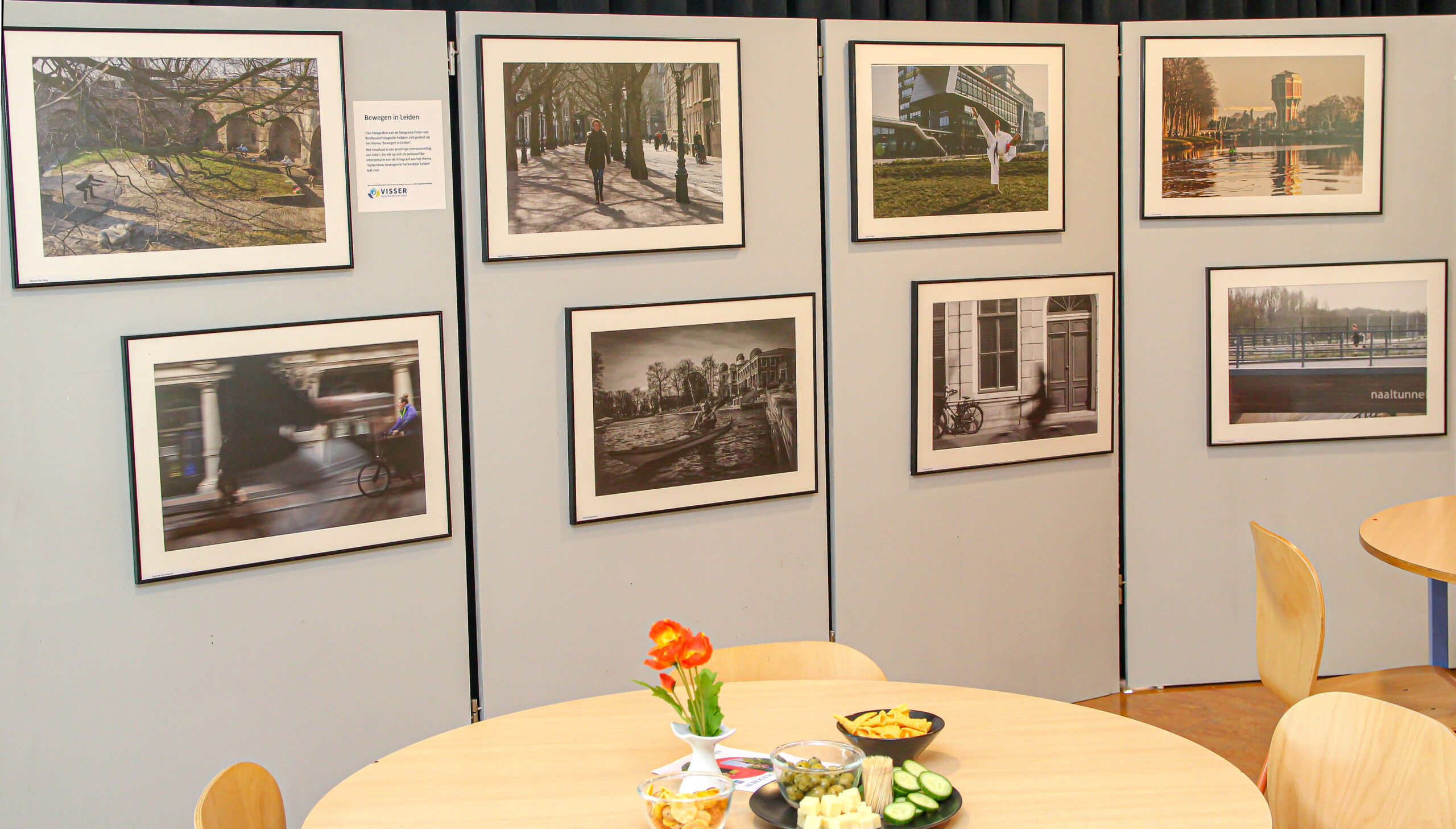 Het idee voor de expositie komt van fysiotherapeut Paul Mulder. “We zijn een bedrijf in Leiden en motiveren mensen om te bewegen en te sporten. Een foto opdracht die aanzet tot bewegen past daar mooi bij”, vertelt Mulder tijdens de feestelijke opening.