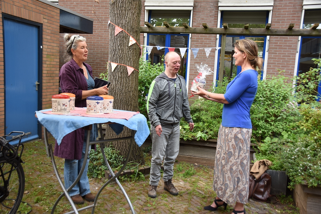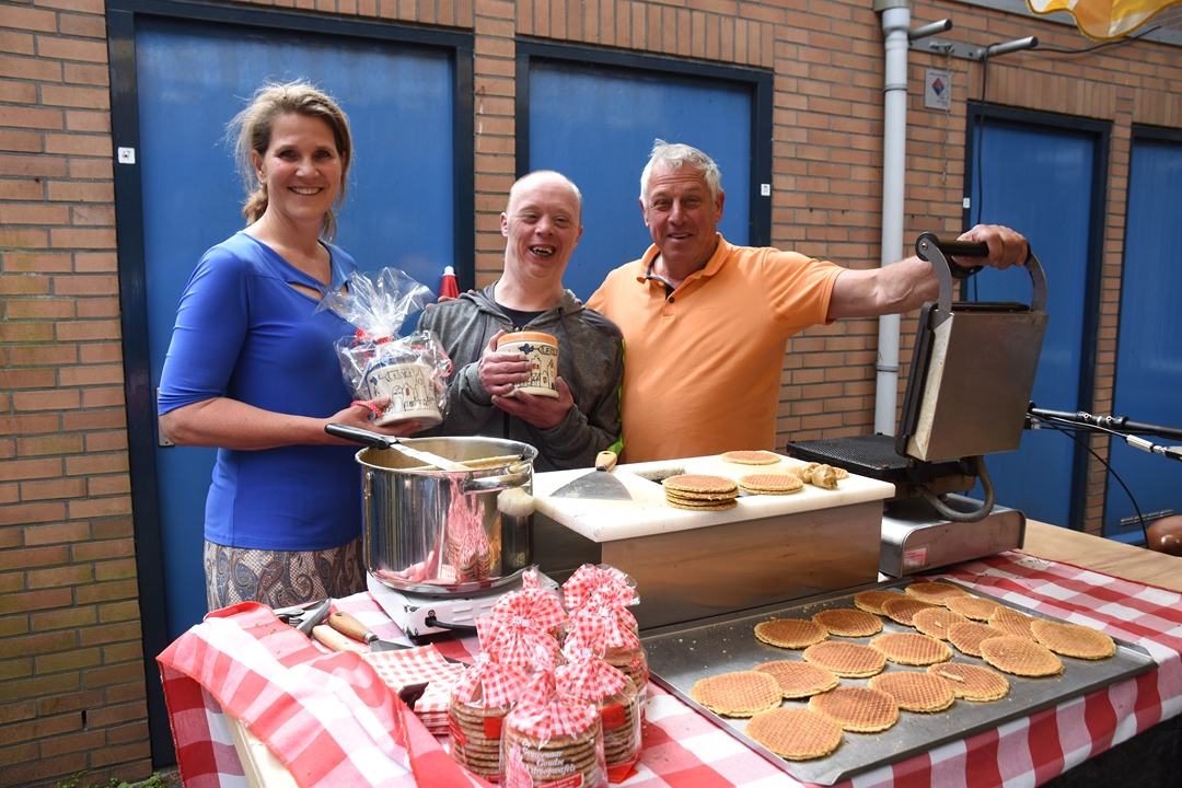 Bij Atelier uit de Kunst maken de cliënten van zorgorganisatie Gemiva sinds dinsdag Leidse stroopwafelpotten. Samen met bedenker van het project Ton Ranselaar werd de eerste stroopwafelpot in ontvangst genomen door een vertegenwoordiger van de gemeente.