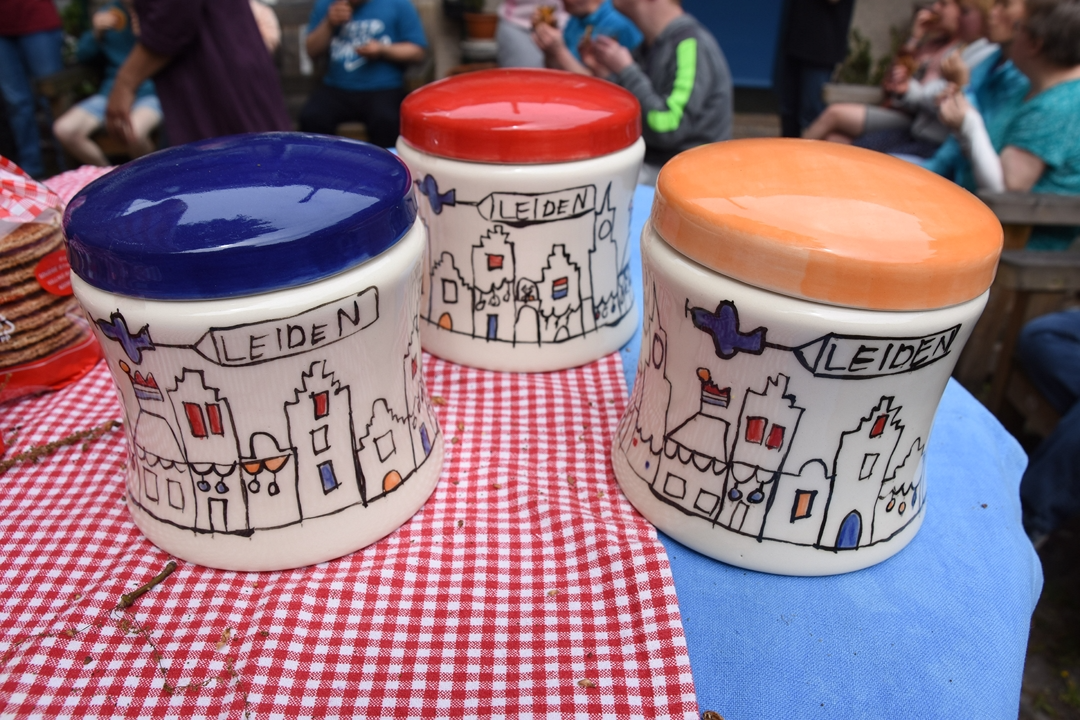 De potten zijn gedecoreerd en beschilderd door cliënten van Gemiva bij de werk-en-leerplek Atelier uit de Kunst, daar werken mensen met een beperking. Zij maken de Leidse potjes met volle enthousiasme. “Ik voel me een stroopwafelgod”, zegt een van de deelnemers.