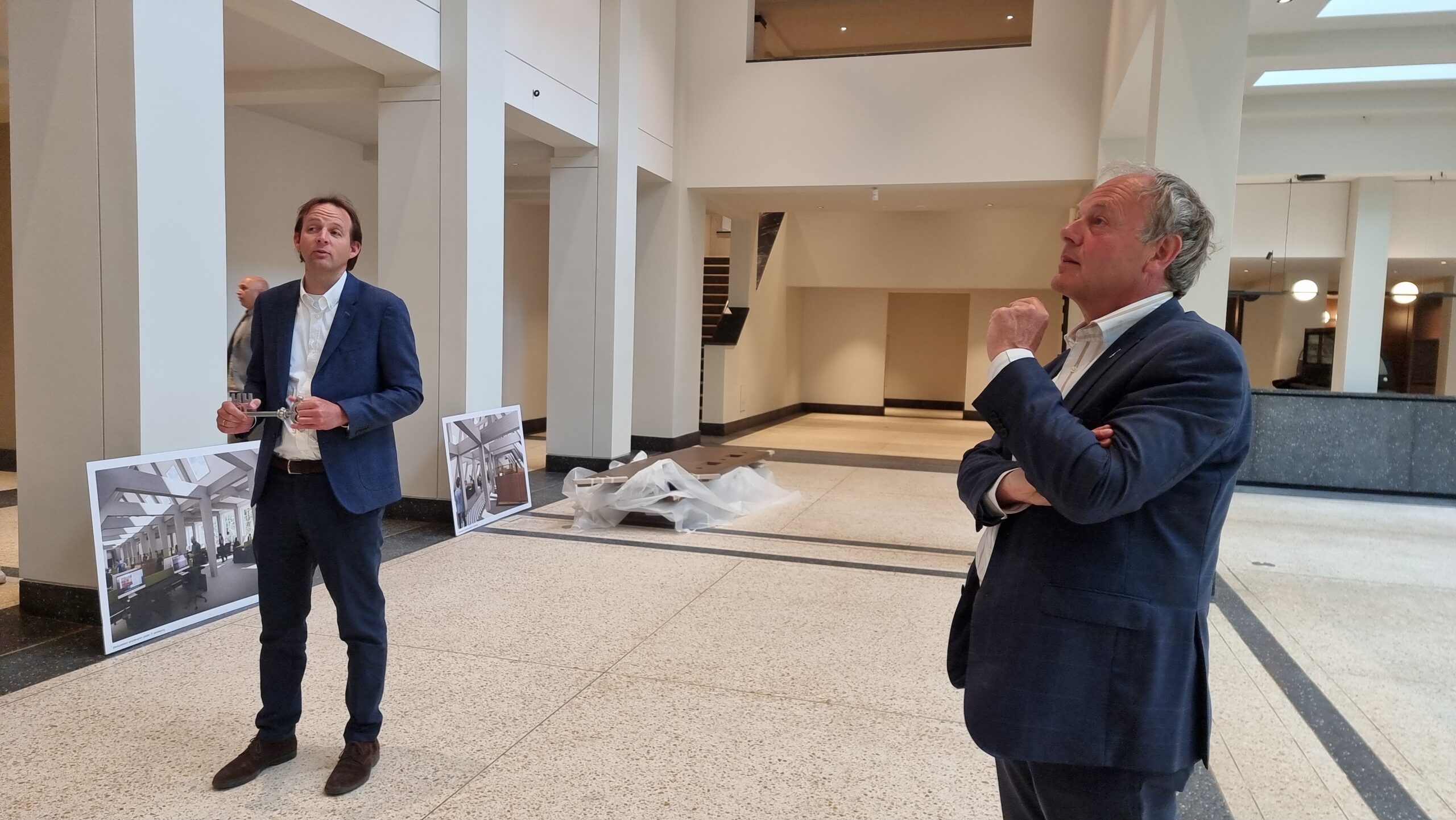Lenferink: “Een andere parel is de open binnentuin, waar je ook als bezoeker een rondje kunt lopen. In deze vernieuwde setting kunnen we bovendien ruim drie keer zoveel ambtenaren een moderne werkplek bieden dan voor de verbouwing.” Die binnentuin is gekomen op de plek waar eerst de balies stonden onder de verwijderde glazen overkapping.