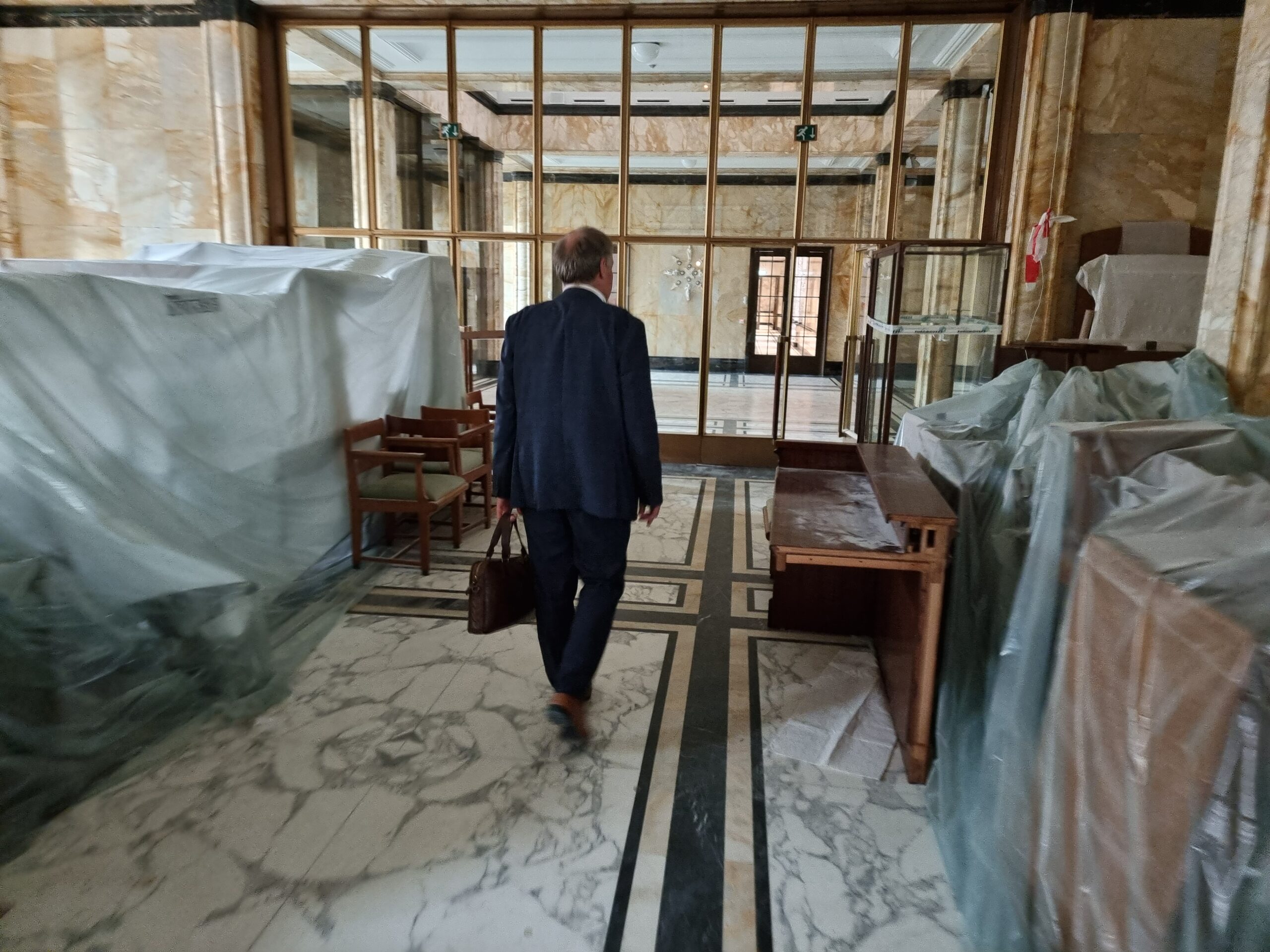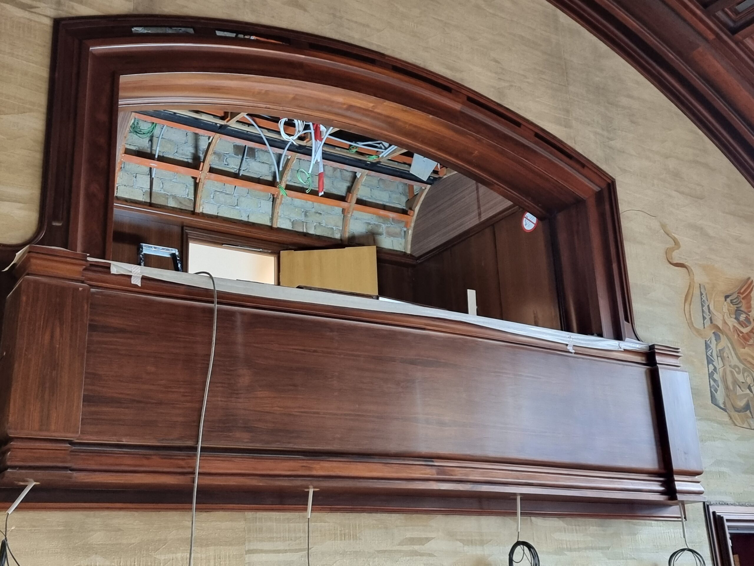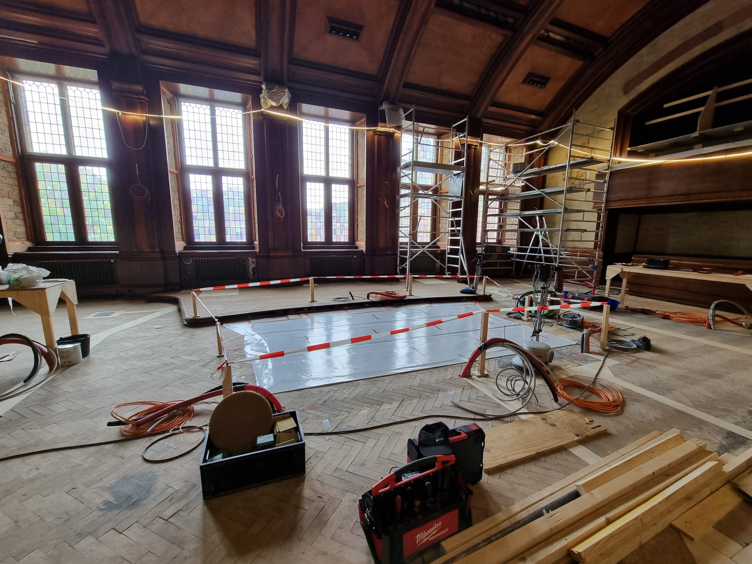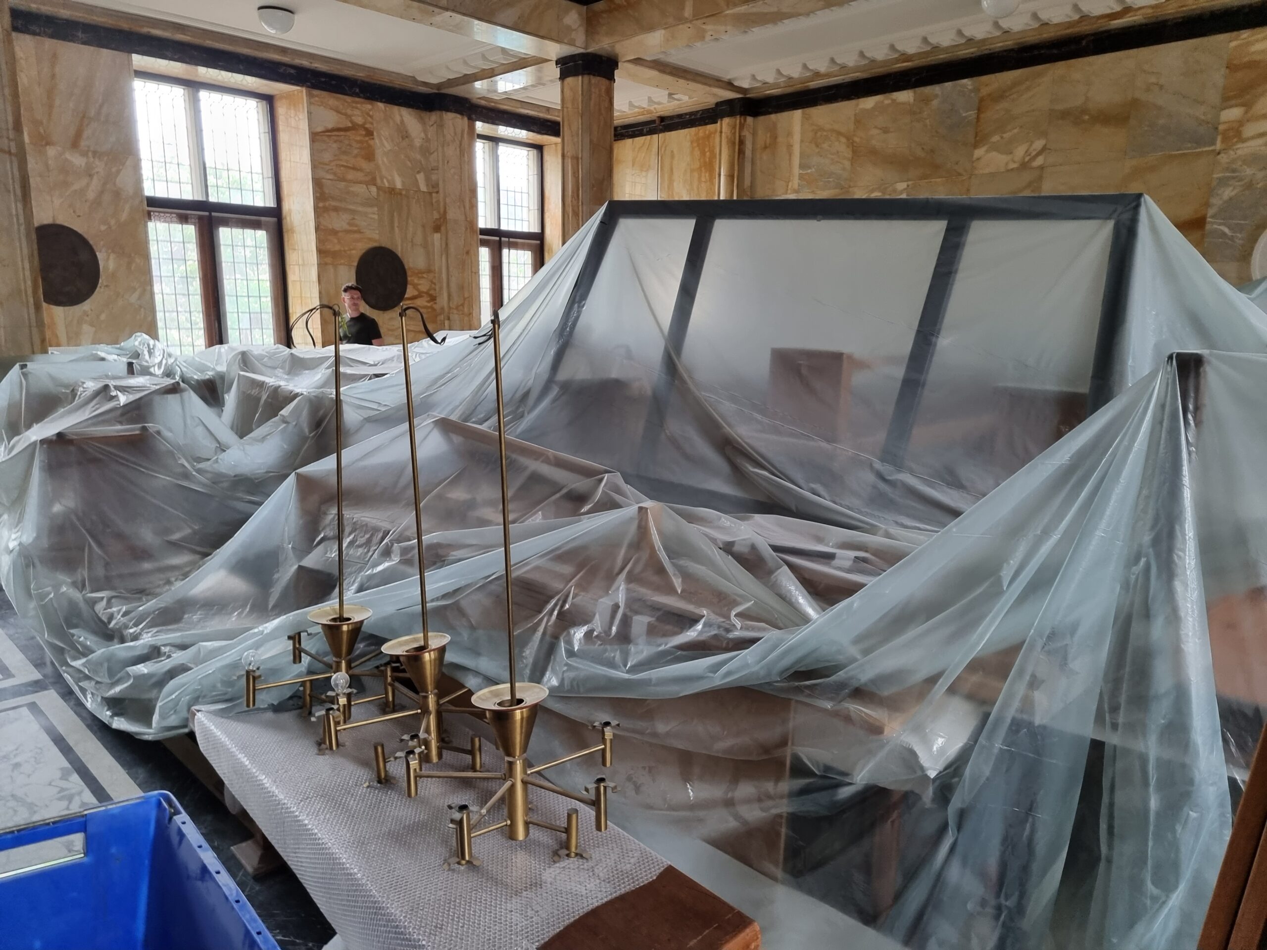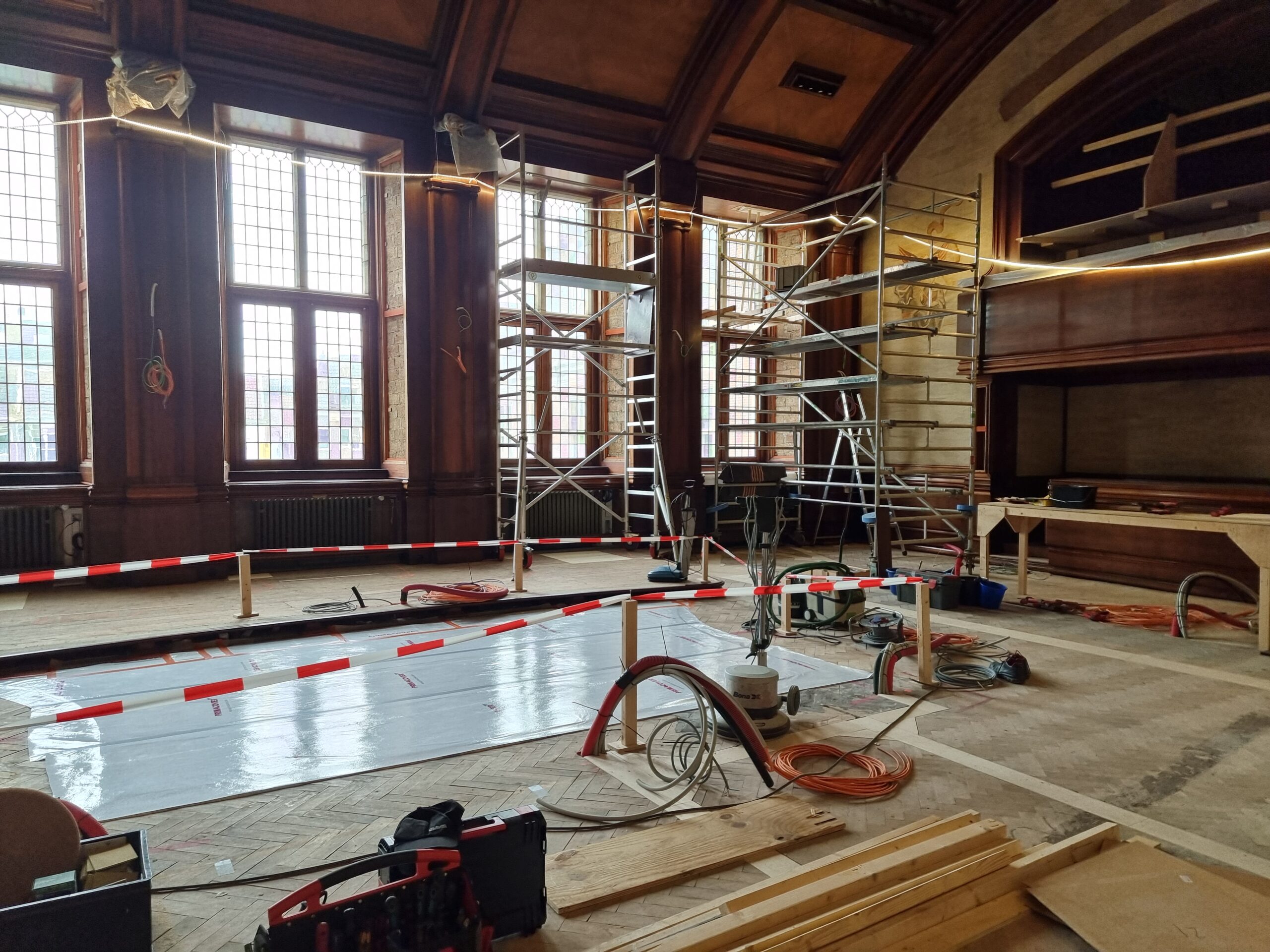 In de Burgerzaal en de Trouwzaal ligt nog meubilair opgeslagen. Dat wordt de komende tijd weer op zijn plaatst gezet. Vanaf oktober kan hier weer getrouwd worden.
