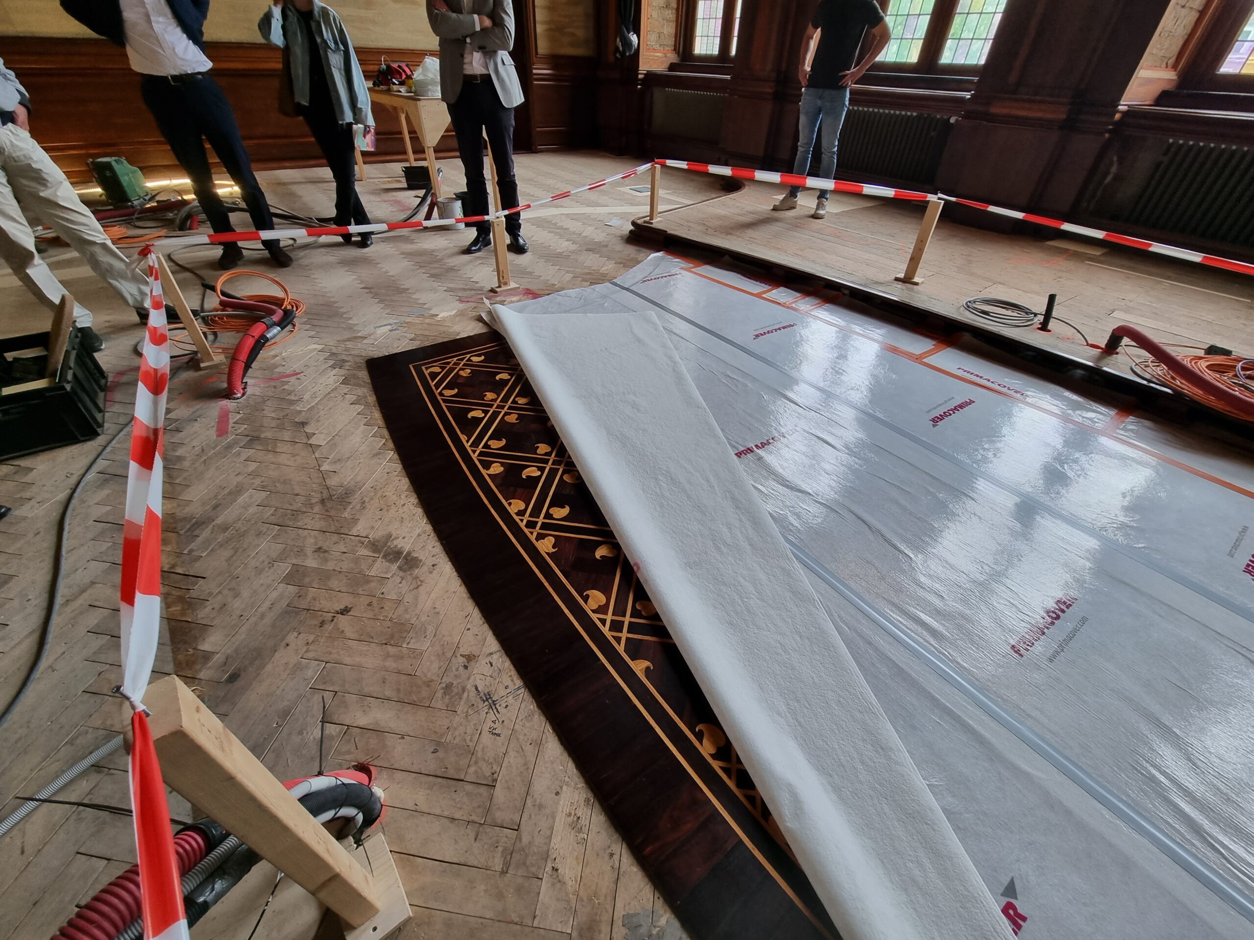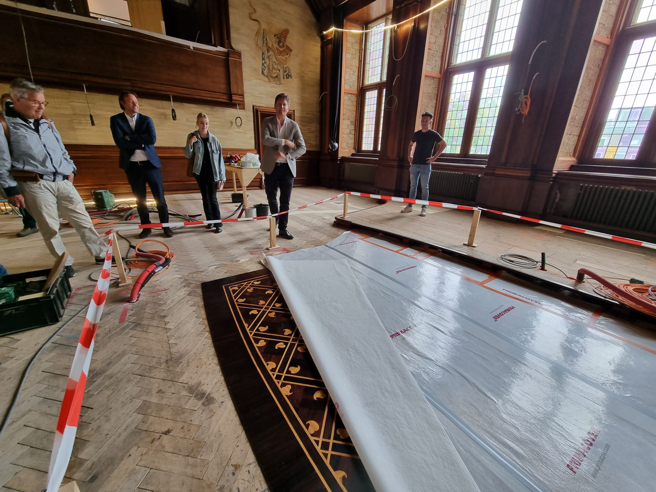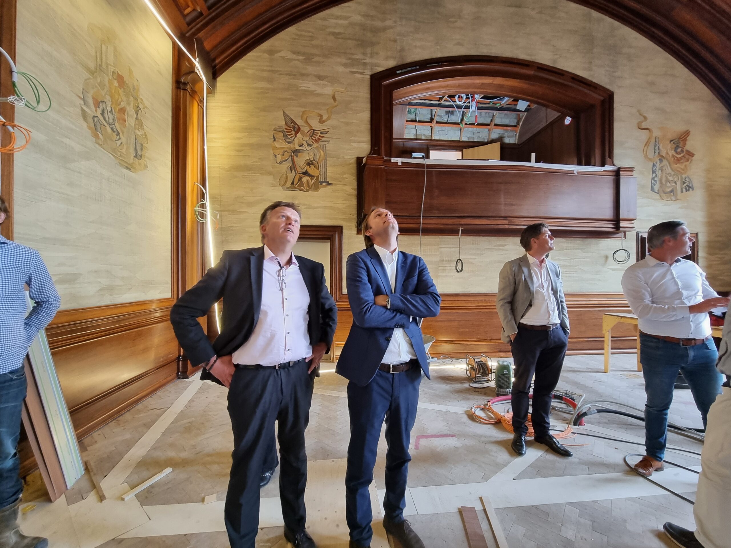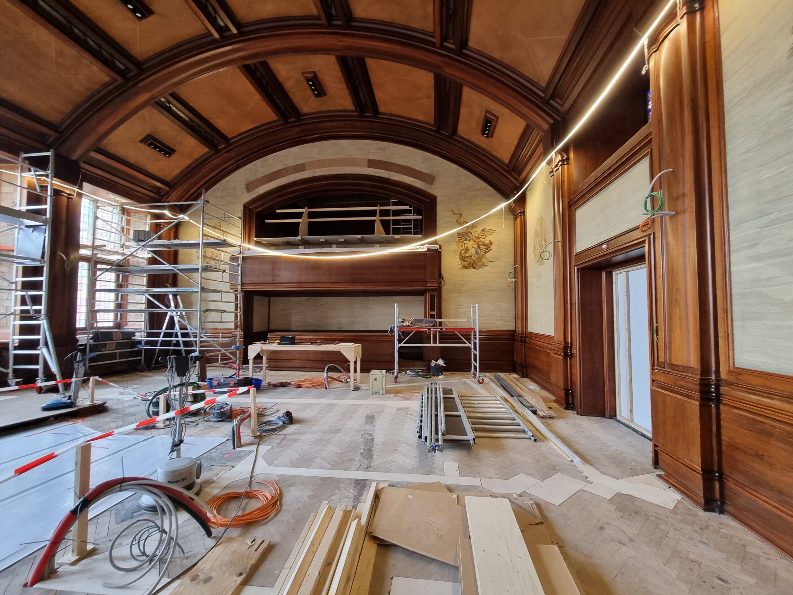 De restauratie van de Raadzaal in het Leidse stadhuis is een apart project en is nog niet helemaal klaar. Begin juli wordt ook deze ruimte opgeleverd.