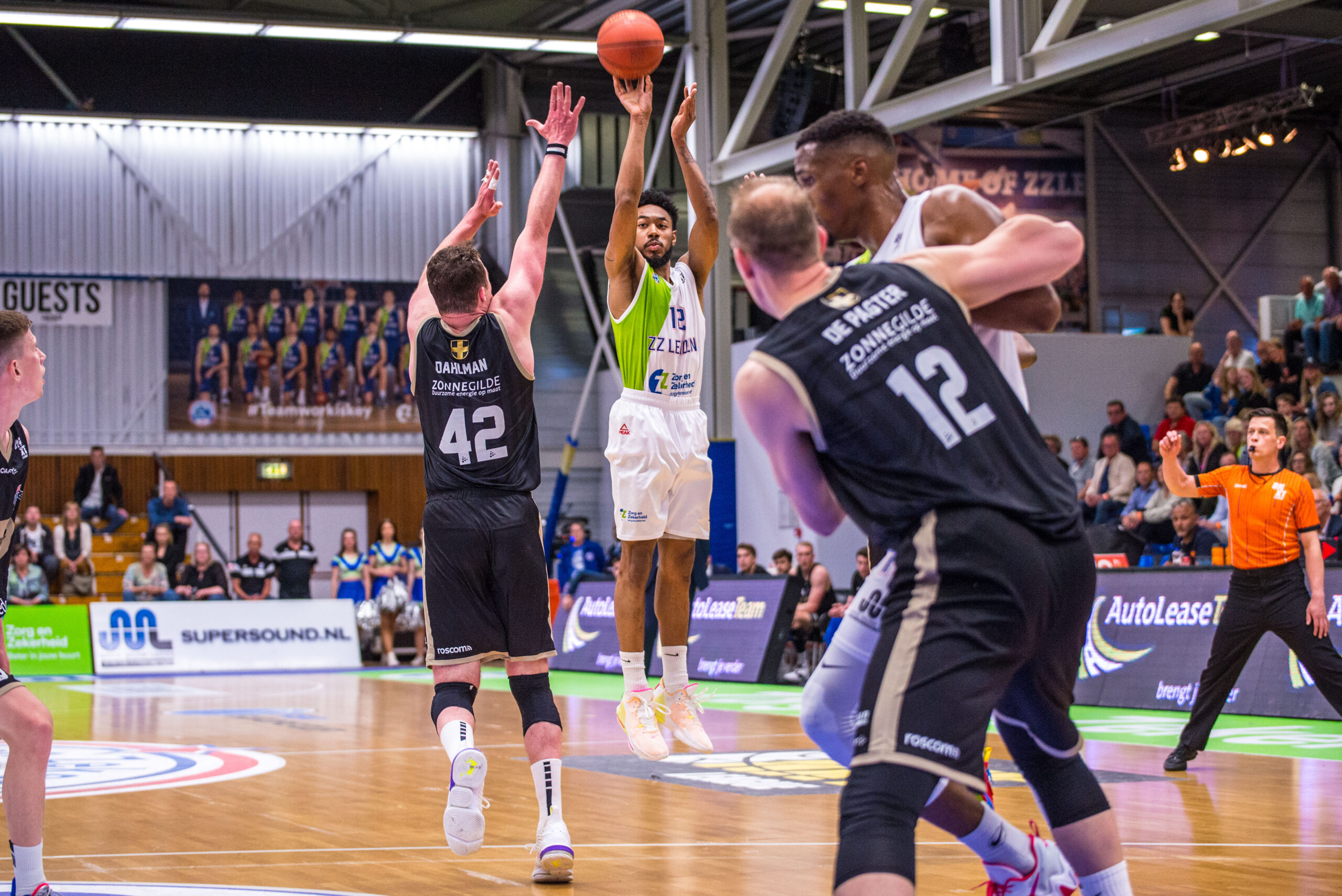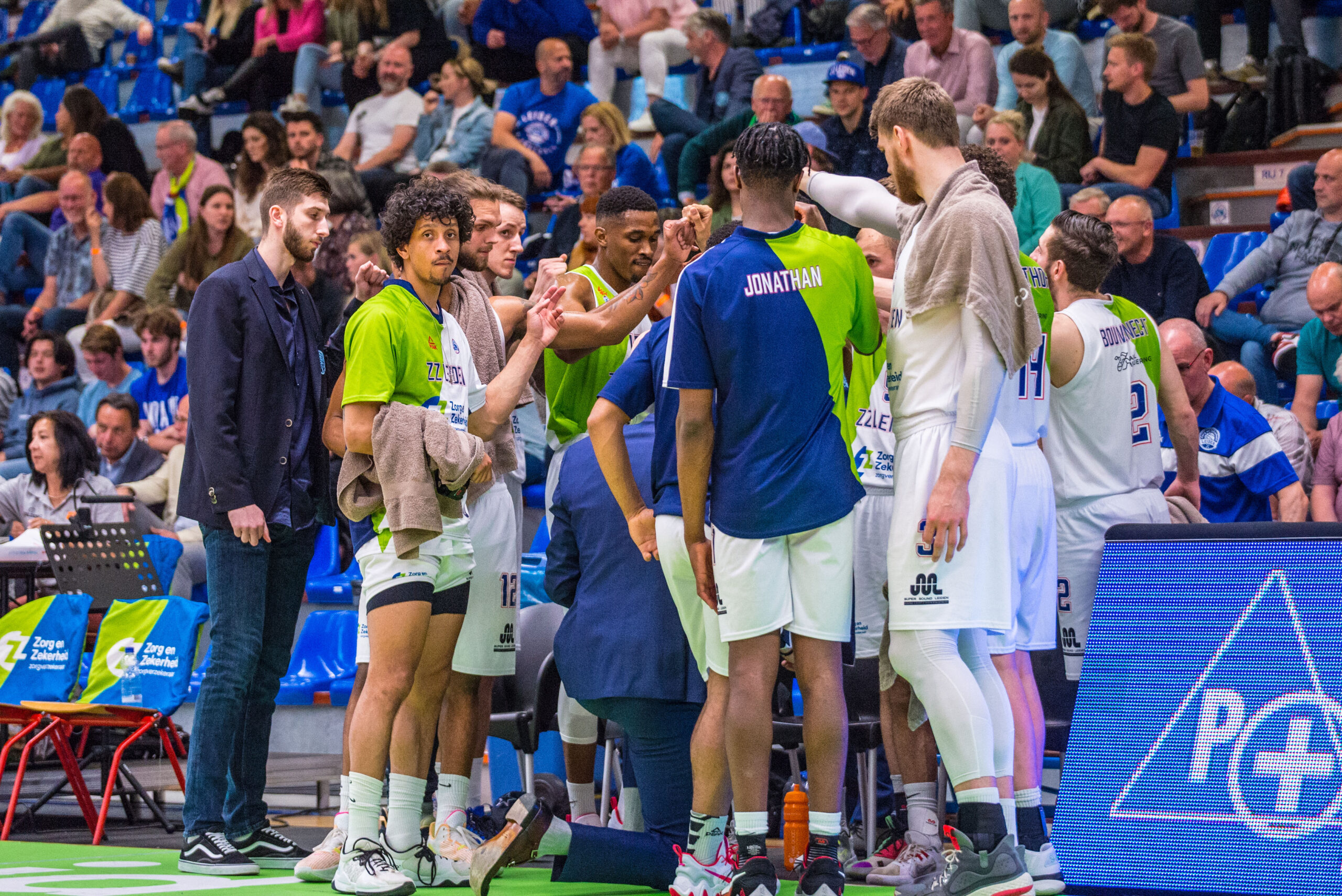 Donderdag gaat de serie in Zwolle verder. Of Arunas Mikalauskas en Worthy de Jong, die omgekleed meedeed aan de warming-up, dan wel inzetbaar zijn, is nog even afwachten.