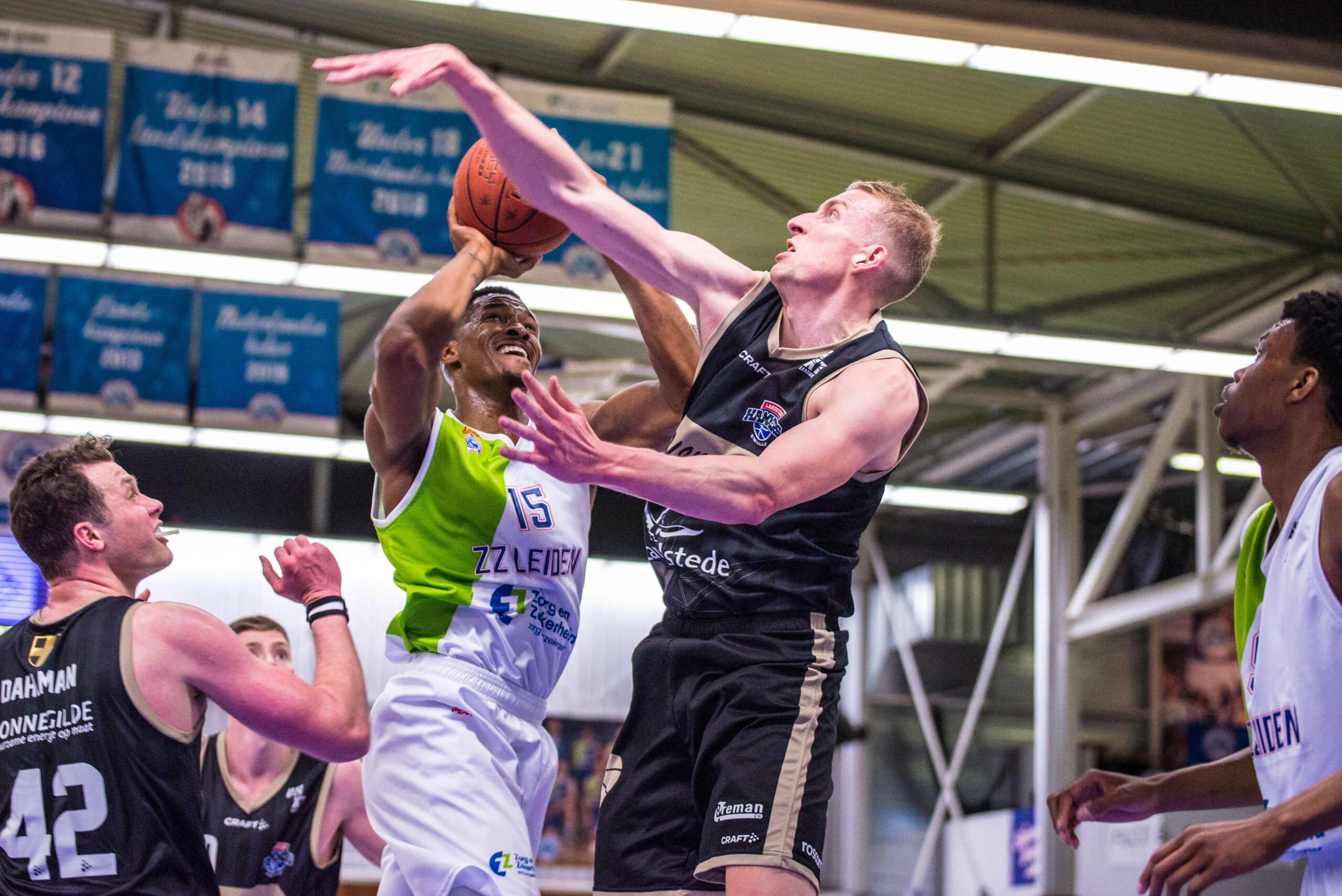 Zorg en Zekerheid Leiden is de play-offs goed begonnen. De ploeg moest het doen zonder Arunas Mikalauskas en Worthy de Jong, maar Landstede Hammers werd in de openingswedstrijd van de halve finale met 91-79 verslagen. Donderdag is tweede wedstrijd van de play-offs in Zwolle.