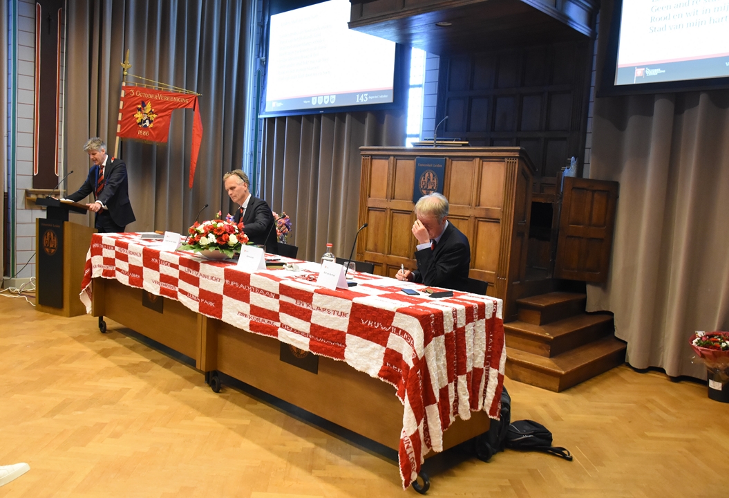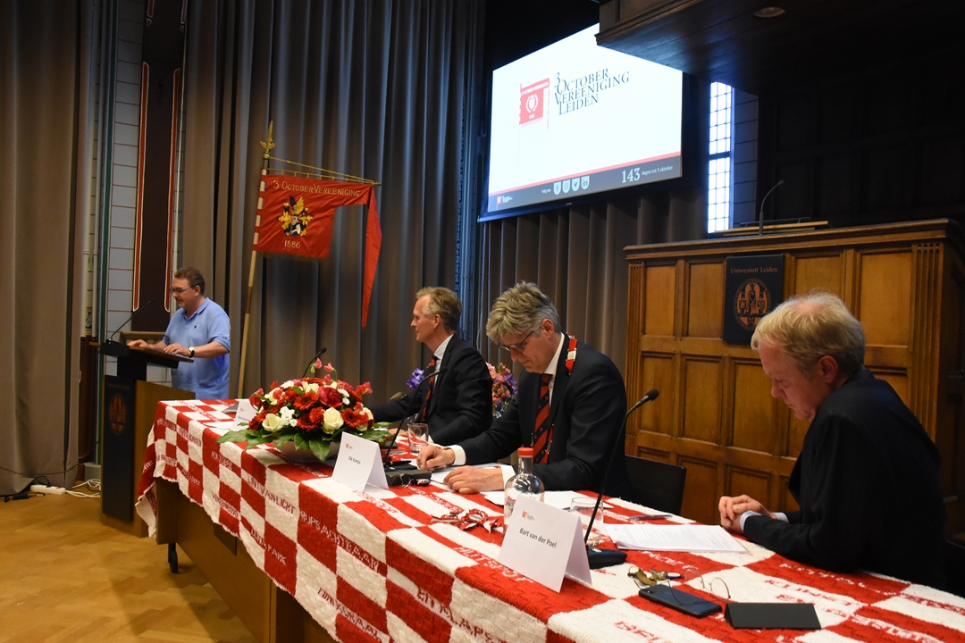 Het thema werd vrijdagavond bekend gemaakt tijdens de algemene ledenvergadering van de 3 October Vereeniging in het Academiegebouw van de Universiteit Leiden. Daar werden ook twee ereleden benoemd. Rutger Veldhuijzen van Zanten werd postuum benoemd tot ere-commissaris.