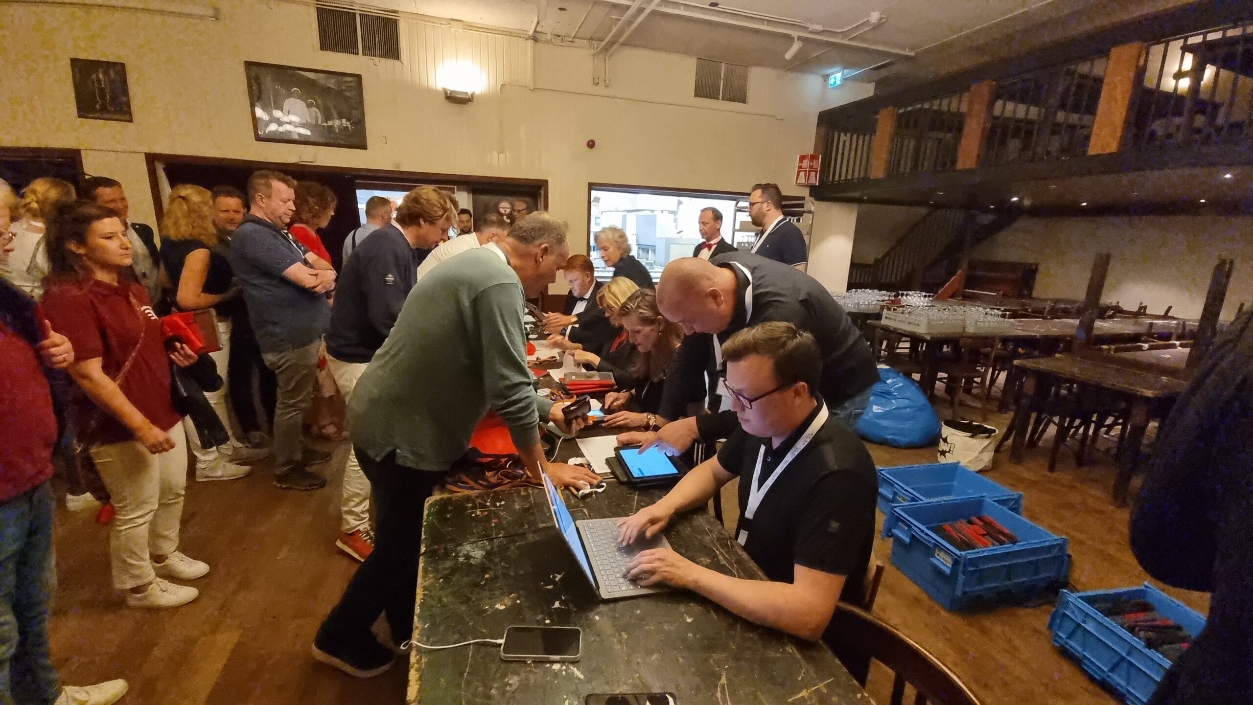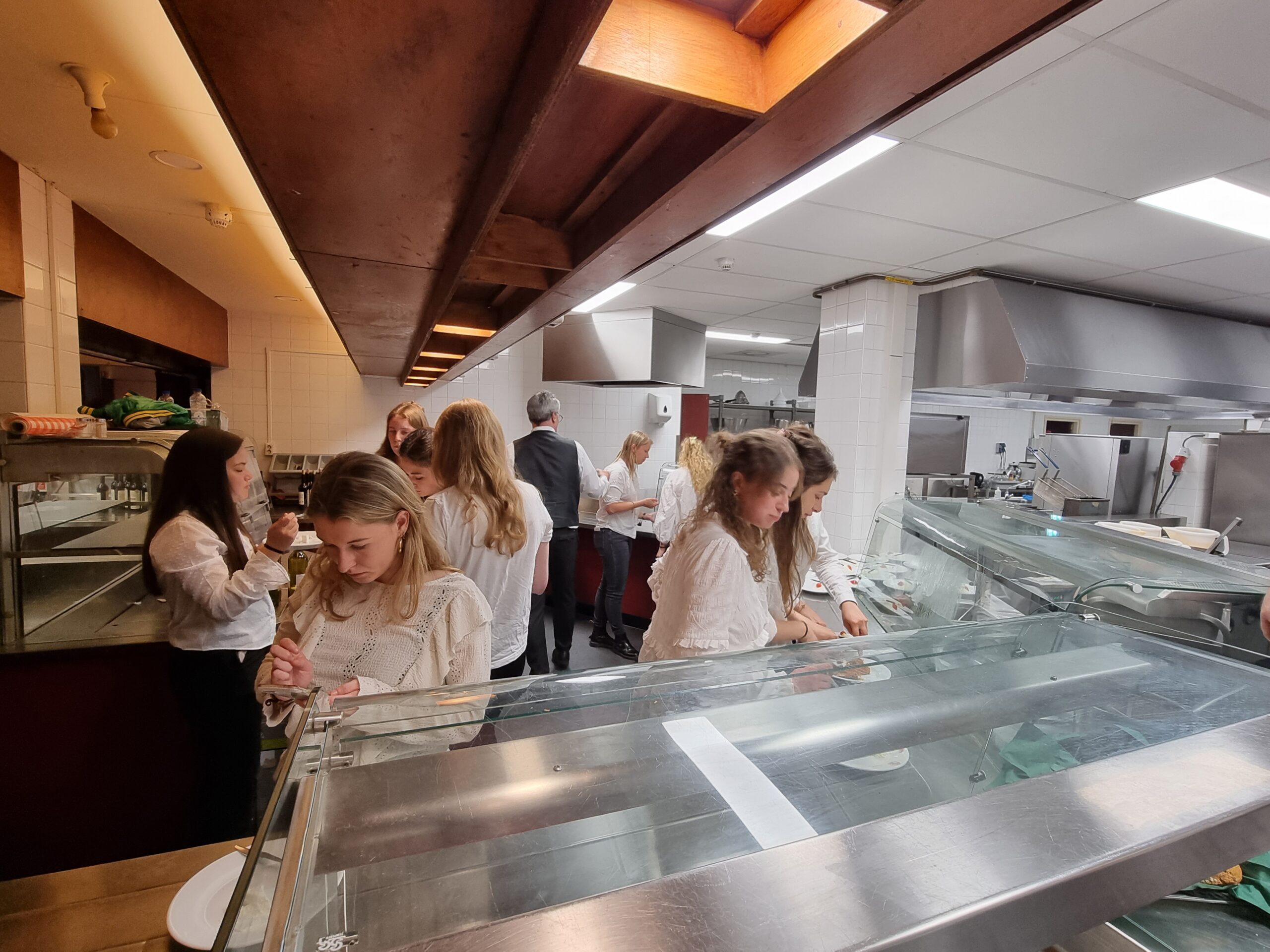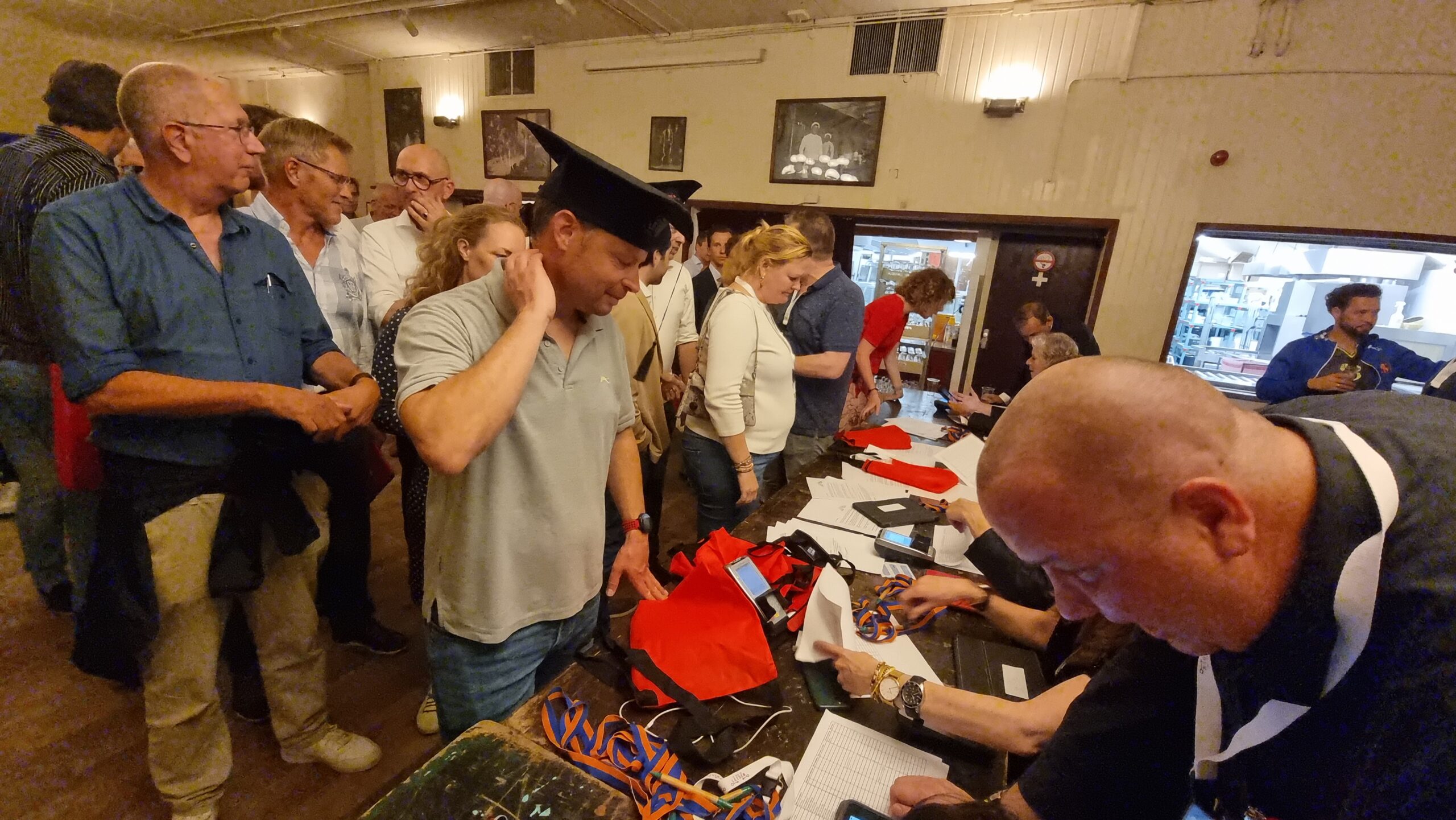 Gisteren verliep weer als vanouds. Om 17.00 uur stroomde Societeit Minerva vol. Letterlijk, want met 67 teams kwamen er 335 deelnemers naar de Breestraat. Plus nog eens 120 vrijwilligers. “En zonder hen kunnen we dit natuurlijk nooit organiseren”, zegt bestuurslid Nikos van Aelst. Voor alle aanwezigen werd eerst een eenvoudige, doch voedzame maaltijd bereid door de keukenbrigade van Minerva onder leiding van Tom Holswilder. Op de kaart het inmiddels traditionele ‘Slag om Leiden’-driegangenmenu, bestaande uit een soepje, schnitzel met aardappelblokjes en gemengde groente met een bavarois als toetje.