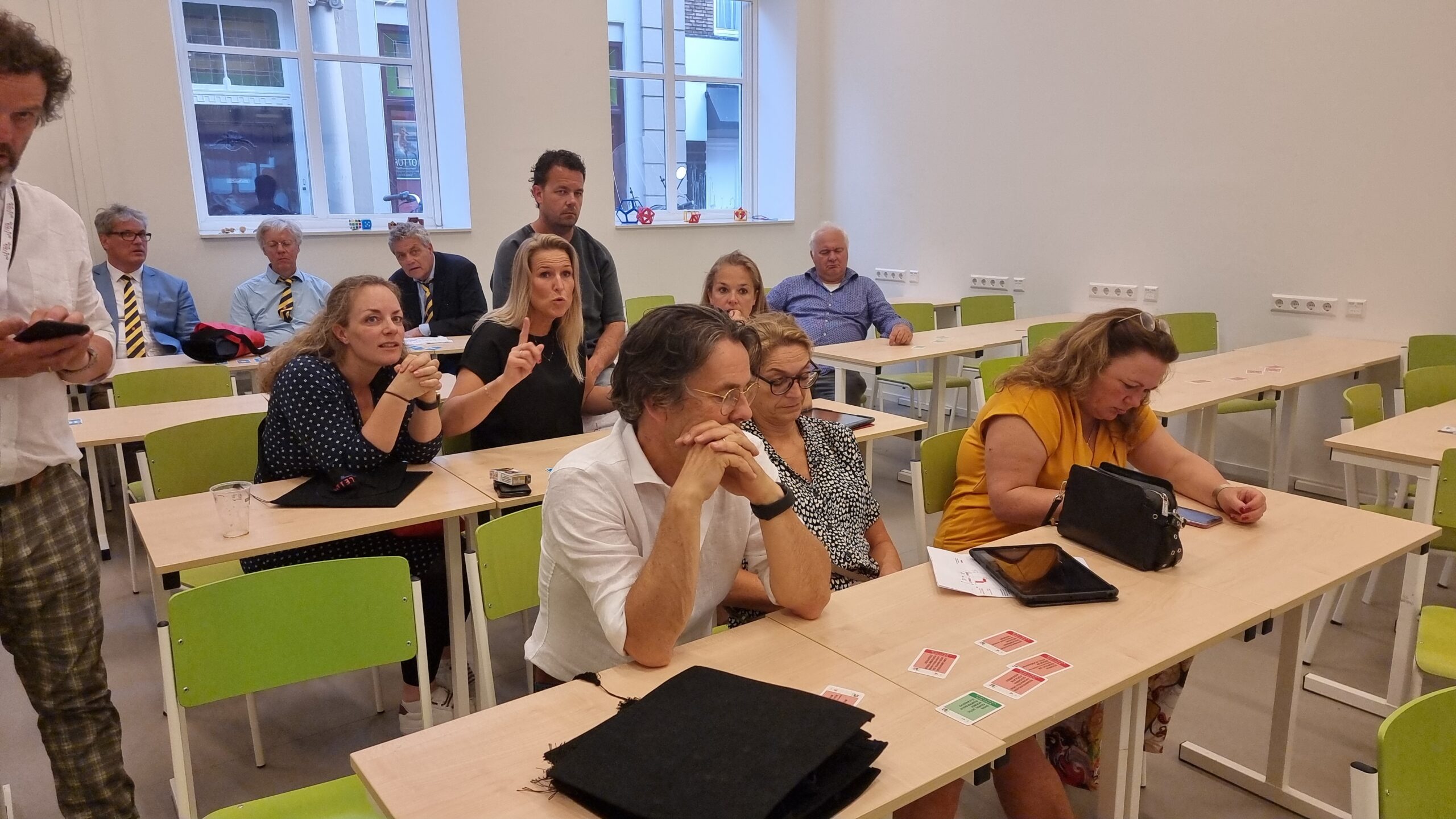 Aansluitend begon de quiz. Via een iPad kreeg elk team talloze vragen over Leiden voorgeschoteld die op een hele series locaties binnen Minerva, maar ook bij het naastgelegen mboRijnland-gebouw beantwoord moesten worden. Thema was dan ook ‘Terug naar School’. Het leverde een voor de hand liggende winnaar op. Het Bonaventura College Leiden met 189 punten. Tweede werd gastheer Minerva met 178 punten en Prima Management eindigde op plek 3 met 172 punten.