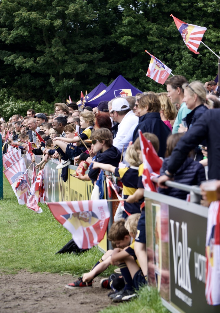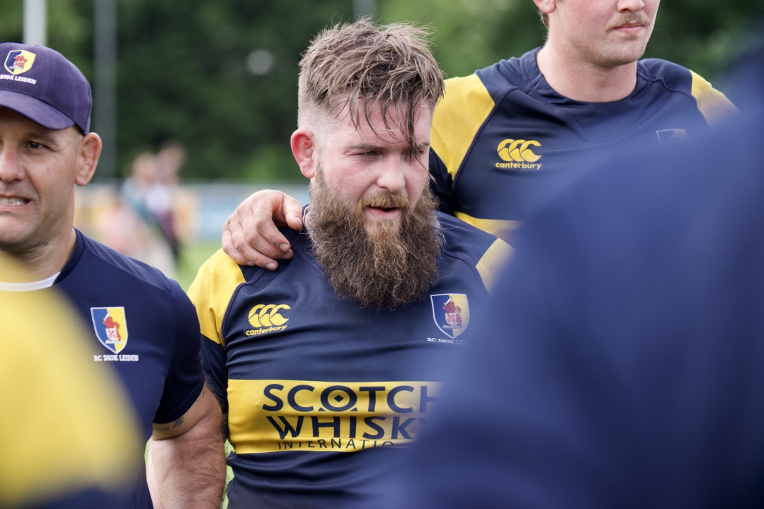DIOK vloog uit de startblokken en drukte al snel de eerste try. HRC liet zien zelf ook over een prima ploeg te beschikken en reageerde vrijwel direct ook met een try. Dat was het beeld van de eerste helft: DIOK scoorde, HRC haakte aan. En hoewel DIOK met lichte voorsprong de rust in ging, was het massaal toegestroomde publiek nog niet helemaal gerust op een goede afloop. Na rust liet DIOK echter zien dat er niets viel te halen in Leiden. HRC werd met 45-25 verslagen en het feest kon beginnen.