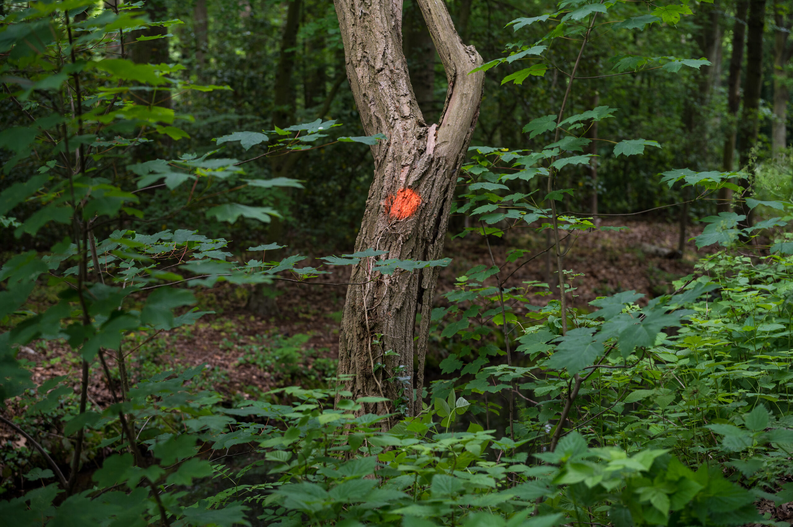 Stadspark De Leidse Hout moet worden uitgedund. Onder toeziend oog van de Vereniging van Vrienden van De Leidse Hout heeft de gemeente enkele tientallen bomen met een oranje stip gemarkeerd. Aan het eind van het jaar worden ze gekapt.