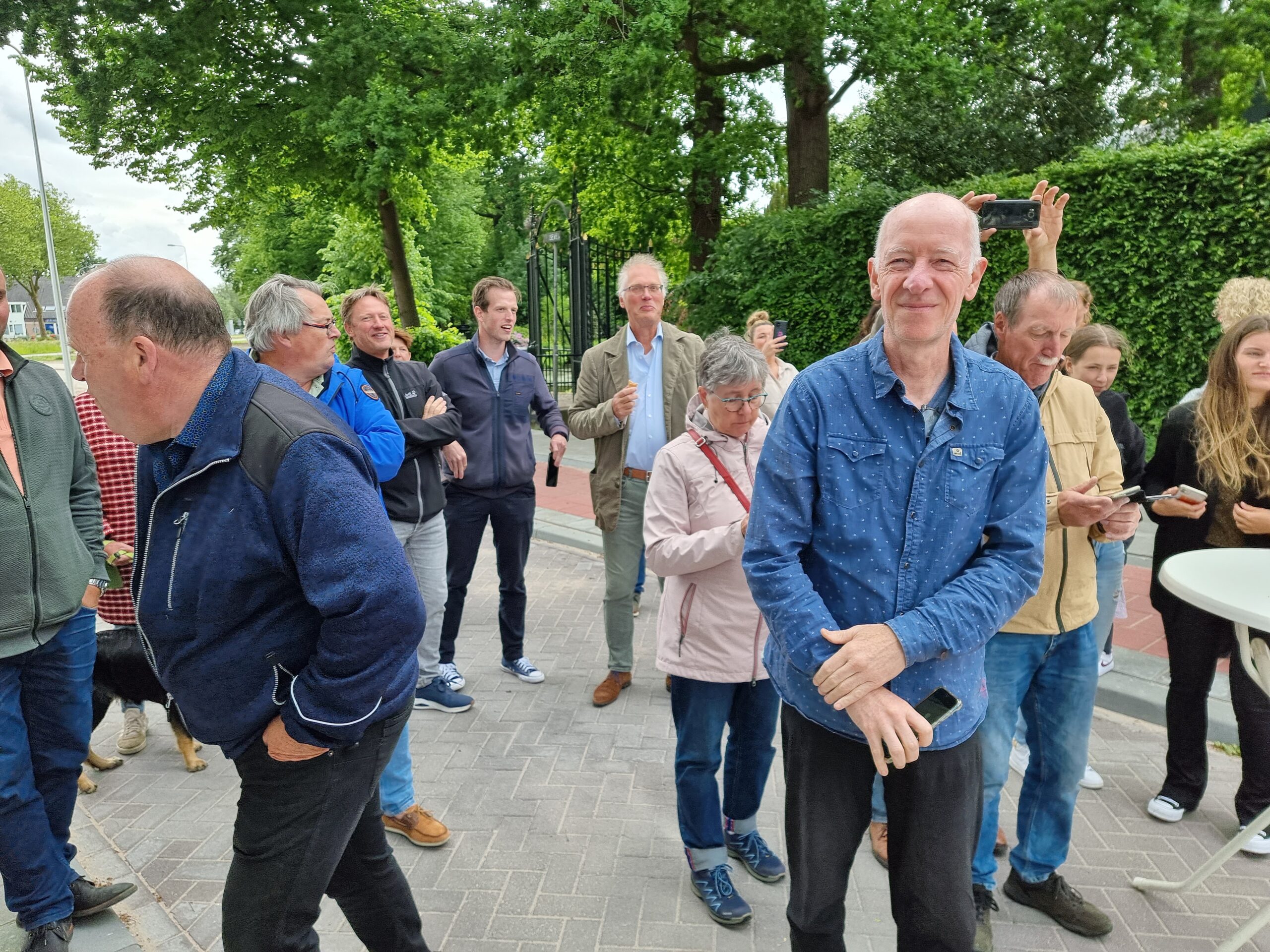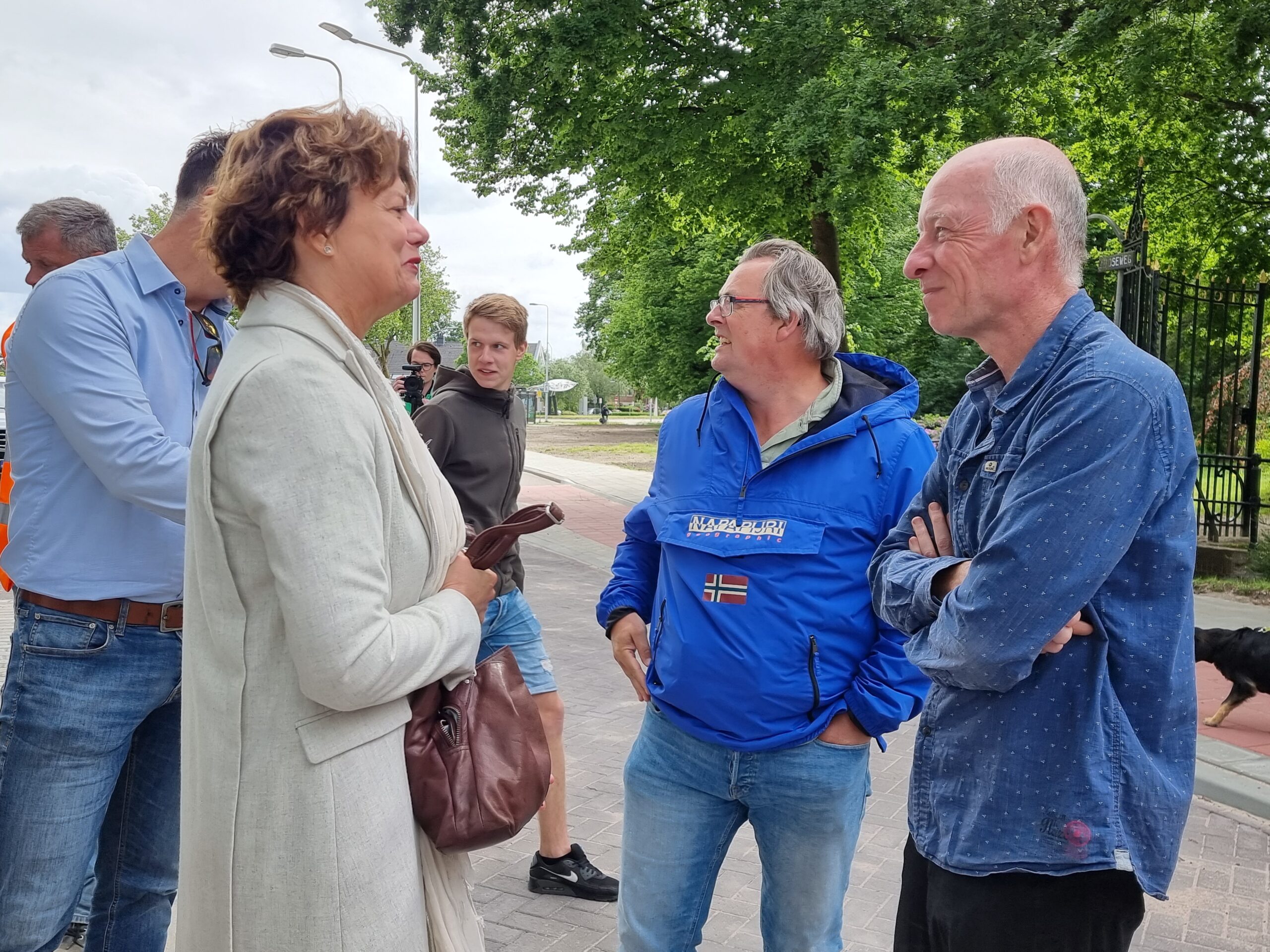 Chris de Waard sprak bij de officiële heropening van de weg met bewoner Hans Timmerman en wethouder Erika Spil.