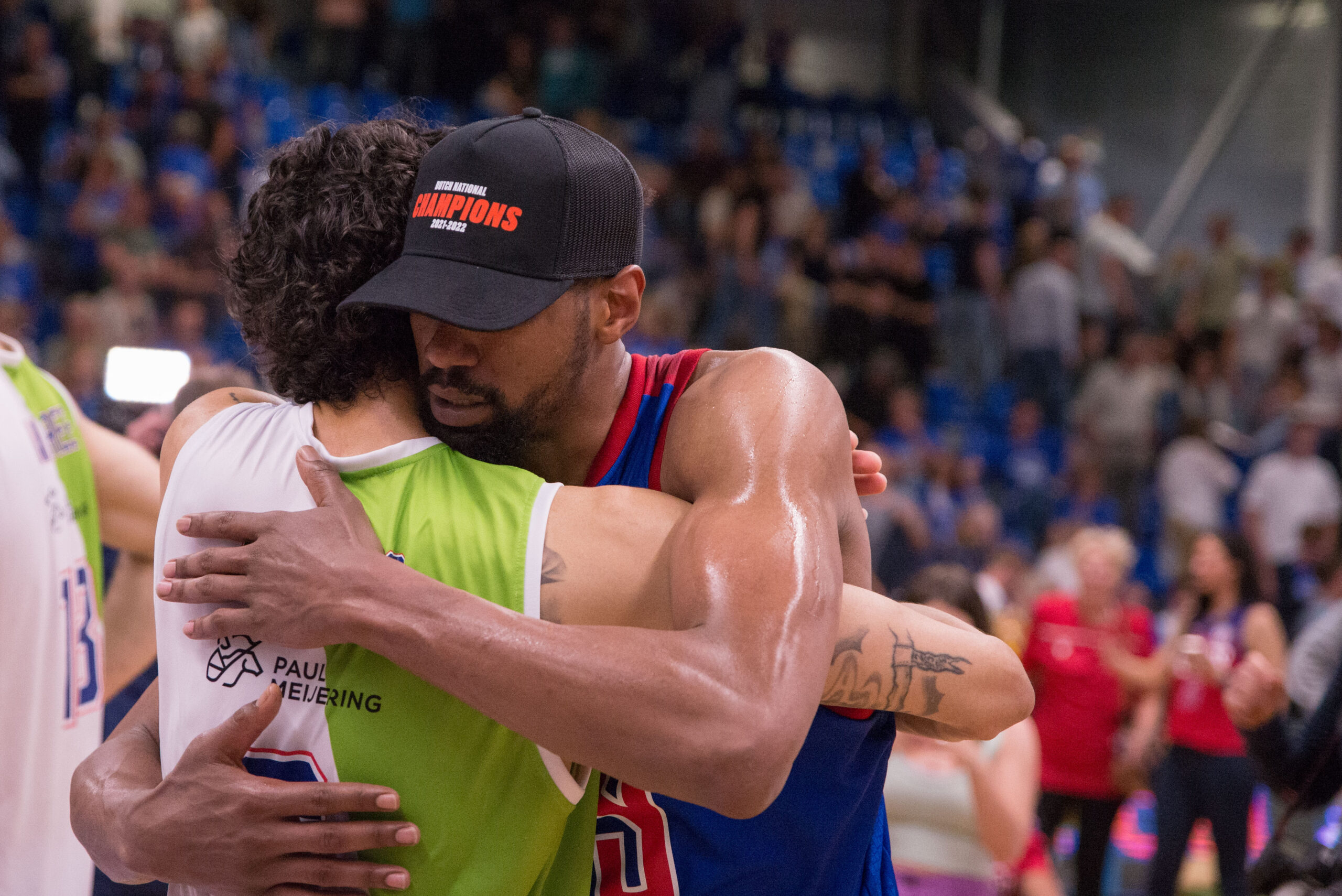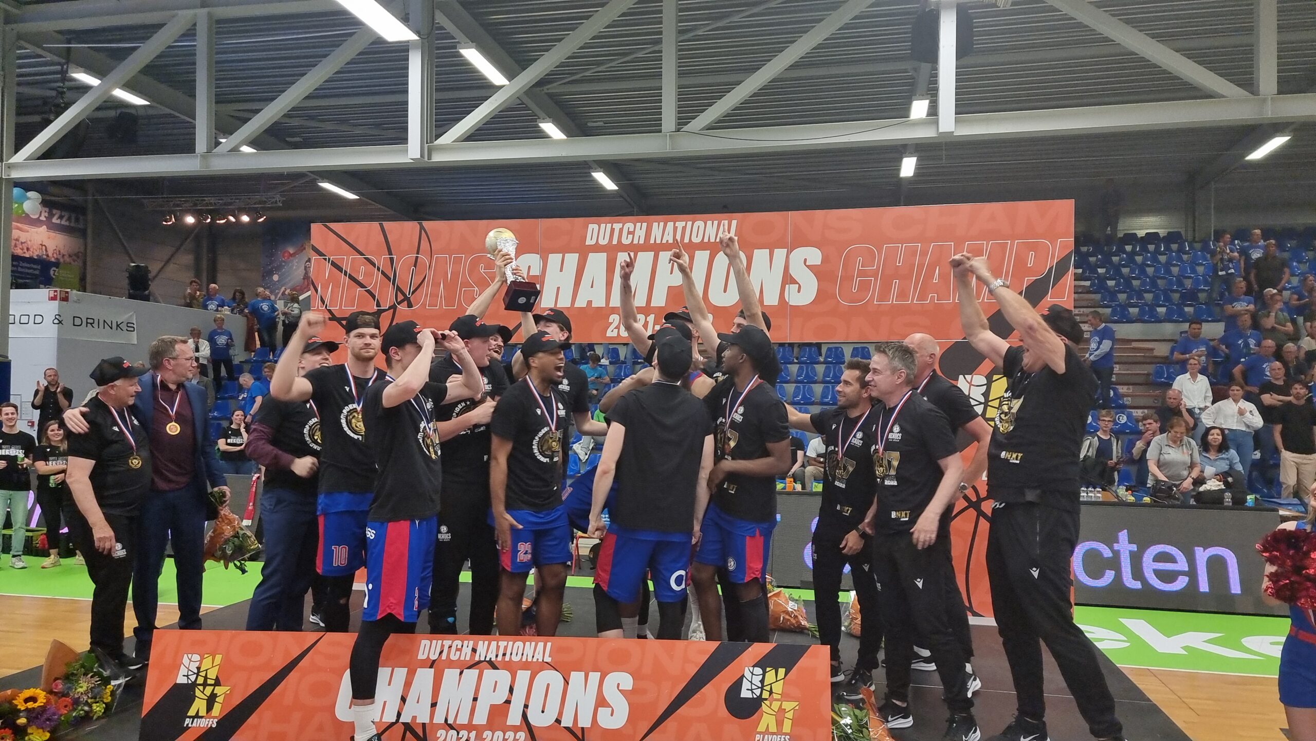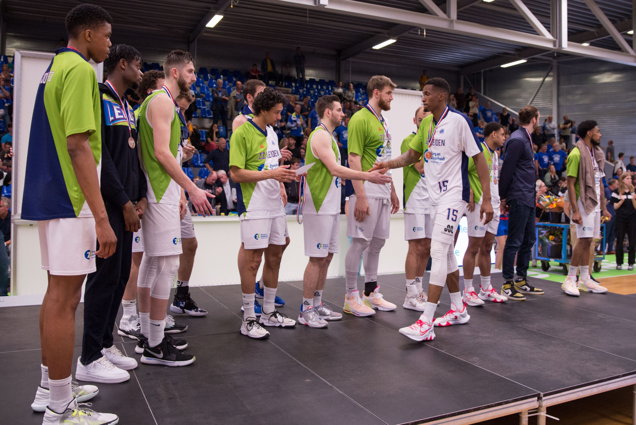Direct na het laatste fluitsignaal werd in de zaal een podium neergezet om de kampioenen te huldigen.
