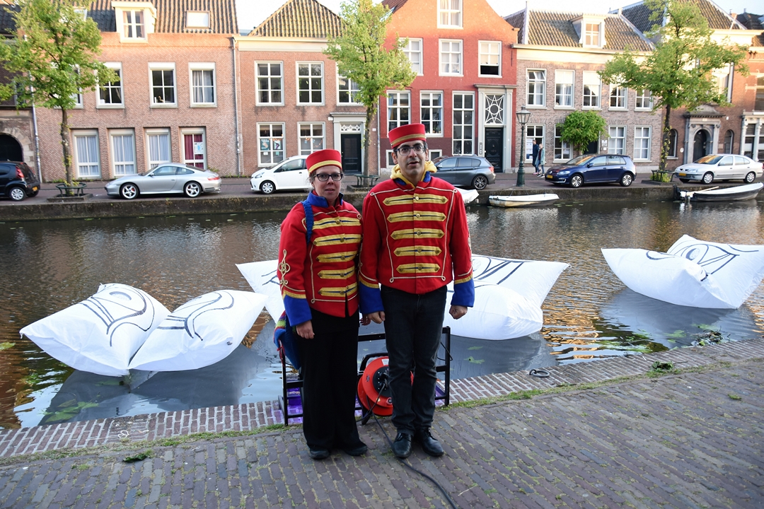 Bij Rijksmuseum van Oudheden bleven velen even ademloos staan kijken. Drie enorme Feniksen, uitgebeeld door acteurs op stelten, met een muzikant brachten een schitterend theaterspel in de grote hal.
