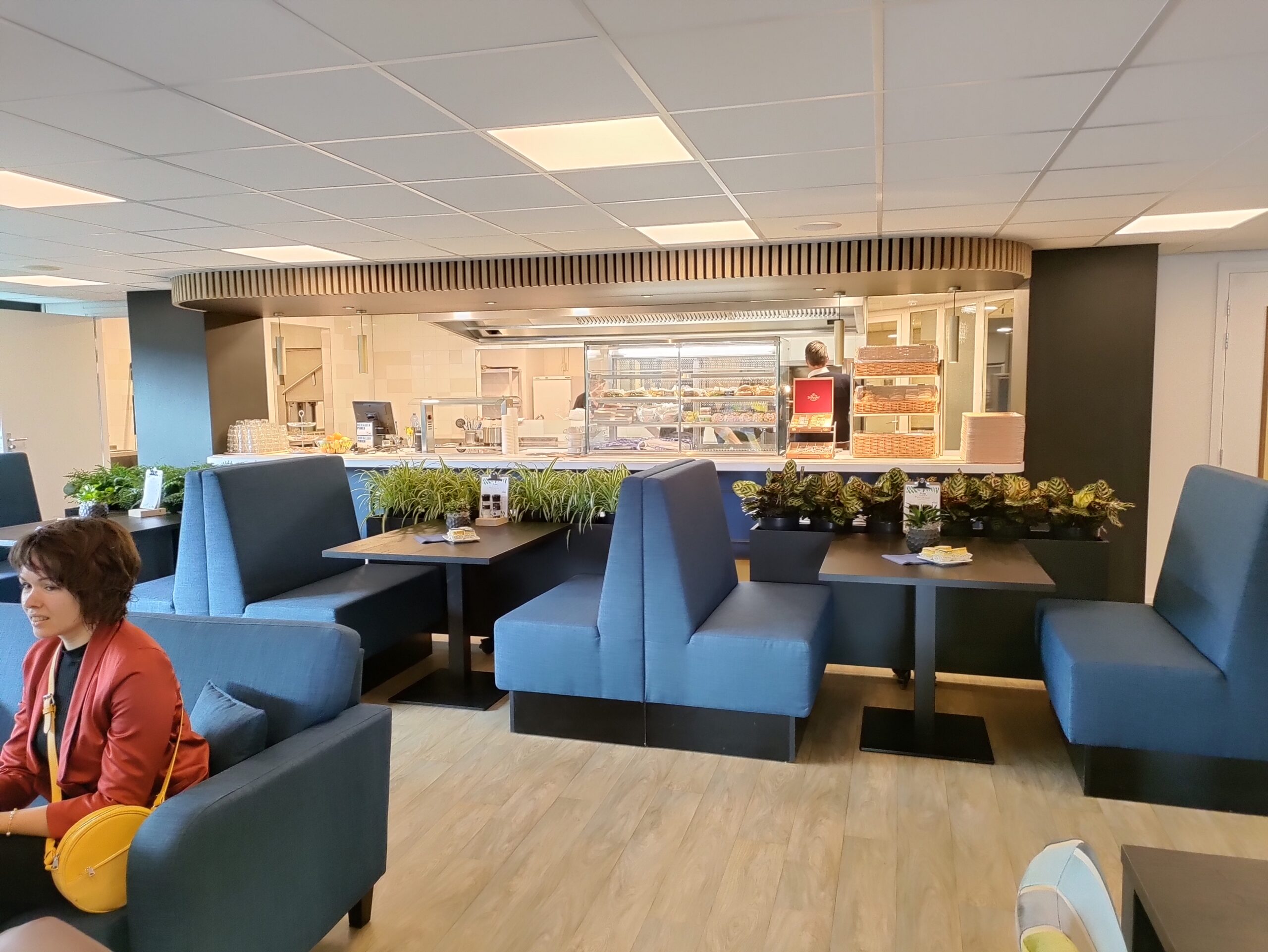 De ruimte is ingericht vanuit het oogpunt van welzijn. “Vroeger was er een restaurant waar een kantinesfeer heerste. Diezelfde ruimte oogt nu open. Er zijn veel hoekjes gecreëerd. En je kunt er ook meer krijgen dan een kopje koffie en een kroket. Zo worden er nu gezonde smoothies en humus aangeboden. Maar het belangrijkste is dat er geen ziekenhuissfeer heerst, maar gewoon gezelligheid”, legt Van Troost uit.