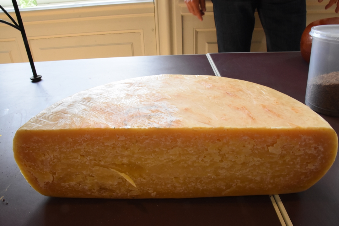 Museum de Lakenhal stond woensdagmiddag in het teken van Boeren-Leidsekaas. De rode kaas met de Leidse sleutels in de korst gedrukt wordt gemaakt van afgeroomde rauwe melk en op smaak gebracht met komijn. Hij wordt al eeuwenlang gemaakt in de dorpen rondom Leiden. Vroeger op honderden boerderijen, nu zijn het er nog een stuk of acht die deze traditie in leven houden.
