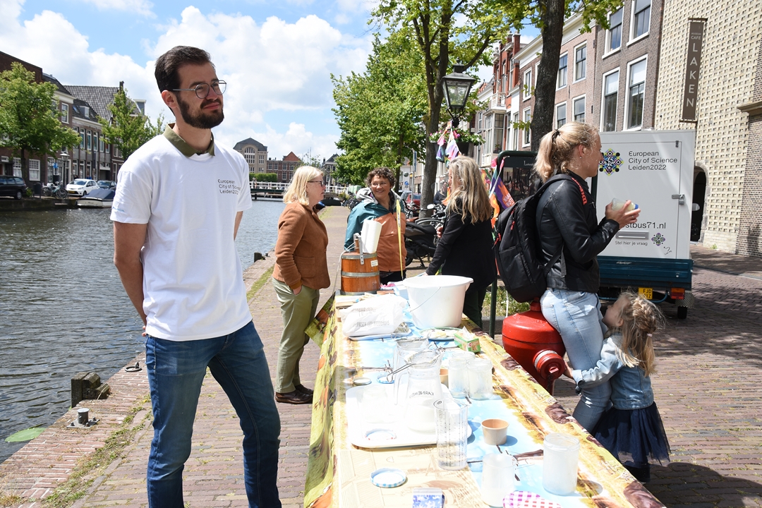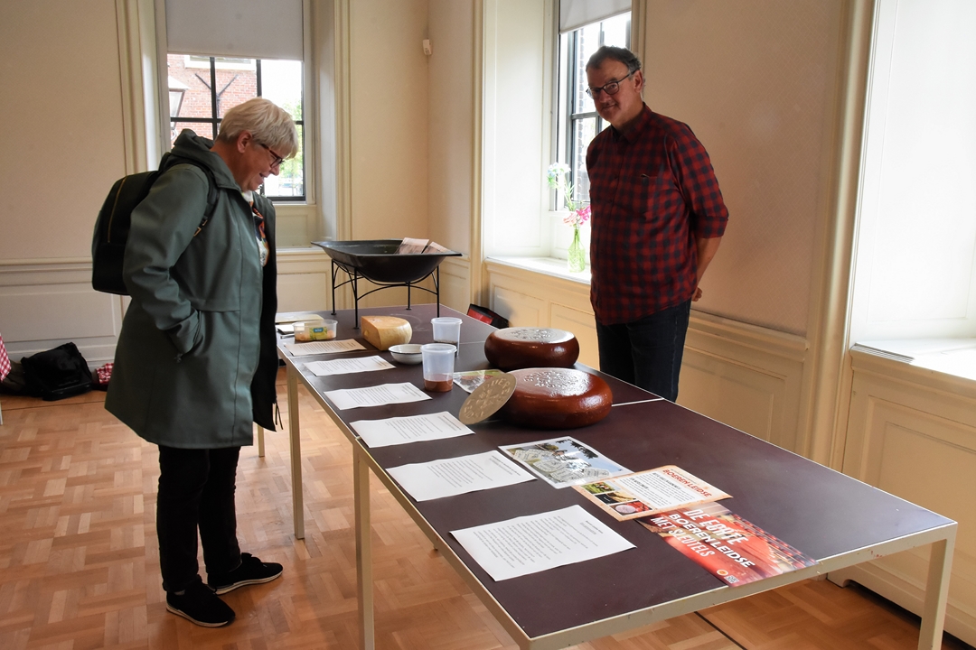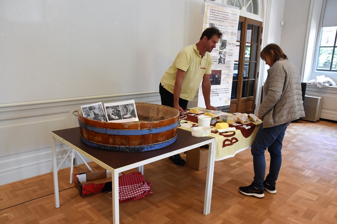 In het kader van het programma ‘Kennis door de Wijken’ dat dit jaar op veel plekken wordt georganiseerd in samenwerking met Leiden 2022 European City of Science, organiseerde de Vereniging Boeren-Leidse Kaasmakers in het museum ‘Boter, kaas en Leiden’. De kaasmakers kwamen vanuit de ommelanden naar de stad, om te vertellen over hun ambacht en over de historie van hun kaas. Ook werd er een mini-workshop boter maken gegeven.
