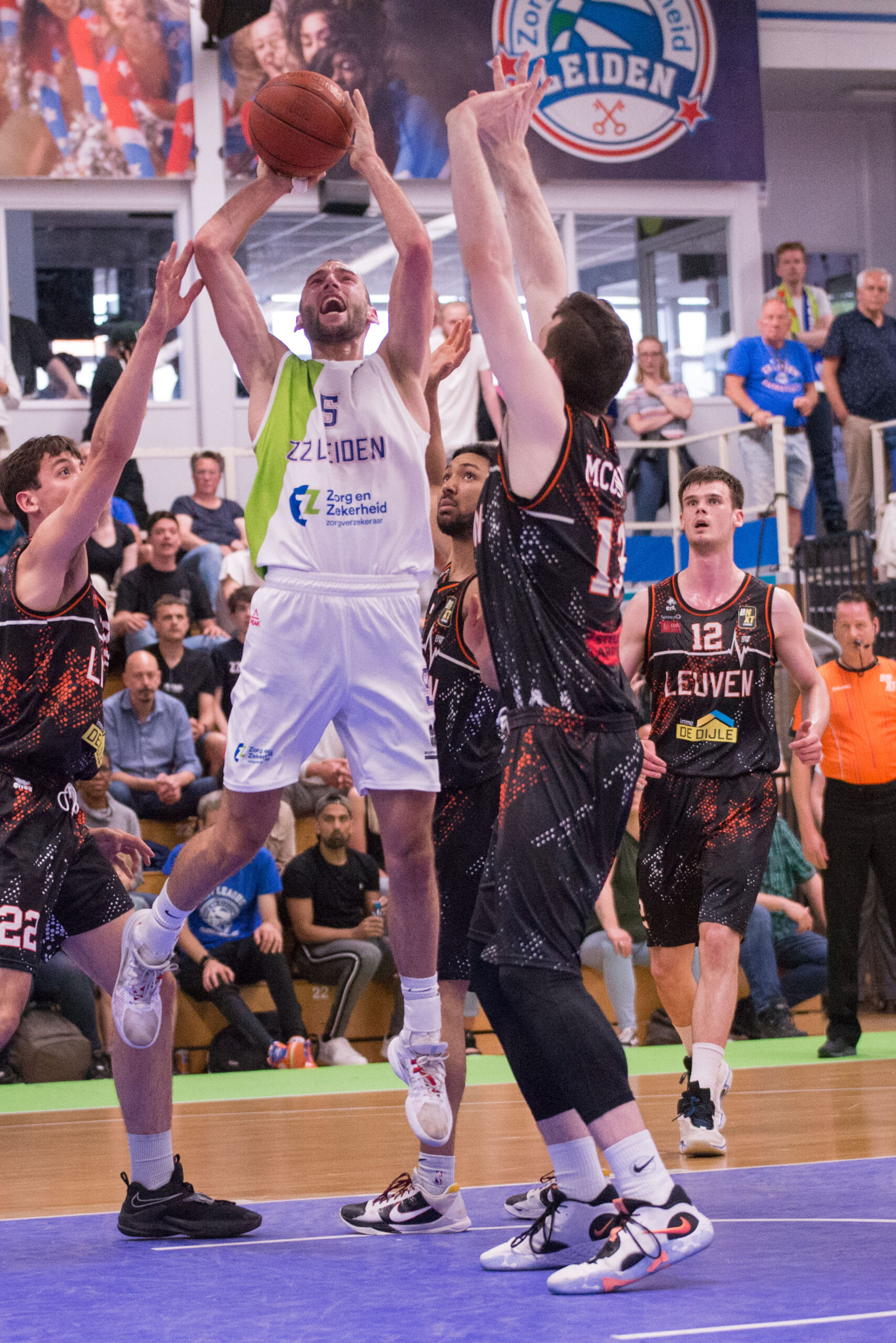 De basketballers van Zorg en Zekerheid Leiden hebben zich vrijdagavond geplaatst voor de halve finale van de BNXT play-offs. De woensdag opgelopen achterstand van 14 punten tegen Leuven Bears werd al in het eerste kwart weggewerkt.