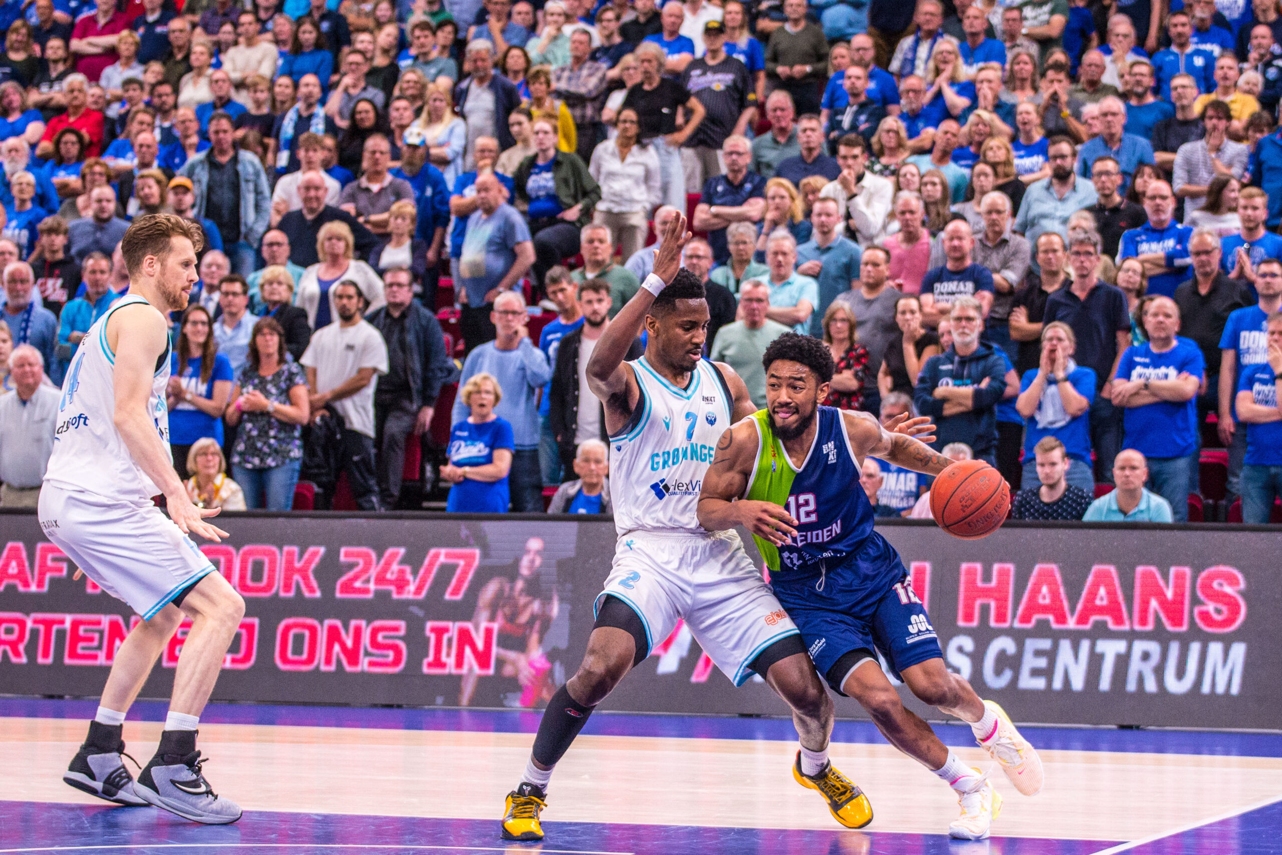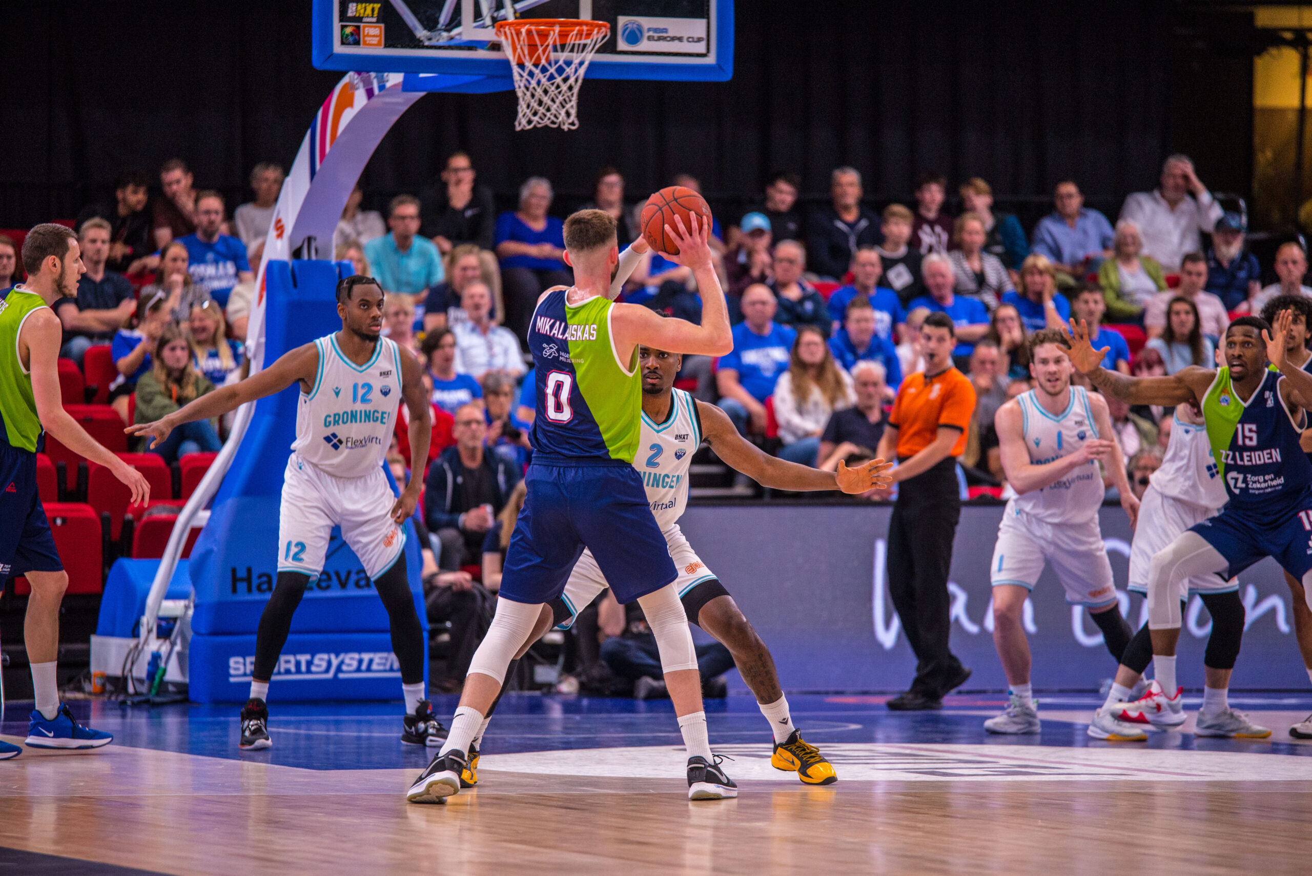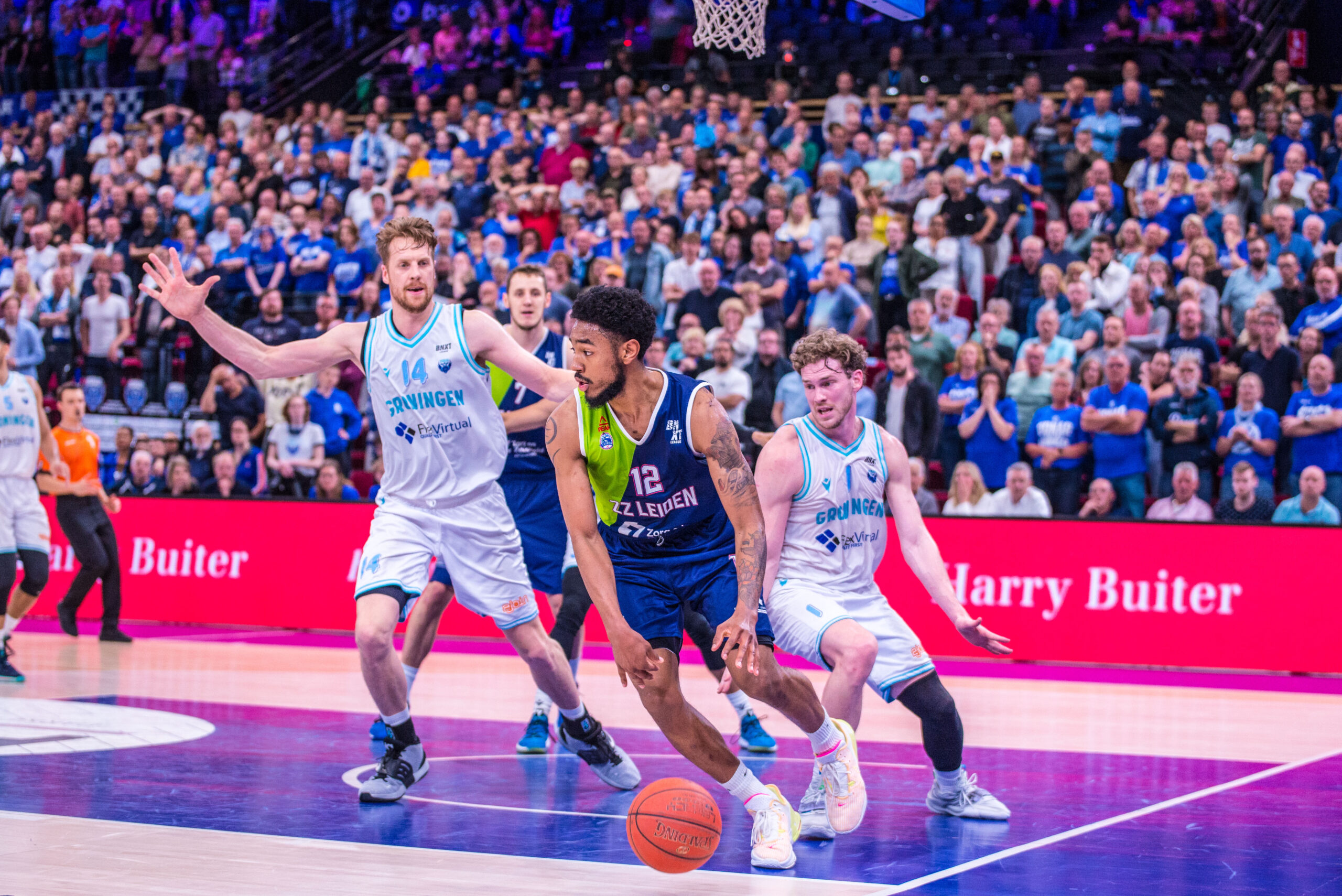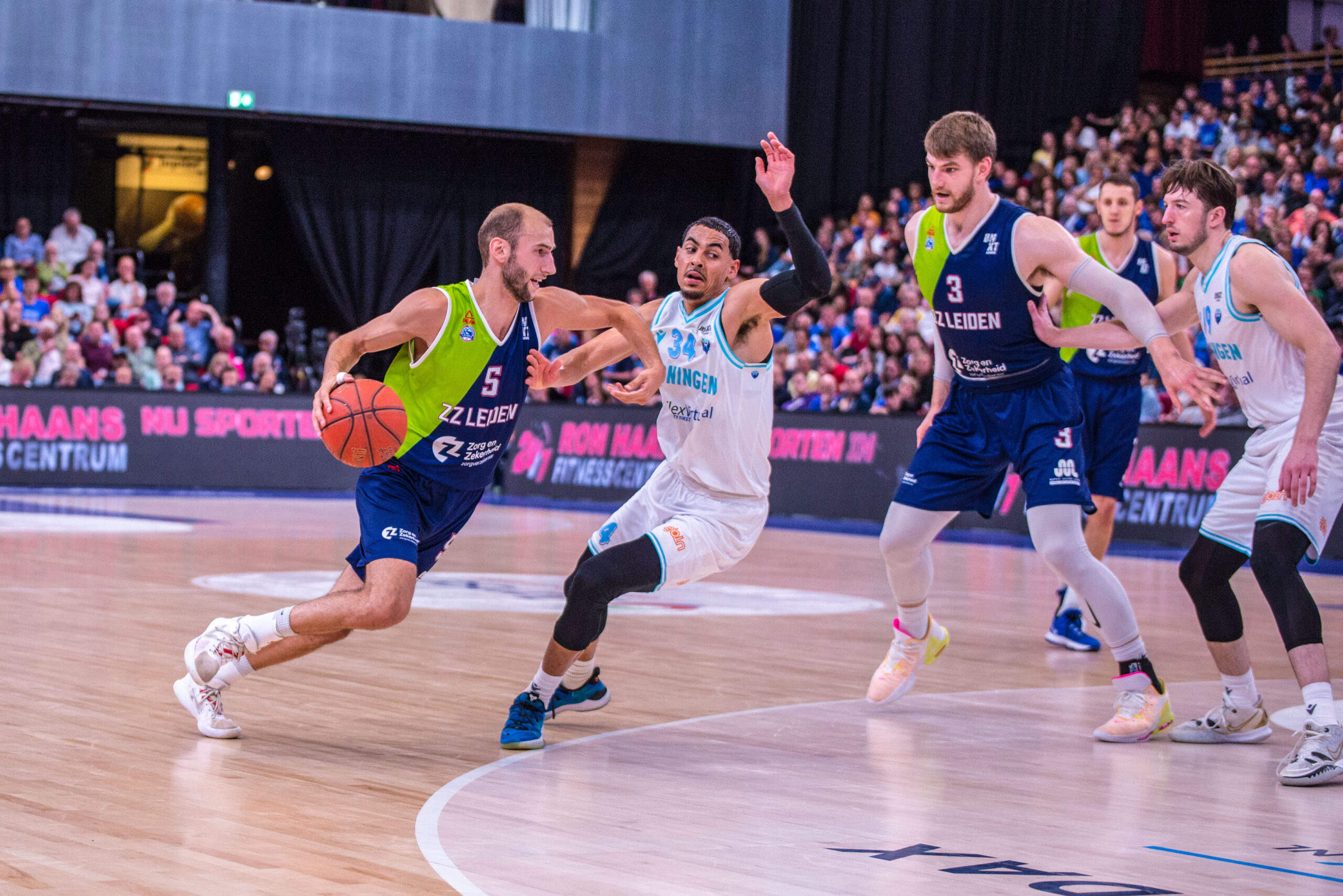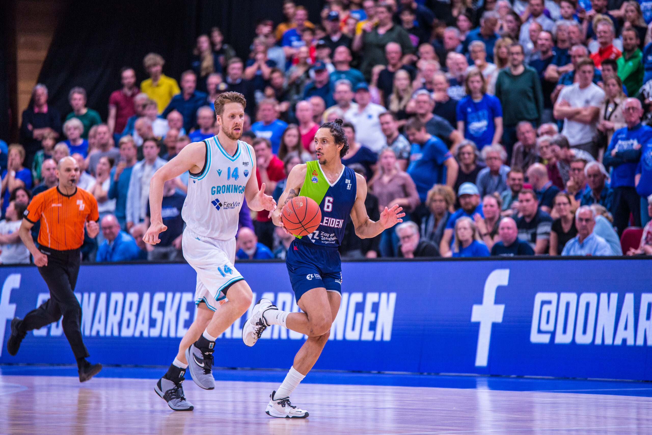 Zorg en Zekerheid Leiden Basketball heeft donderdagavond de eerste wedstrijd uit de finale van de BNXT play-offs tegen Donar uit Groningen met 72-75 gewonnen. De Leidse ploeg kwam voor rust een paar keer 10 punten achter, maar draaide de score in het derde kwart om. Komende zaterdag is de return in de Vijf Meihal en valt de beslissing in de spannende finale van de allereerste BNXT competitie. Die wedstrijd begint om 20.00 uur.