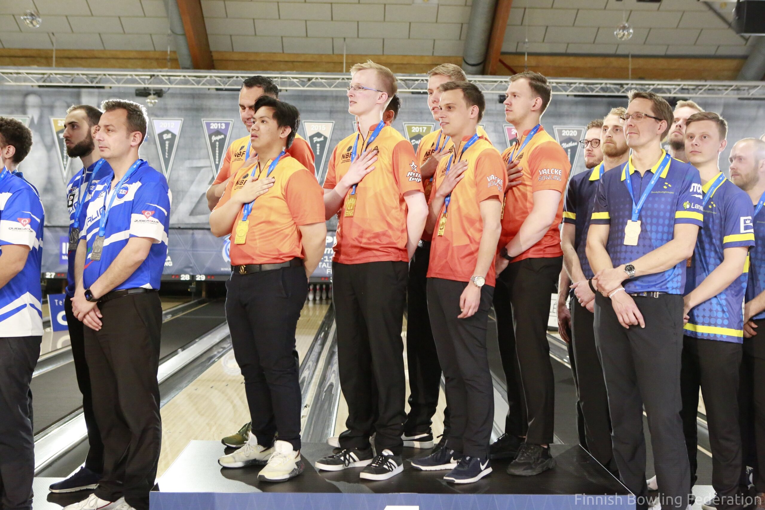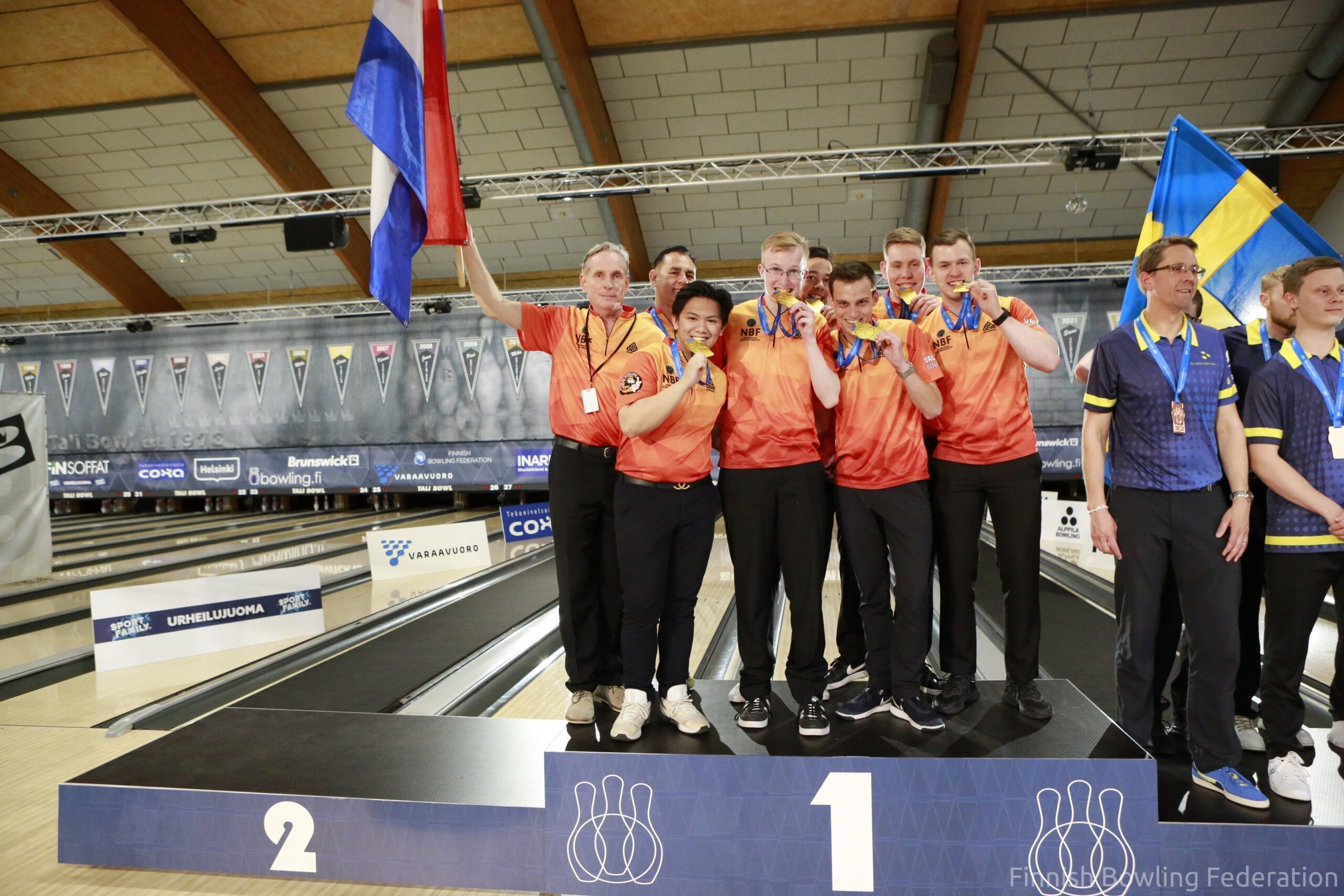 Het Nederlandse heren bowling team heeft vrijdag de gouden medaille op het Europees Kampioenschap (EK) in de wacht gesleept. In de finale wonnen de vijf mannen, onder wie Leidenaar Jord van Weeren, in de Finse hoofdstad Helsinki van favoriet Italië. De laatste keer dat een Nederlands team een medaille won tijdens een EK of WK was in 1997.