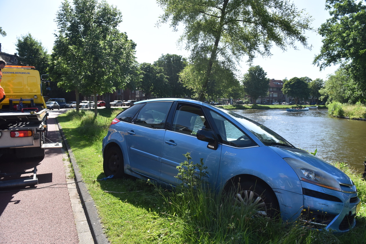 Doordat de auto een boom schampte, kwam deze tot stilstand en belandde de auto met daarin een stel op leeftijd niet in het water van de singel. De inzittenden kwamen uiteindelijk met de schrik vrij.