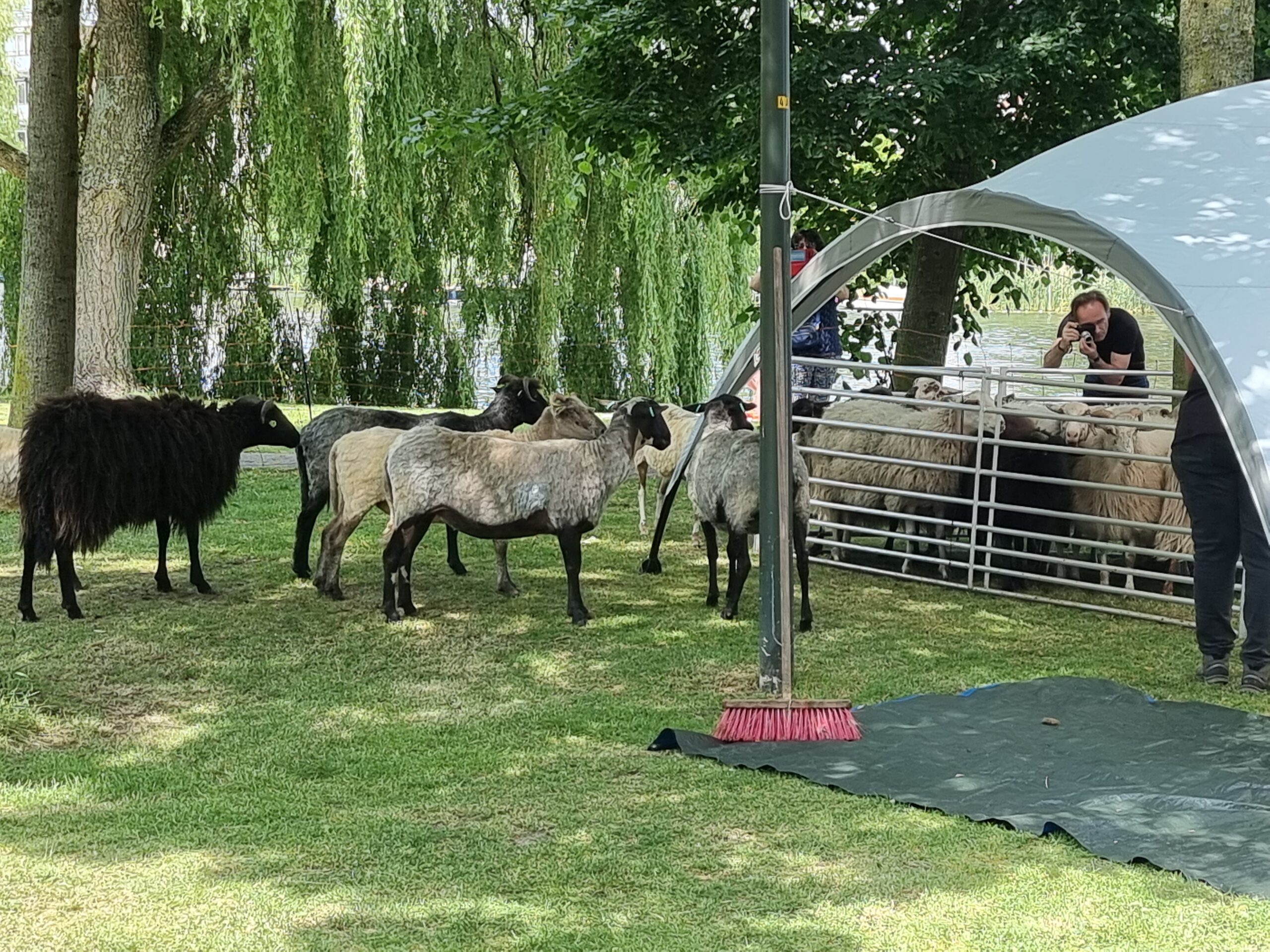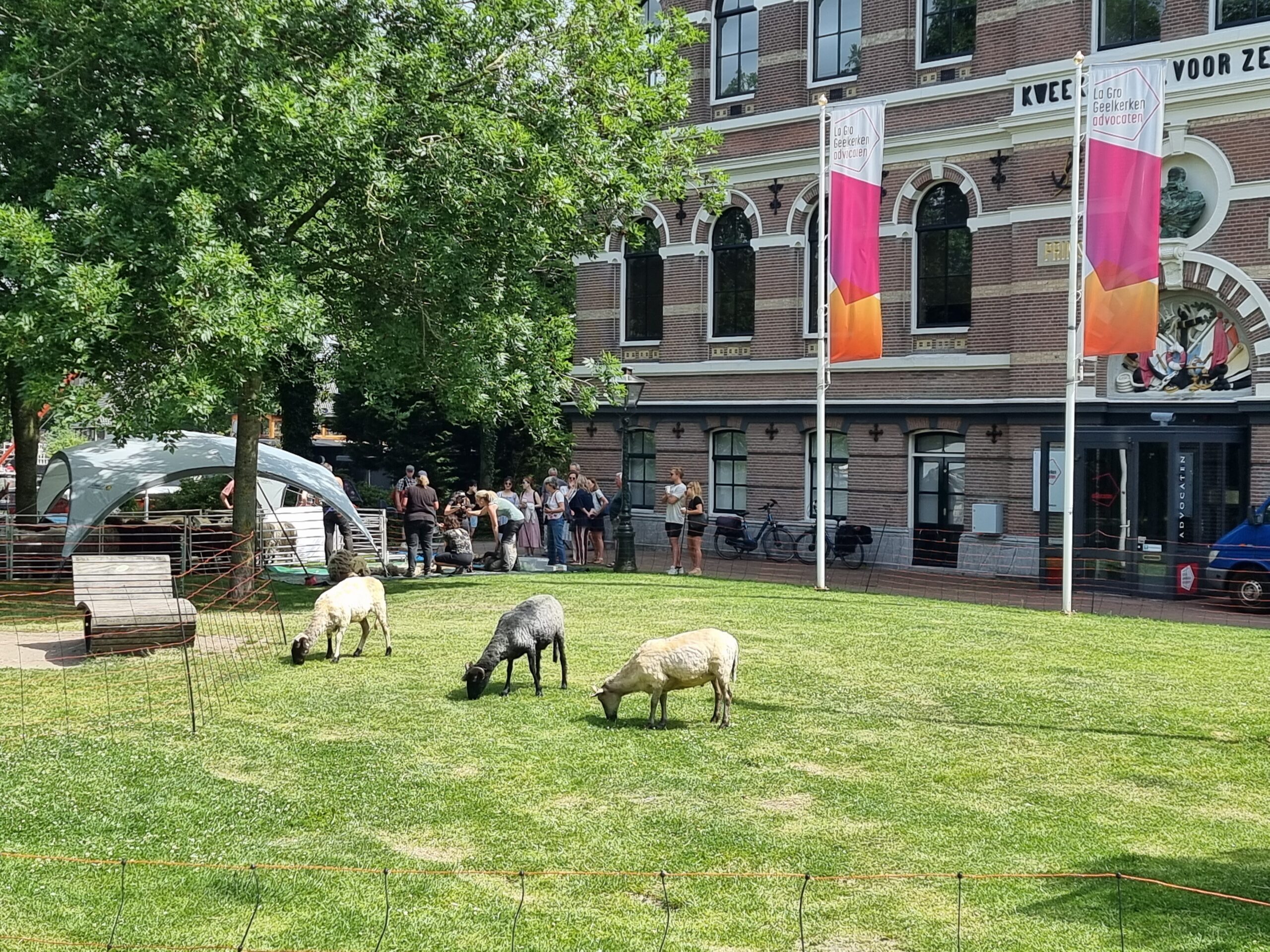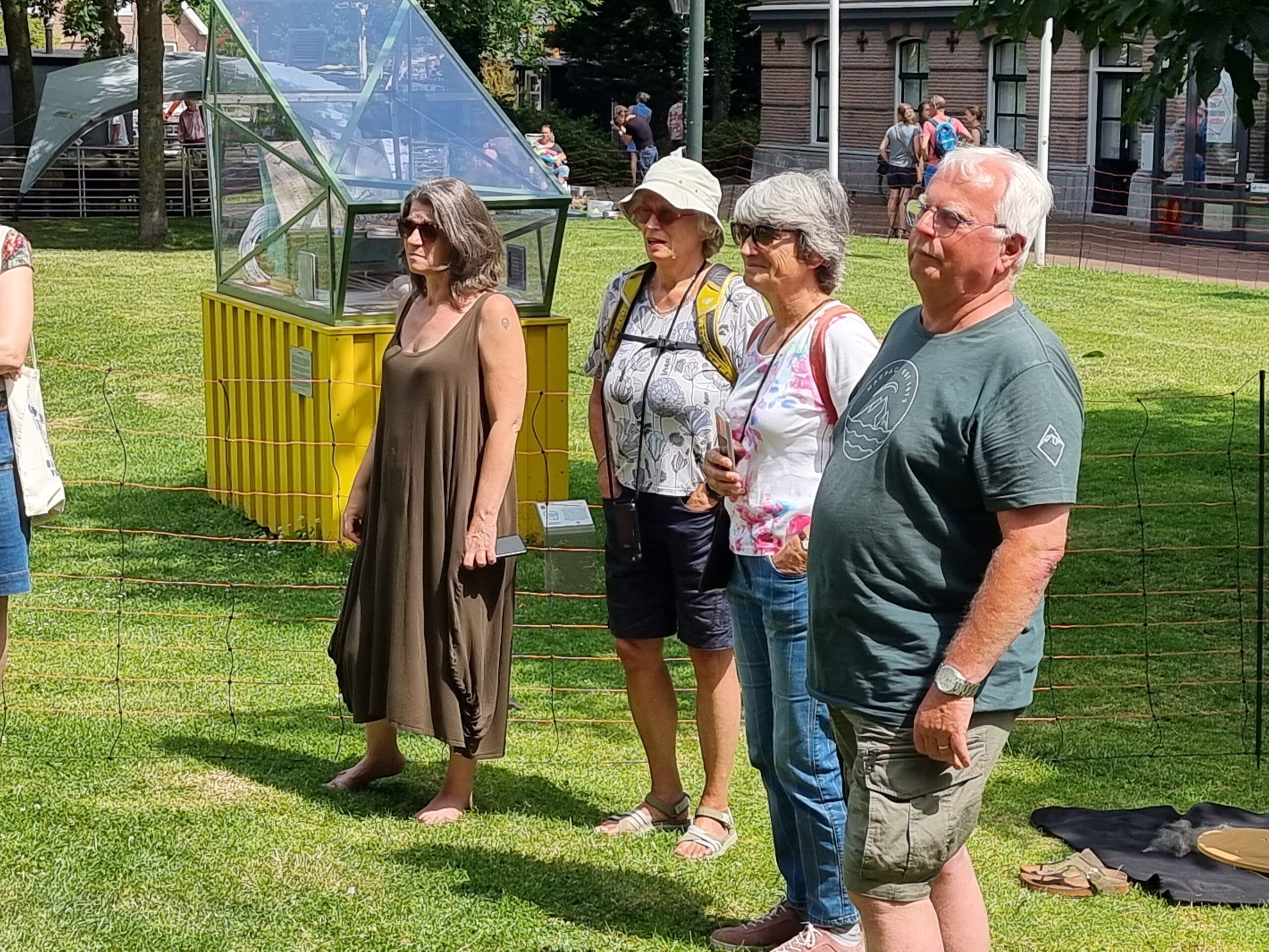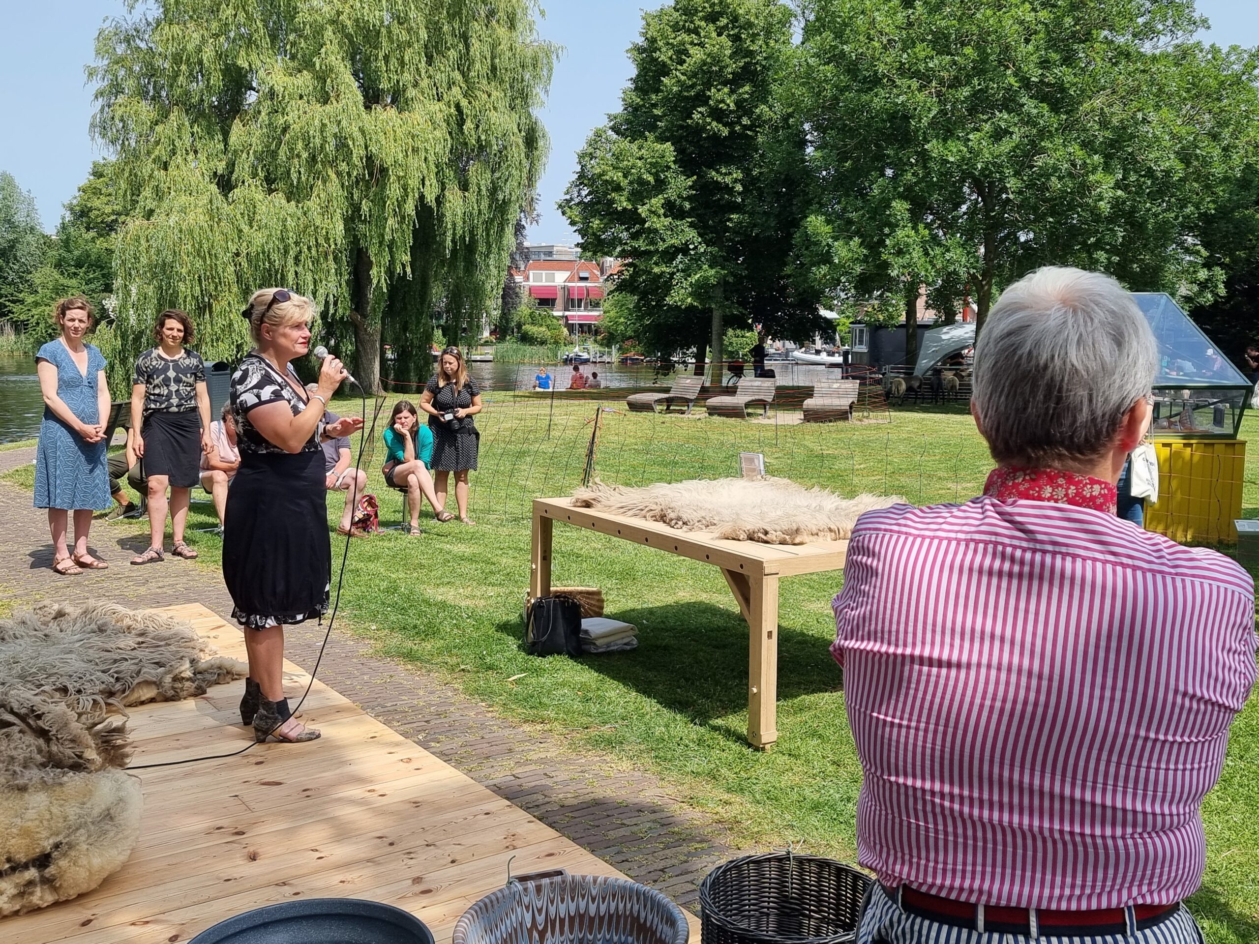 De start van het project werd gedaan door Yvonne van Delft die donderdag opnieuw is benoemd tot wethouder voor GroenLinks Leiden. Ze heeft de cultuurportefeuille gehouden en dus kon ze meteen aan de bak bij dit kunstproject. “Ik maakte me wel een beetje zorgen om de openingshandeling”, lacht ze. Daarmee uiteraard doelend op het doneren of stampen van urine. “Je weet het immers maar nooit, ze huren ons overal voor in.” Uiteindelijk viel het allemaal reuze mee en na een openingswoord kreeg ze een zakje net afgeschoren wol mee als aandenken.