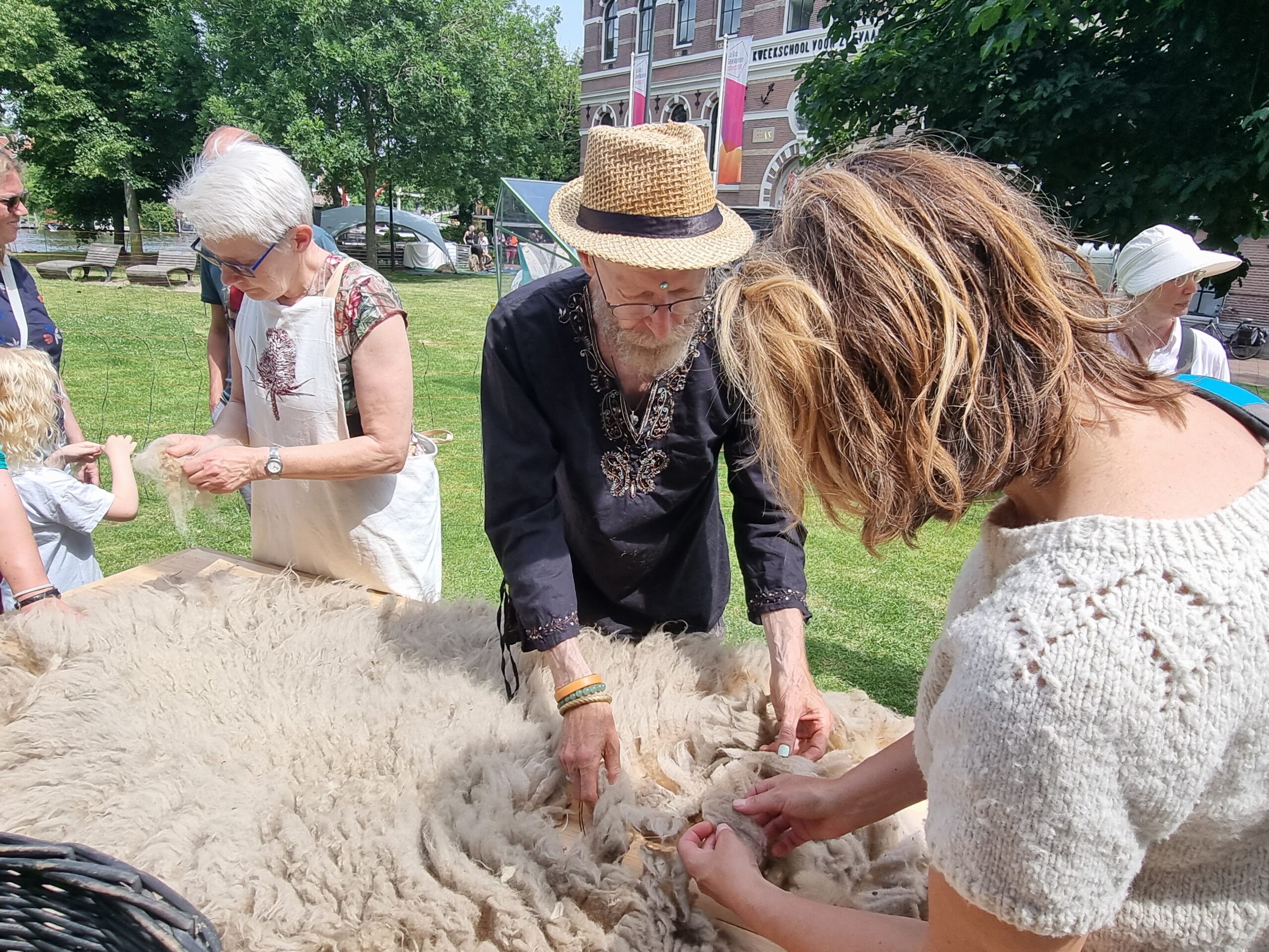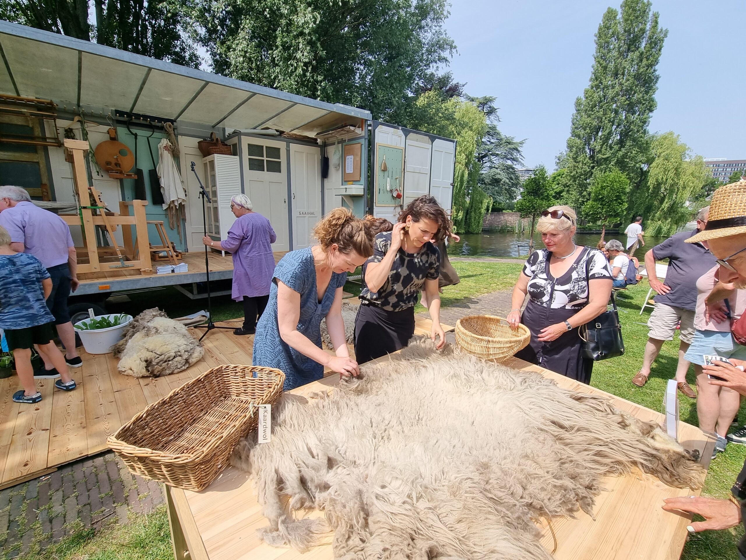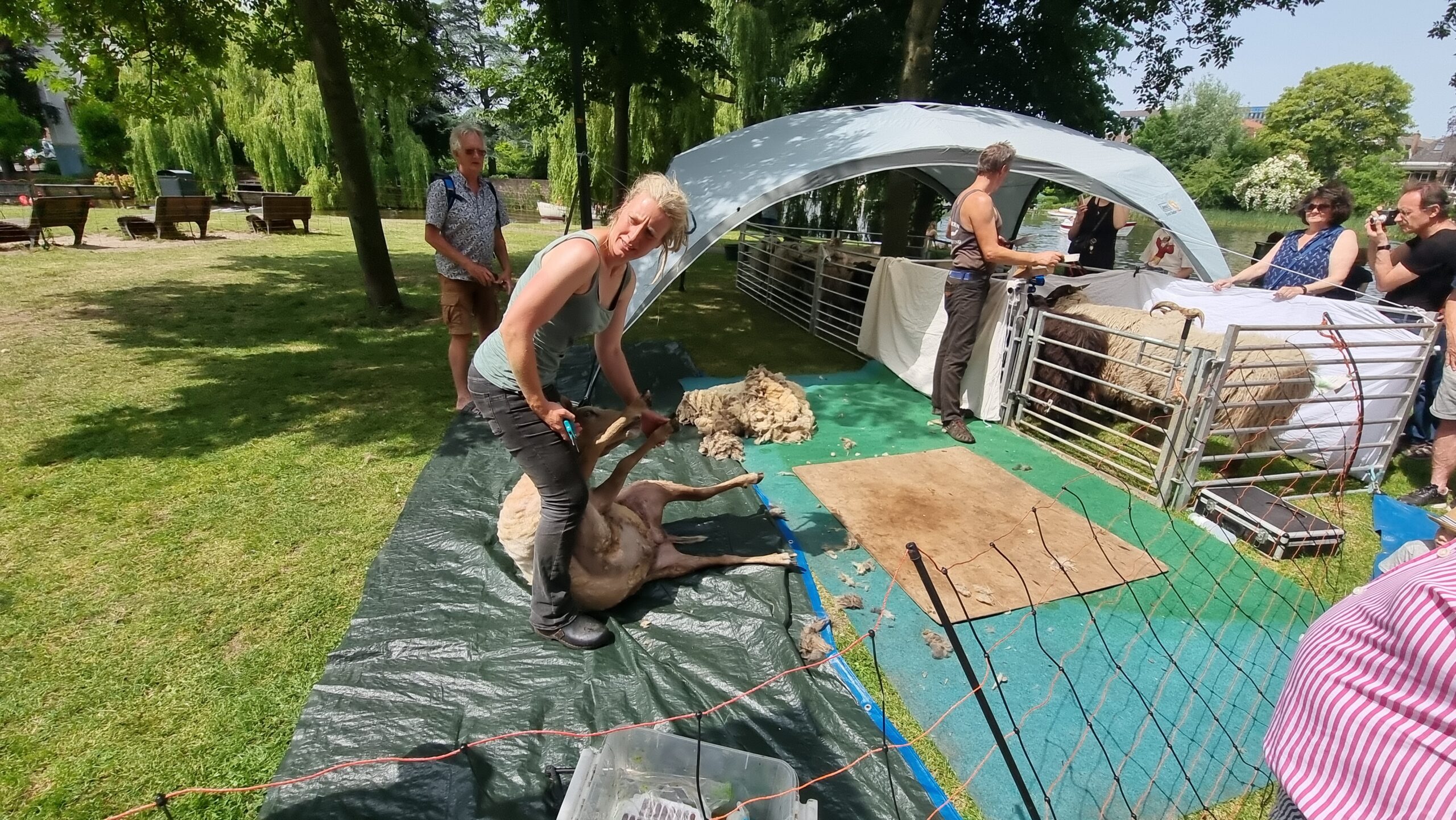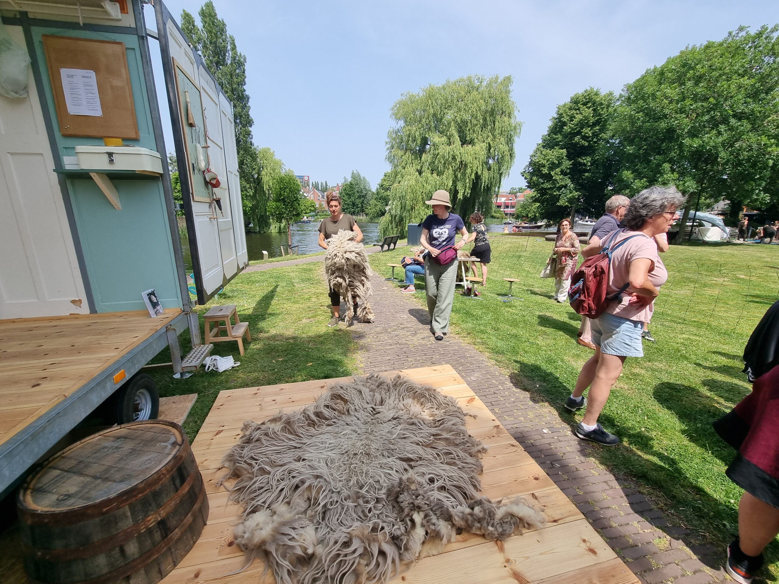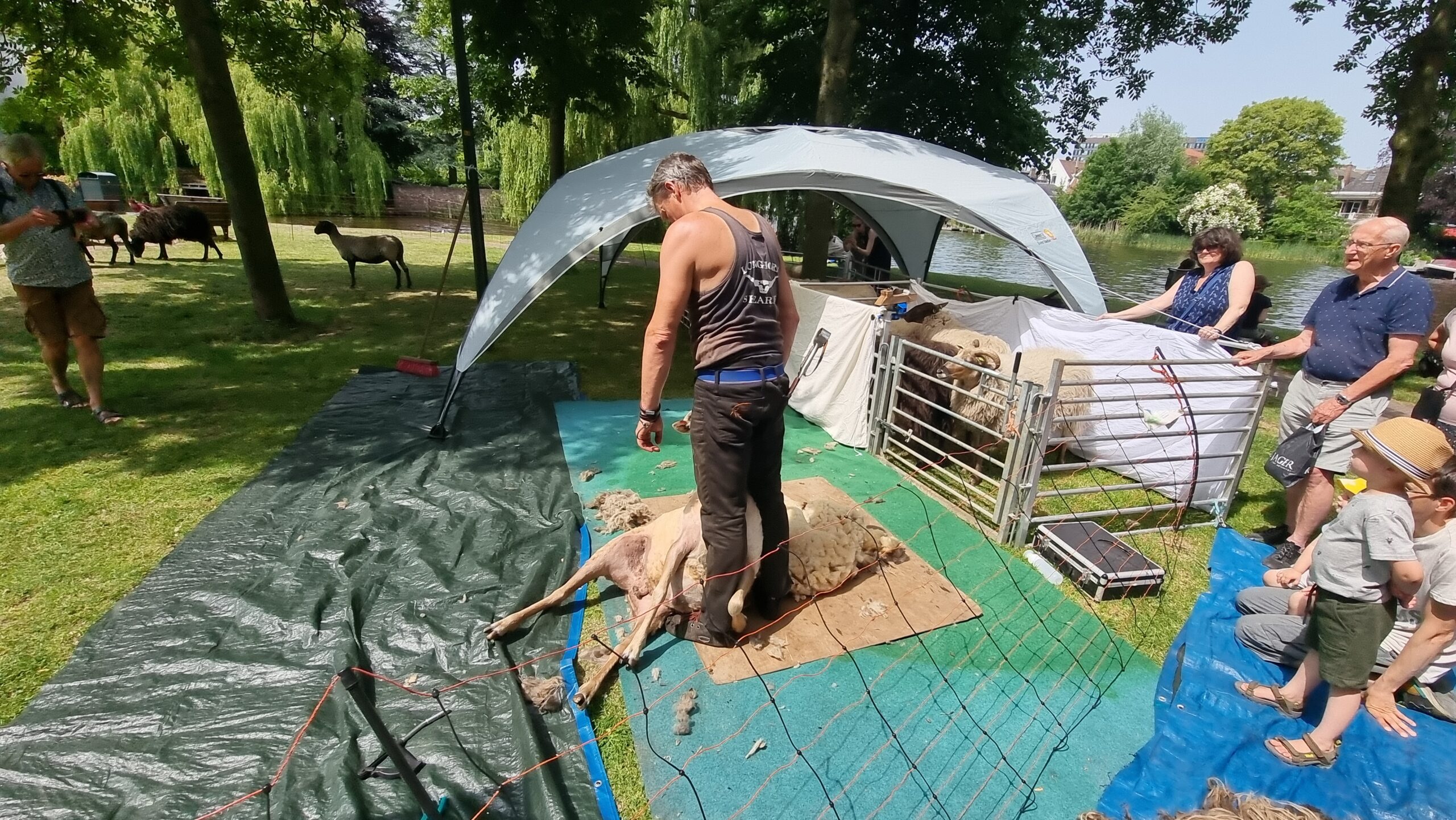 Het oorspronkelijke proces van Saai maken bestaat uit een aantal stappen. De eerste is het scheren van de schapen om zo aan de benodigde wol te komen. Dat gebeurde dit keer niet met een schapentondeuse maar, net als vroeger, met de hand. Vervolgens moet de wol worden gesorteerd, gewassen en geweven. Het wassen gebeurt tijdens het project in het water van de singel.