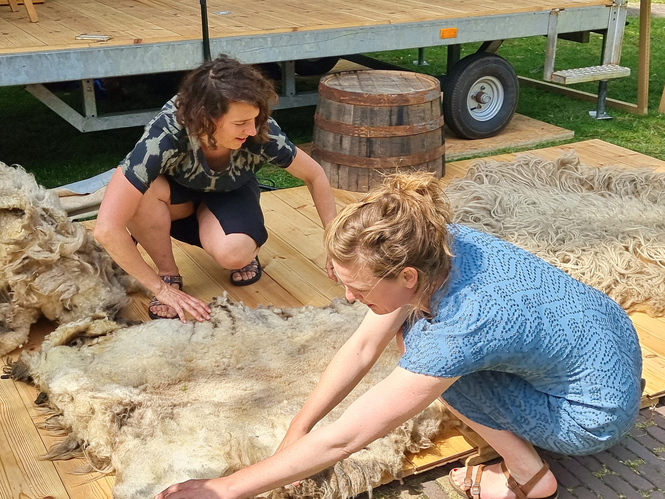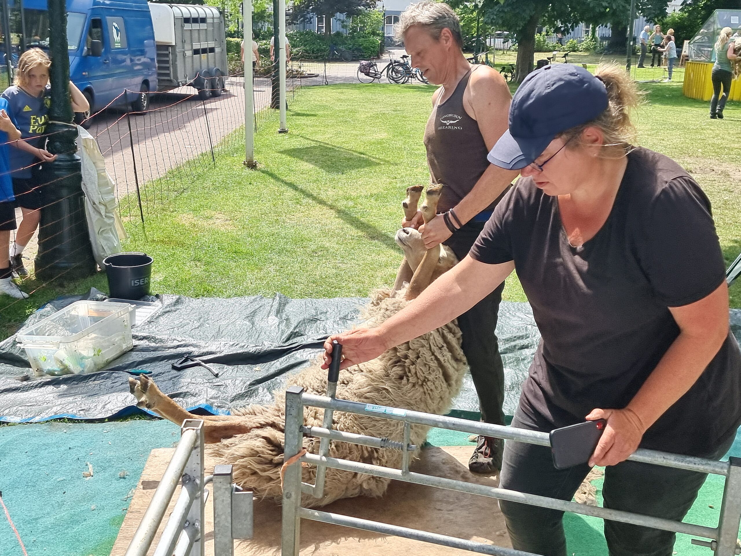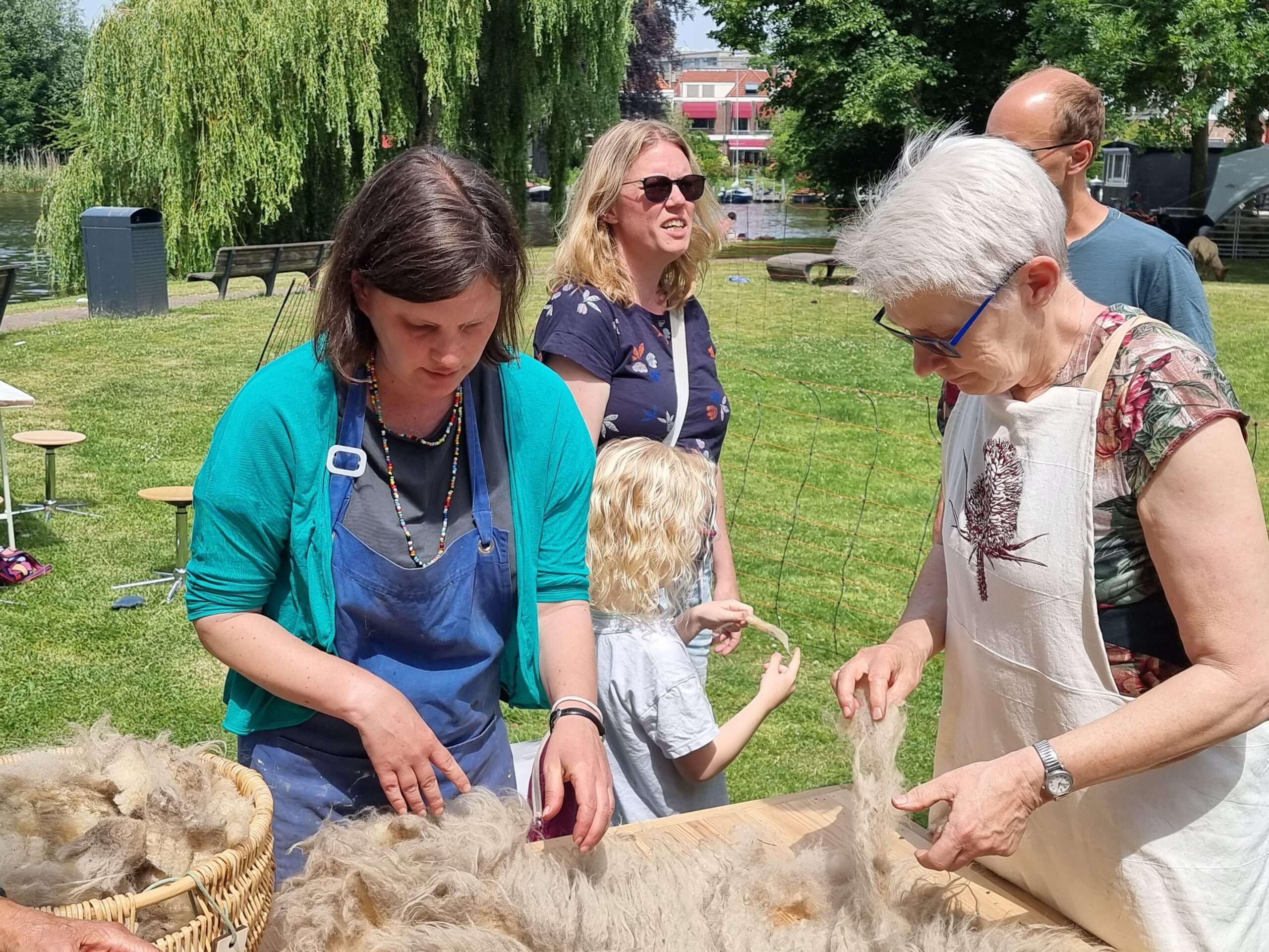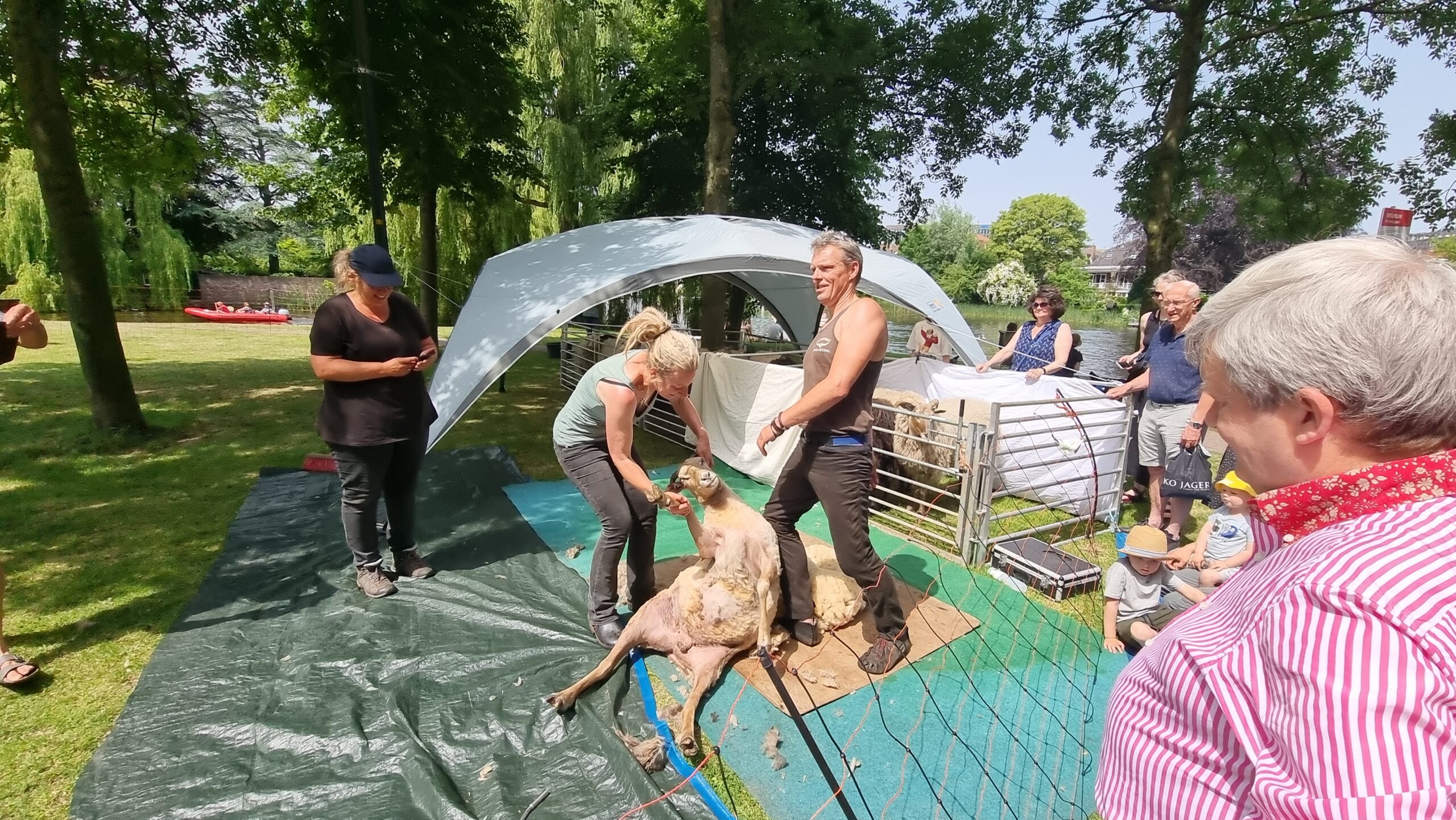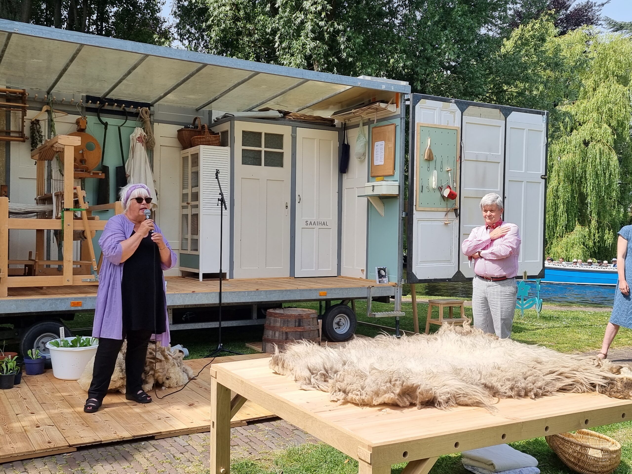 Het oorspronkelijke proces van Saai maken bestaat uit een aantal stappen. De eerste is het scheren van de schapen om zo aan de benodigde wol te komen. Dat gebeurde dit keer niet met een schapentondeuse maar, net als vroeger, met de hand. Vervolgens moet de wol worden gesorteerd, gewassen en geweven. Het wassen gebeurt tijdens het project in het water van de singel.