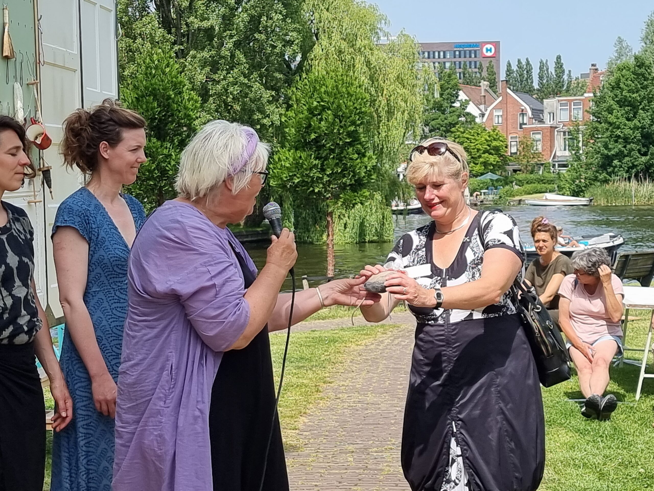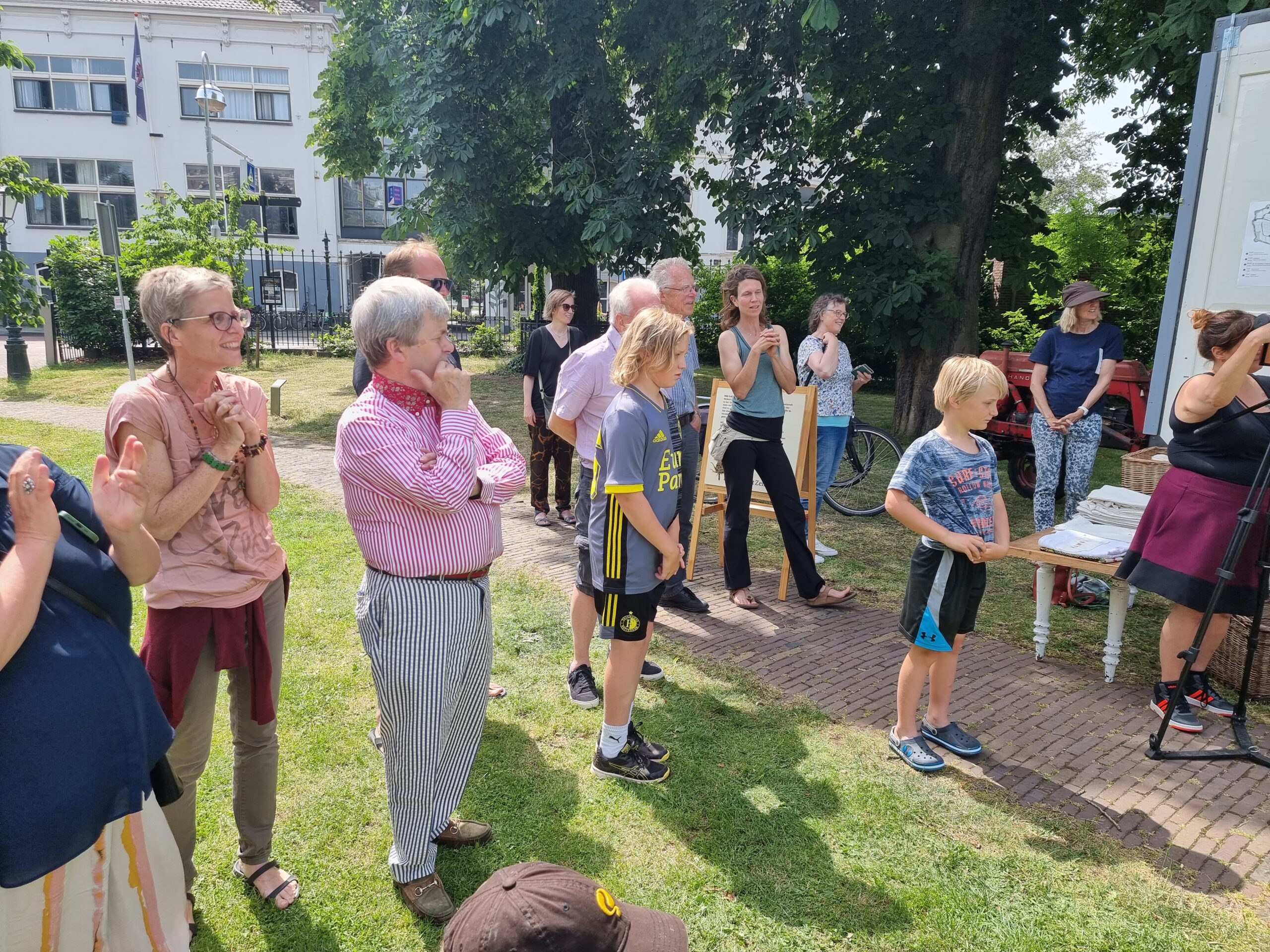 In het Rembrandtpark in Leiden is zaterdagmiddag het kunstproject ‘Van Kade tot Zelfkant‘ van start gegaan. Het is het zesde beeld van de expositie ‘Welkom in Leiden’ die sinds 2020 in het Singelpark is te zien. Die vijf beelden worden nu aangevuld met wat de kunstenaars Sara Vrugt en Nina Mathijsen omschrijven als ‘participatiekunst’.