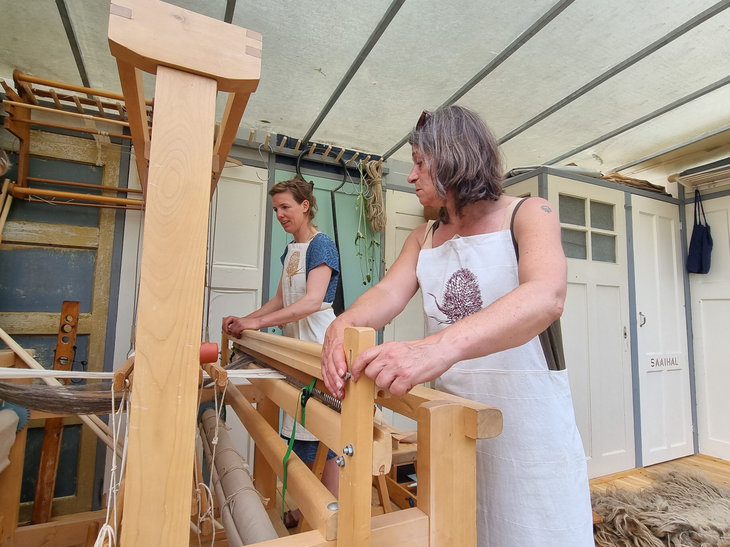 Om Saai te kunnen maken, is naast wol, ook warm water, boter en verrotte urine nodig. Die urine werd vroeger met de voeten in de wol gestampt. Dat heet ‘vollen’. Dat werd gedaan door zogenoemde ‘vollers’. Daarbij komt ammoniak vrij en daardoor wordt de wol steviger. Mensen die mee willen helpen aan het project, kunnen meteen ook hun urine doneren. “Je hoeft dan niet met een potje plas langs te komen. zomermaanden reizen wij met ons mobiele atelier het Singelpark rond. Mensen die meehelpen of komen kijken kunnen bij ons naar het toilet. de urine wordt daar opgevangen”, vertelt Sara Vrugt.