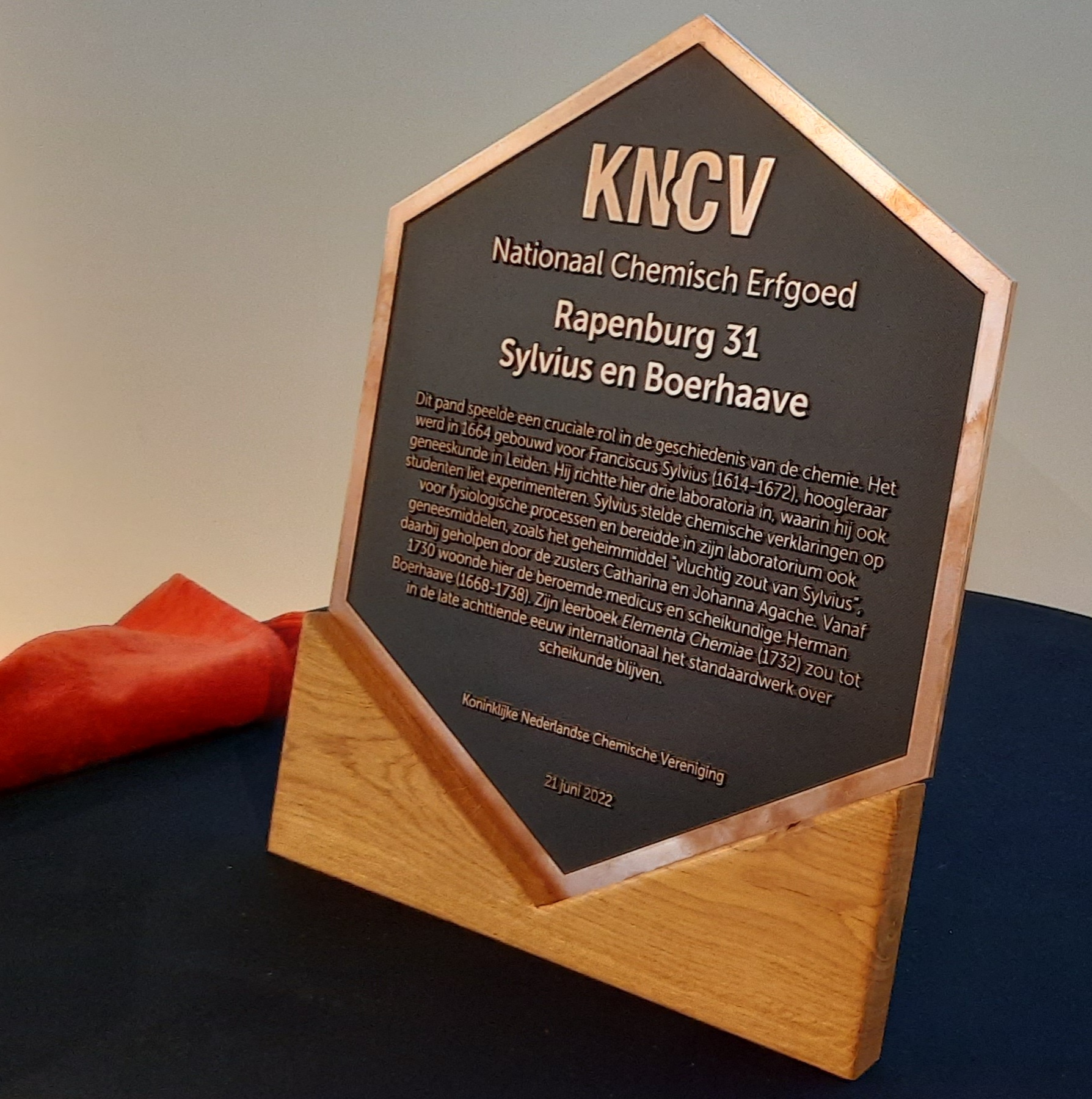 De uitreiking vond plaats tijdens de jaarlijkse ledenvergadering van de Koninklijke Nederlandsche Chemische Vereniging (KNCV). Jaarlijks benoemt de KNCV een nieuwe plek die van belang is geweest voor de ontwikkeling van de scheikunde in Nederland tot Nationaal Chemisch Erfgoed. De uitreiking valt samen met Boerhaave-dag, waartoe European City of Science dinsdag 21 juni heeft uitgeroepen. De voormalige woning van Herman Boerhaave, en ook medicus Franciscus Sylvius die eerder in het huis had gewoond, is zo’n plek met een belangrijke geschiedenis voor de scheikundige wetenschap.