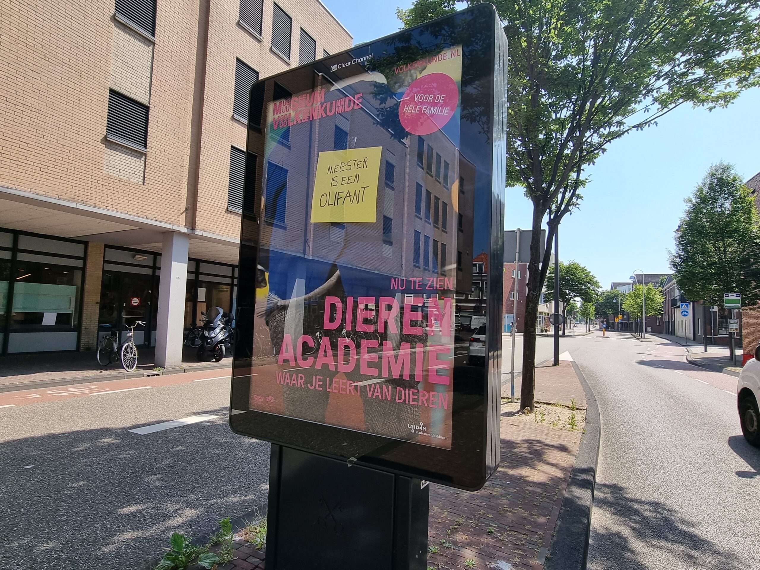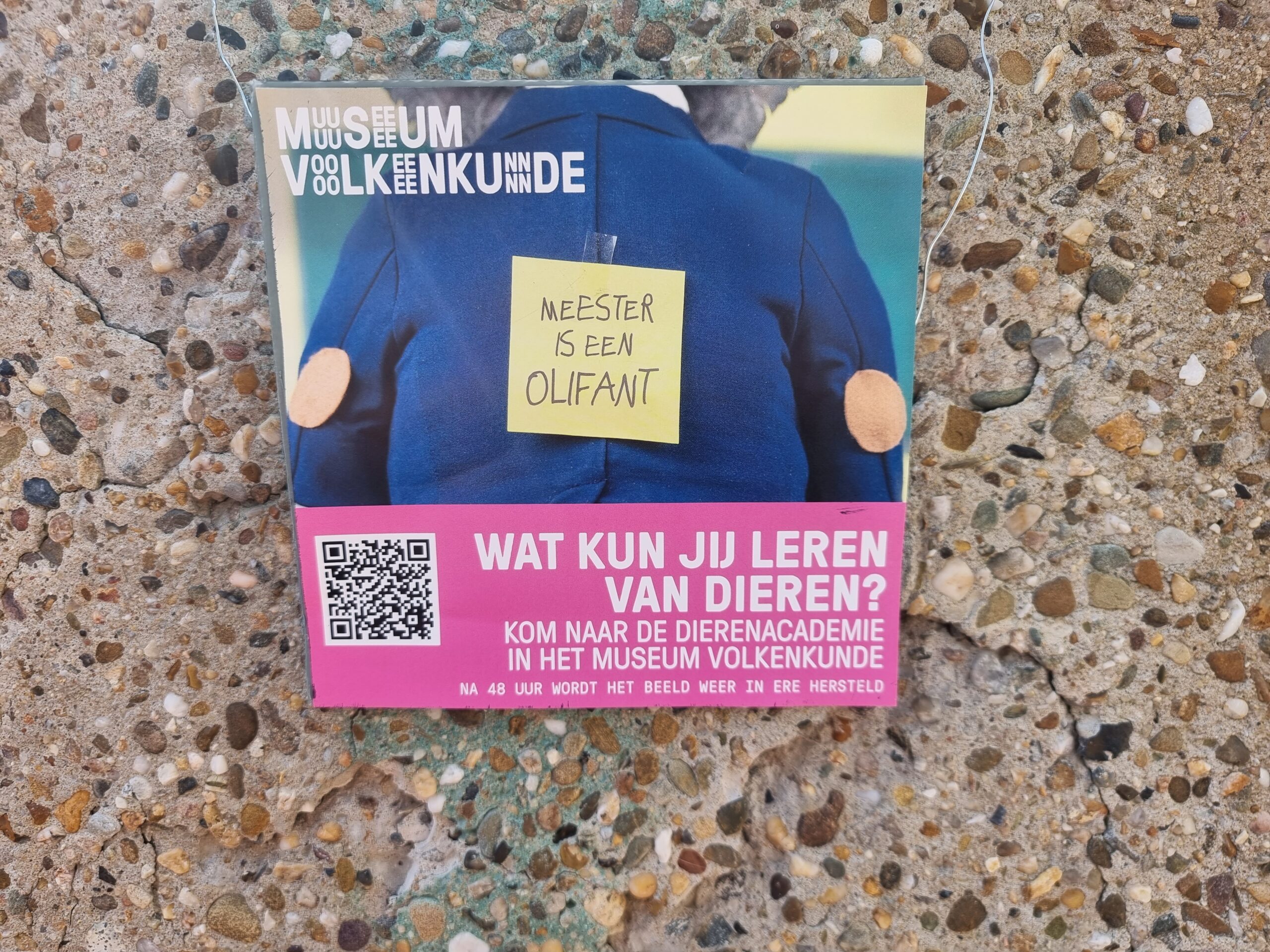 Een uil met een strik, een olifant met een jasje en nog veel meer. In museum Volkenkunde is vanaf zaterdag de DierenAcademie te bezoeken. Om aandacht te vragen voor deze bijzondere tentoonstelling zijn alle dierenbeelden in de Leidse binnenstad woensdag aangekleed. Doel van de tentoonstelling is om mens en dier dichter bij elkaar te brengen.