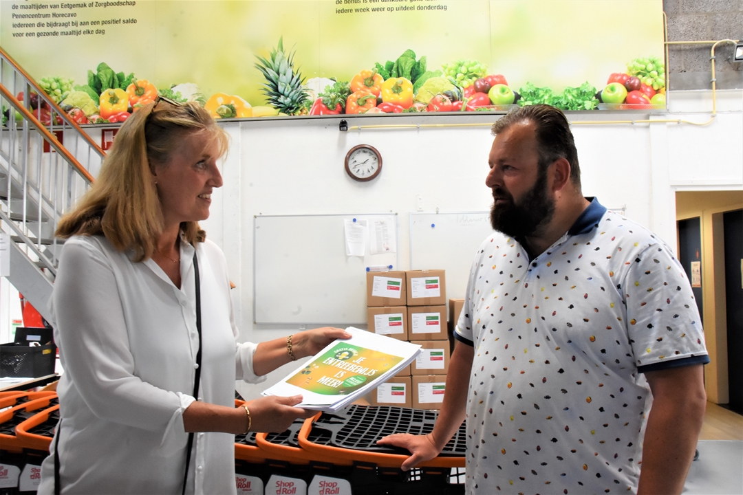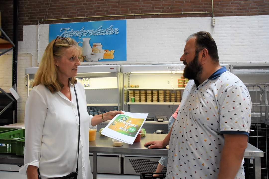 Verslaggeefster Mandana Sotodeh in gesprek met Bob Schrover en Marcella van Motman over Werfpoptickets voor Voedselbank
