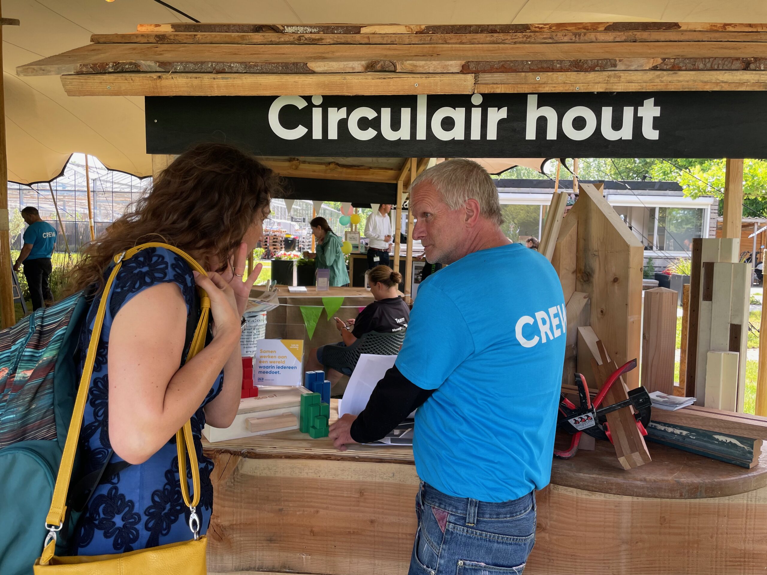 Het Circulair Warenhuis presenteerde zich met een aantal stands met houtbewerking en wat je allemaal kunt doen met plastic afval uit bijvoorbeeld ziekenhuizen. Al het plastic wordt op kleur gesorteerd en vermalen. Vervolgens worden dan weer sommige kleuren samengevoegd en verwerkt tot onderzetters en tegels.