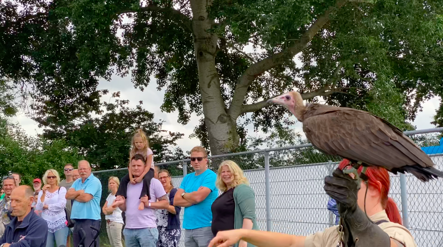 Voorzien van een feestelijke versiering, stonden de bezoekers van het feest even later oog in oog met verschillende roofvogels. De roodsnaveltok, beter bekend als Zazou uit de Disneyfilm De Lion King, stal samen met de neushoornvogel die moeite heeft met vliegen de show.